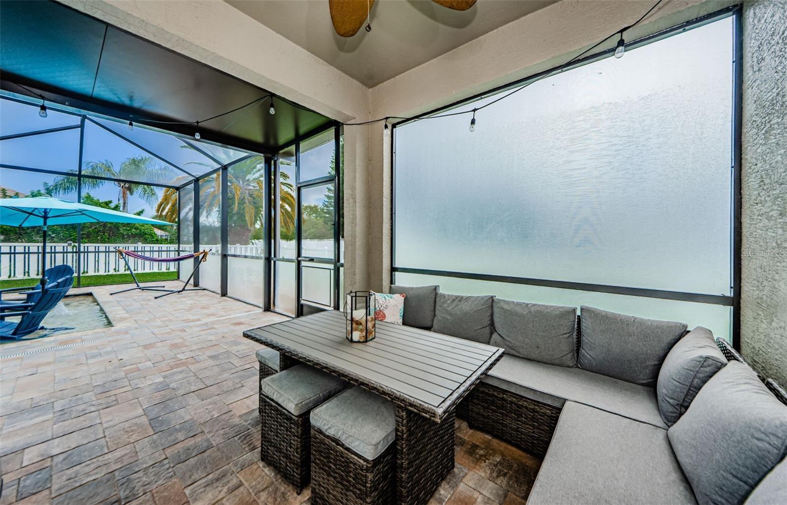 Welcome to this stunning 4-bedroom, 3-bathroom pool home located on a desirable corner lot in the gated community of Fox Wood in Trinity. With nearly 2,200 SF of living space, this spacious, move-in-ready home offers modern style and exceptional functionality throughout. As you enter, you're greeted by a formal living room featuring a custom-built electric fireplace and plantation shutters, creating a warm and inviting space. Just beyond, the open-concept kitchen and dining area are filled with natural light, enhanced by vaulted ceilings and serene views of the sparkling pool. The kitchen features Quartz countertops, tile backsplash, shaker cabinetry, a center island, closet pantry, stainless steel appliances, and a gas range—perfect for cooking and entertaining. The first-floor master suite overlooks the pool and includes a beautiful spa-like en-suite bathroom with a frameless glass shower, separate soaking tub, dual vanity, and modern fixtures. Two additional guest bedrooms are located downstairs, each with custom closet systems and access to a stylish full bathroom. A dedicated laundry room is also conveniently located on the main floor. Upstairs, you'll find a large loft space ideal for a home office, playroom, or guest retreat, along with the fourth bedroom, a third full bath, and an oversized storage closet. Step outside to your private backyard oasis featuring a resort-style pool with paver decking, a pebble tec finish, sun shelf, saltwater system, and remote-controlled lights, pump, and heater. The covered lanai is enclosed with Florida glass screen panels, making it comfortable to see even during rainy weather, and a vinyl picket fence adds both charm and privacy. Additional highlights include: Whole House Water Filtration System (2023), triple-pane hurricane-rated windows (2022), roof (2020), HVAC (2017), and gas water heater (2017). Fox Wood is a popular Trinity neighborhood known for its community park and walkable or golf-cart access to Trinity Elementary School. Convenient location near shopping, restaurants, medical and the Suncoast. Schedule your private tour today and fall in love with everything this home has to offer.