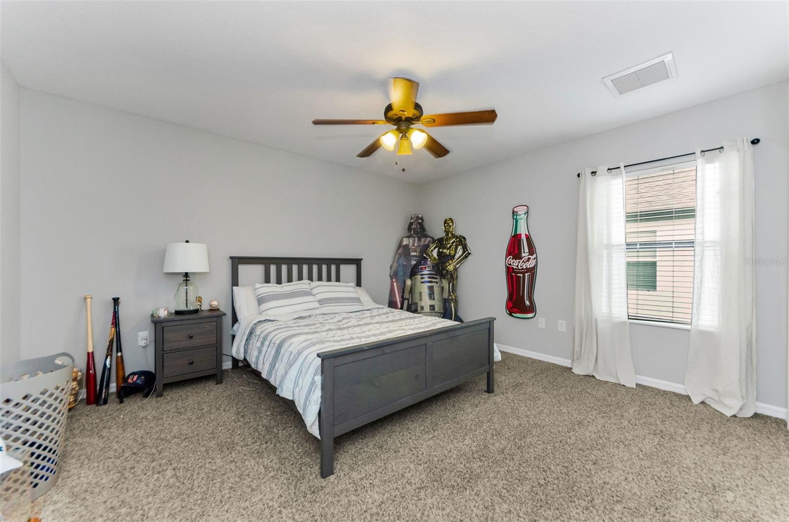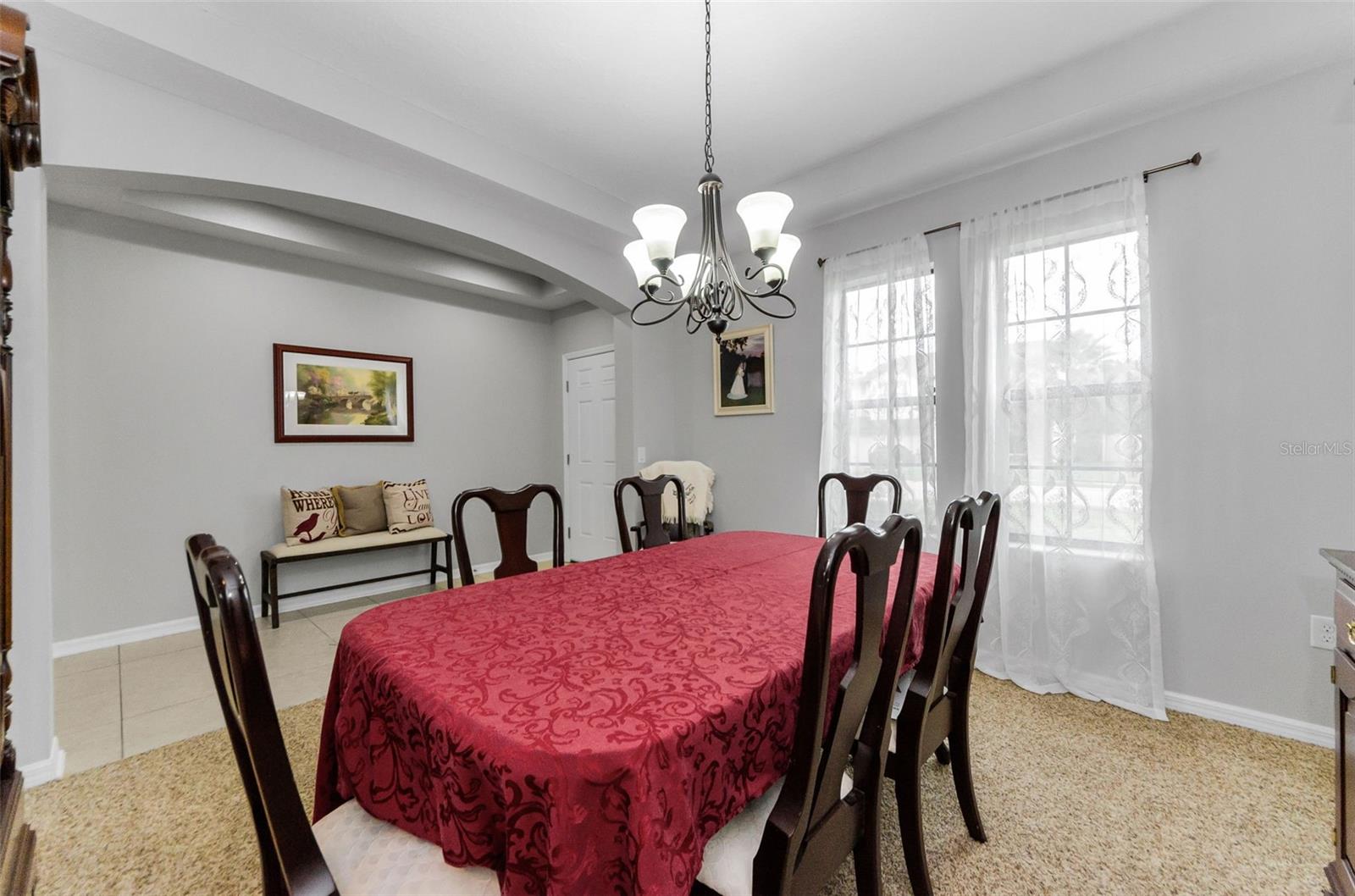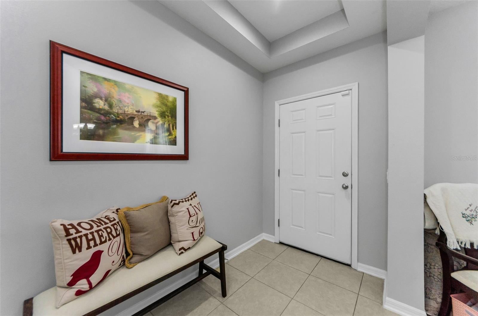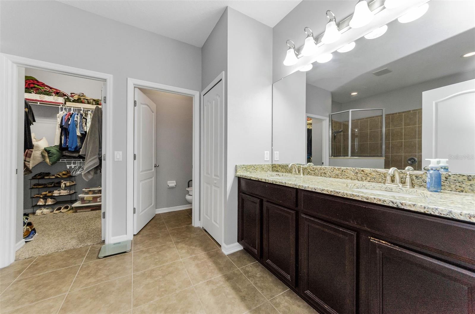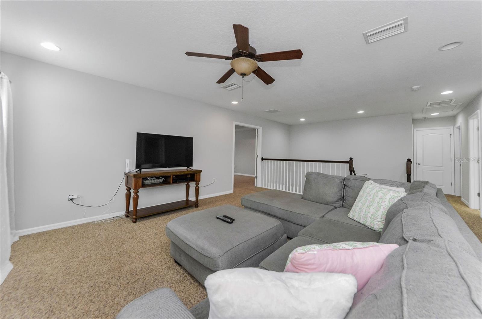 AMAZING PRICE for this expansive 5-bedroom, 2.5-bath home offering over 3,200 sq. ft. of living space in the desirable gated community of Trinity East. This established neighborhood features walking trails, a playground, and peaceful pond views—all within close proximity to top-rated schools, shopping, dining, and medical facilities. The home features a welcoming front porch, stacked stone trim, and a 2-car garage. Inside, you'll find soaring ceilings, arched doorways, and an open-concept layout designed for comfortable everyday living and entertaining. The great room is accented with a custom wood feature wall, and a formal dining room connects to the kitchen through a convenient butler’s pantry. The kitchen is well-appointed with granite countertops, stainless steel appliances, built-in double oven, a breakfast bar, tile backsplash, and a casual dining area with sliding doors that open to the screened lanai. Step outside to your private backyard retreat with a pavered pool area, fenced yard, and tranquil pond views. The spacious primary suite is located on the main floor and features a tray ceiling, walk-in closet, and an ensuite bath complete with granite countertops, dual sinks, a soaking tub, tiled shower, and separate water closet. Upstairs, you’ll find additional generously sized bedrooms, a full bathroom, and a large bonus room perfect for a playroom, media space, or home office. Don’t miss your opportunity to own this stunning home in one of Trinity’s most sought-after gated communities.