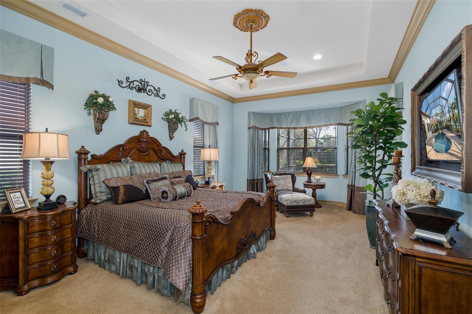 Welcome to an Extraordinary Lifestyle — Floresta at Champions Club. Nestled behind the exclusive gates of Floresta within the prestigious Champions Club golf course community, this impeccably maintained original-owner residence is a rare offering that seamlessly blends refined elegance with effortless everyday living. From the moment you arrive, the attention to detail is unmistakable. Soaring tray ceilings adorned with rich crown molding and intricate wood details set the tone in both the formal living and dining rooms, where elegant window treatments frame every vista with grace. This is a home that was built to impress — and has only grown more distinguished with time. The custom chef’s kitchen is a true culinary sanctuary, appointed with rich wood cabinetry, gleaming countertops, and a show-stopping custom hood. A sun drenched breakfast nook invites you to start your mornings with serene views of the shimmering pool and tranquil pond beyond. The heart of the home - the family room - is warm and inviting, anchored by a gas fireplace, dramatic wood beam ceilings, and atrium doors that blur the line between indoor and outdoor living, opening directly to your private outdoor haven. Retreat to the oversized primary suite, where a generous sitting area and spa-inspired en suite bath await. His-and-her vanities, a luxurious soaking tub, and a custom shower create a daily escape from the ordinary. Two additional oversized first-floor bedrooms share a well-appointed bath, while the media room / home theatre delivers the ultimate cinematic experience without ever leaving home. A dedicated pool bath services both the movie room and the outdoor living area with ease. Rounding out the first floor: a stylish half bath, a fully equipped laundry room, and a practical drop zone. Upstairs, a massive bonus room - or fourth bedroom - offers two walk-in closets and a private en suite bath, providing the perfect retreat for guests, in-laws, or a sophisticated home office. Step outside to the expansive screened lanai - an entertainer’s dream. Three covered spaces invite alfresco dining and lounging, while the summer kitchen and outdoor fireplace make every gathering an event. Enjoy a heated saltwater pool with breathtaking pond views, offering year-round resort-style relaxation in complete privacy. 4 Bedrooms | 4.5 Bathrooms | Home Theatre | Heated Saltwater Pool | Summer Kitchen | Golf Course Community. This is not simply a home — it is a lifestyle. Champions Club is a private gated community featuring a private clubhouse, Resort-style pool & spa, Fitness Center, Tennis, Pickle ball, Basketball & many planned activities for all ages throughout the year. Zoned for A+ rated schools, Trinity Elementary, Seven Springs Middle & J.W. Mitchell High. Conveniently located close to many shops, restaurants, medical facilities, SunCoast Pkwy & short drive to many local beaches, Tampa International Airport & St. Pete/Clearwater Airport! One of Tampa Bay's Premier Communities with so much to offer its residents!