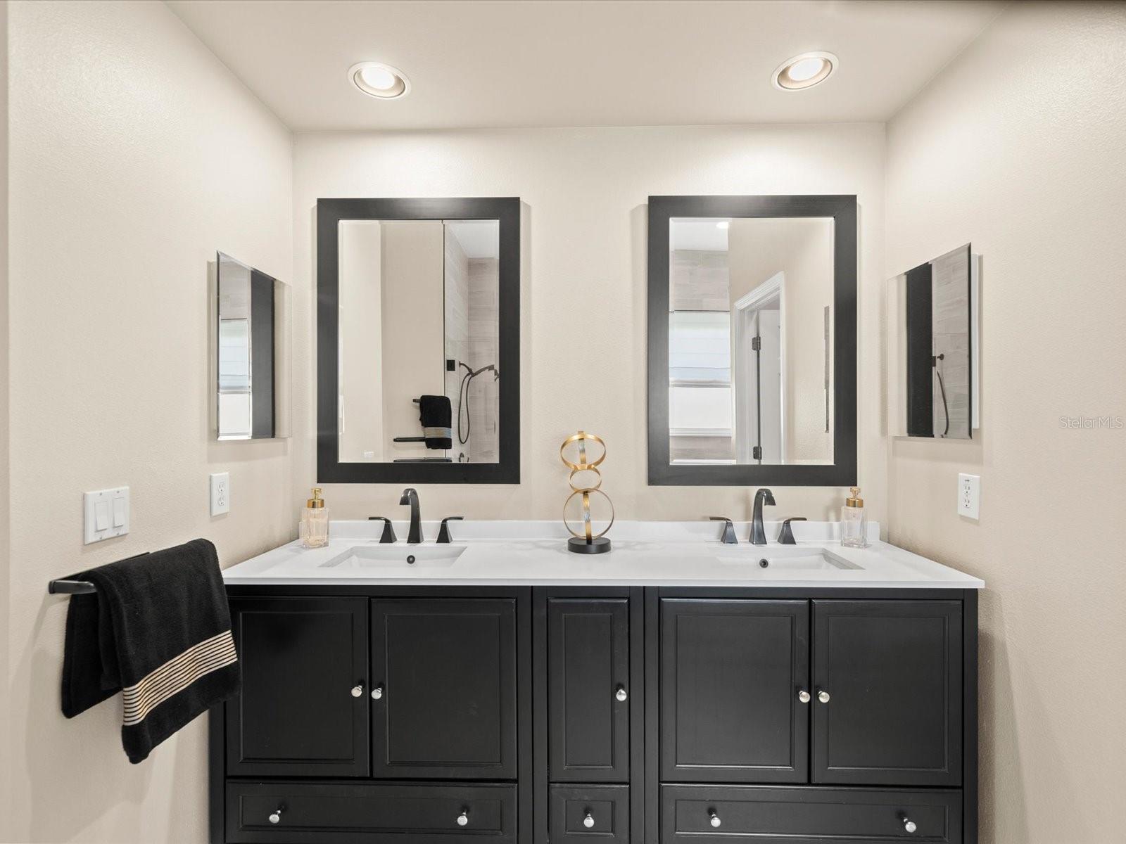 One or more photo(s) has been virtually staged. Welcome home to this beautifully maintained 4 bedroom, 3 bathroom pool home tucked away on a quiet cul-de-sac in one of Trinity’s most established and sought-after neighborhoods. Situated on nearly 1/3 of an acre, this property offers space, privacy, and a layout that truly works for everyday living and entertaining. From the moment you walk through the double door entry, you’ll appreciate the thoughtful design of this 3-way split bedroom floor plan. A flexible bonus room sits just off the foyer—perfect for a home office, playroom, or second living space—while the formal dining room across the way features rich engineered hardwood floors for a warm, inviting feel. The heart of the home is the open-concept kitchen, family room, and casual dining area—all overlooking the screened-in pool and lanai. The kitchen is both stylish and functional with espresso soft close shaker cabinets, a contrasting white shaker island, quartz countertops that extend seamlessly into a full backsplash, and a large walk-in pantry with custom built shelves. Whether you're hosting or just enjoying a quiet night in, this space delivers. The spacious owner’s suite is a true retreat with two closets, a resort-style en suite bath, and direct access to the covered and screened pool area—perfect for morning coffee or evening unwinding. Throughout the home, you’ll find large ceramic tile in all main living and wet areas (recently professionally cleaned), and brand new matching carpet in all four bedrooms. Bedroom 2 features a walk-in closet, bedroom 3 offers a step-in closet, and bedroom 4 is privately tucked behind the kitchen near the third full bath—ideal for guests or multi-generational living. The second bathroom also provides convenient access to the pool. Step outside and enjoy your private outdoor oasis with a covered and screened lanai, plus an additional concrete patio for extended entertaining space. The screened enclosure was recently refurbished like new. The backyard is partially fenced (3 sides) and surrounded by lush landscaping, including mature palms and greenery that provide both beauty and privacy. Additional highlights include an immaculate 3-car garage, gas stove and water heater (with gas hookup available for the dryer), and a stunning wood-burning fireplace with custom built-ins serving as the centerpiece of the living room. Current owner increased their energy efficiency by adding R38 insulation in the attic. Located in a top-rated school zone and just minutes from shopping, dining, and everything Trinity has to offer, this home truly checks all the boxes.