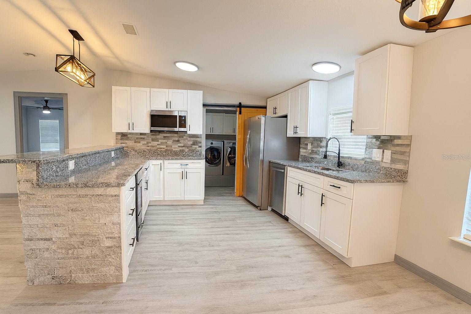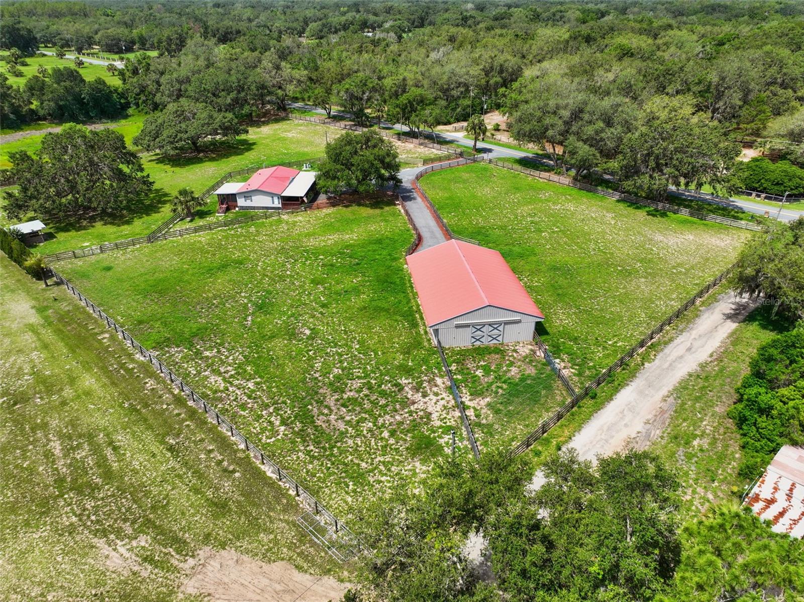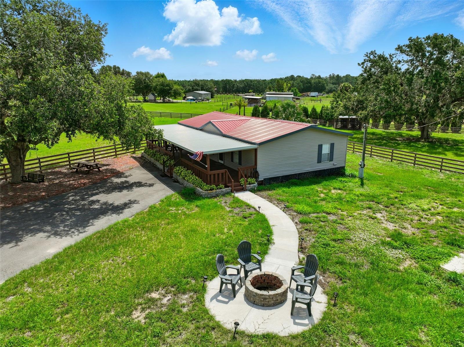 One or more photo(s) has been virtually staged. $25,000 PRICE REDUCTION!!! Welcome to your private equestrian retreat in highly desirable Umatilla. This beautifully remodeled 3 bedroom 2 bath home sits on nearly 5 fenced acres and boasts top of the line upgrades throughout. Inside you’ll find luxury vinyl plank flooring, granite countertops, all natural pine doors, brand new appliances, Moen fixtures, and walk in closets in every bedroom. The open split floorplan offers a bright and functional layout, complete with a cozy front porch and large screened in back porch ready to become your Florida room for added living space. Equestrians and families will love the space. There’s room for growing families, guests, and horses. The 12 stall barn was originally built for mini ponies, but with simple and cost effective modifications to the windows and stalls, it can be converted into a 6 stall barn for full sized horses. It features aluminum doors, water in every stall, electricity, fans, an integrated fly spray system, a concrete center aisle wide enough for vehicles, a wash station, and a resurfaced roof. The land is cross fenced into 4 separate pastures, each with water access, and two pastures include additional structures for livestock shelter. A newly paved patterned driveway leads from the electric gate with keypad all the way to the home and barn, offering both security and style. Located just 15 minutes from Publix and town, this property offers peaceful private country living without being isolated. Whether you're dreaming of a horse farm, hobby homestead, or simply a little extra elbow room, this one of a kind property delivers luxury, functionality, and endless potential.