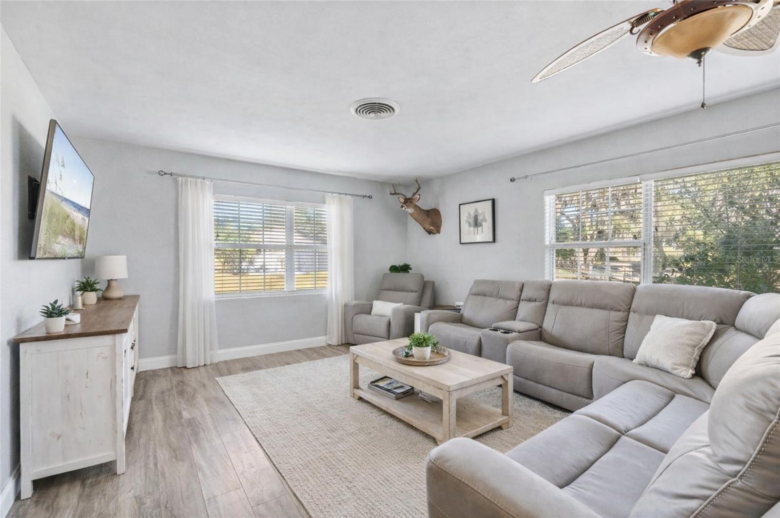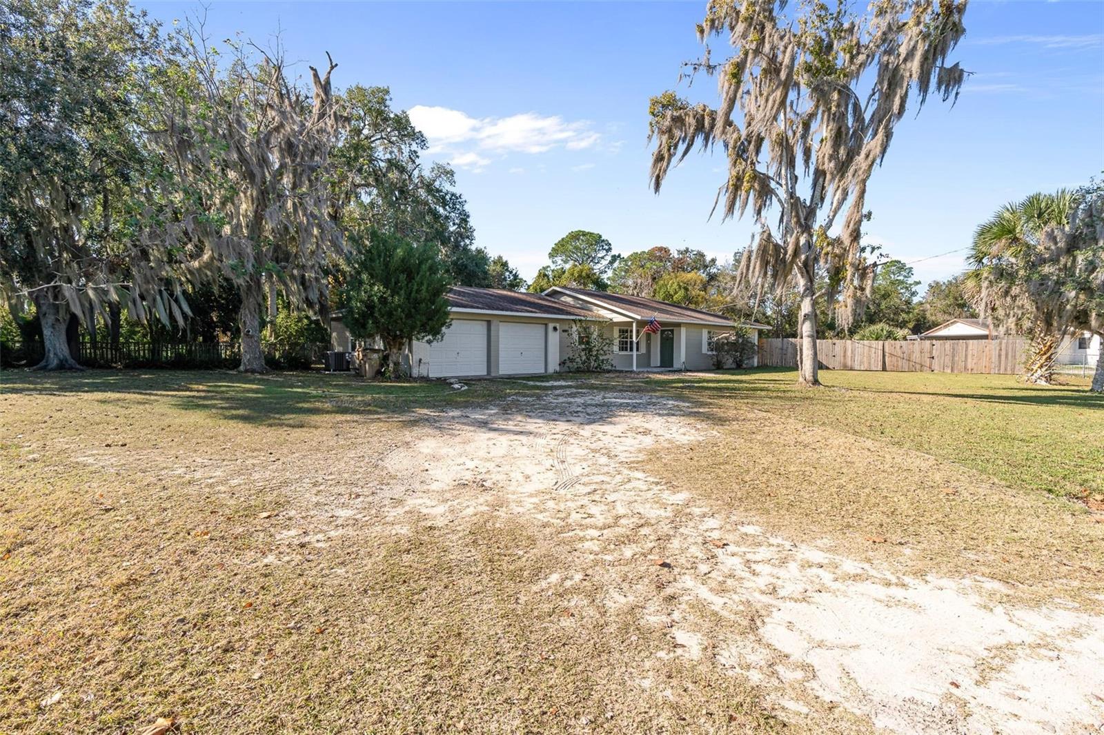 LAKE ACCESS! This beautifully updated 3-bedroom, 2-bath block home sits on 1.26 acres in highly desirable Umatilla. The property offers the perfect blend of privacy and convenience, located close to town, grocery stores, shopping, and restaurants while still providing a peaceful, country feel. The home features an open and inviting layout with updated interior finishes throughout. The exterior boasts a fully fenced and cleared yard, ideal for pets, gardening, or outdoor entertaining. Additional highlights include an oversized 2-car garage, RV hook-up, brand-new septic tank, and a roof less than 10 years old, AC 2024. Enjoy serene views of a private lake just down the road, where residents can fish and take in the scenery. With solid block construction, no HOA, and plenty of room to expand, this home offers lasting comfort and opportunity.
