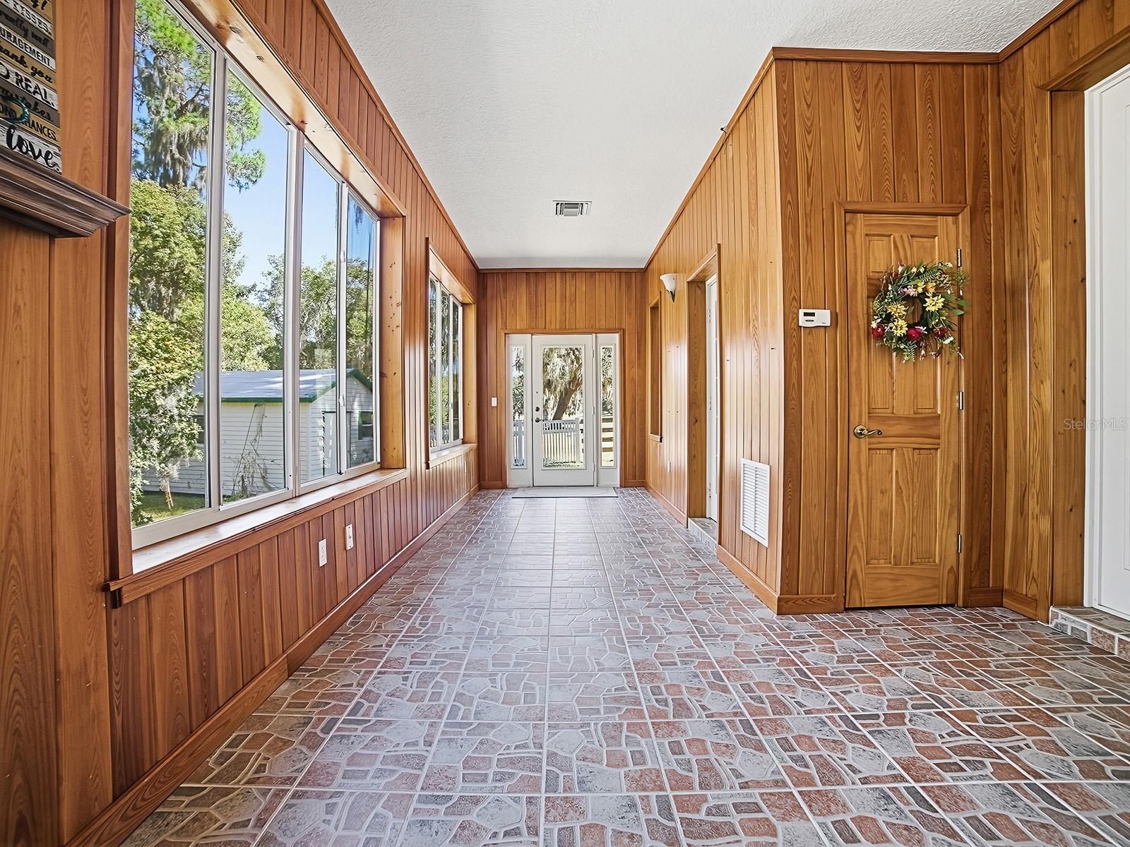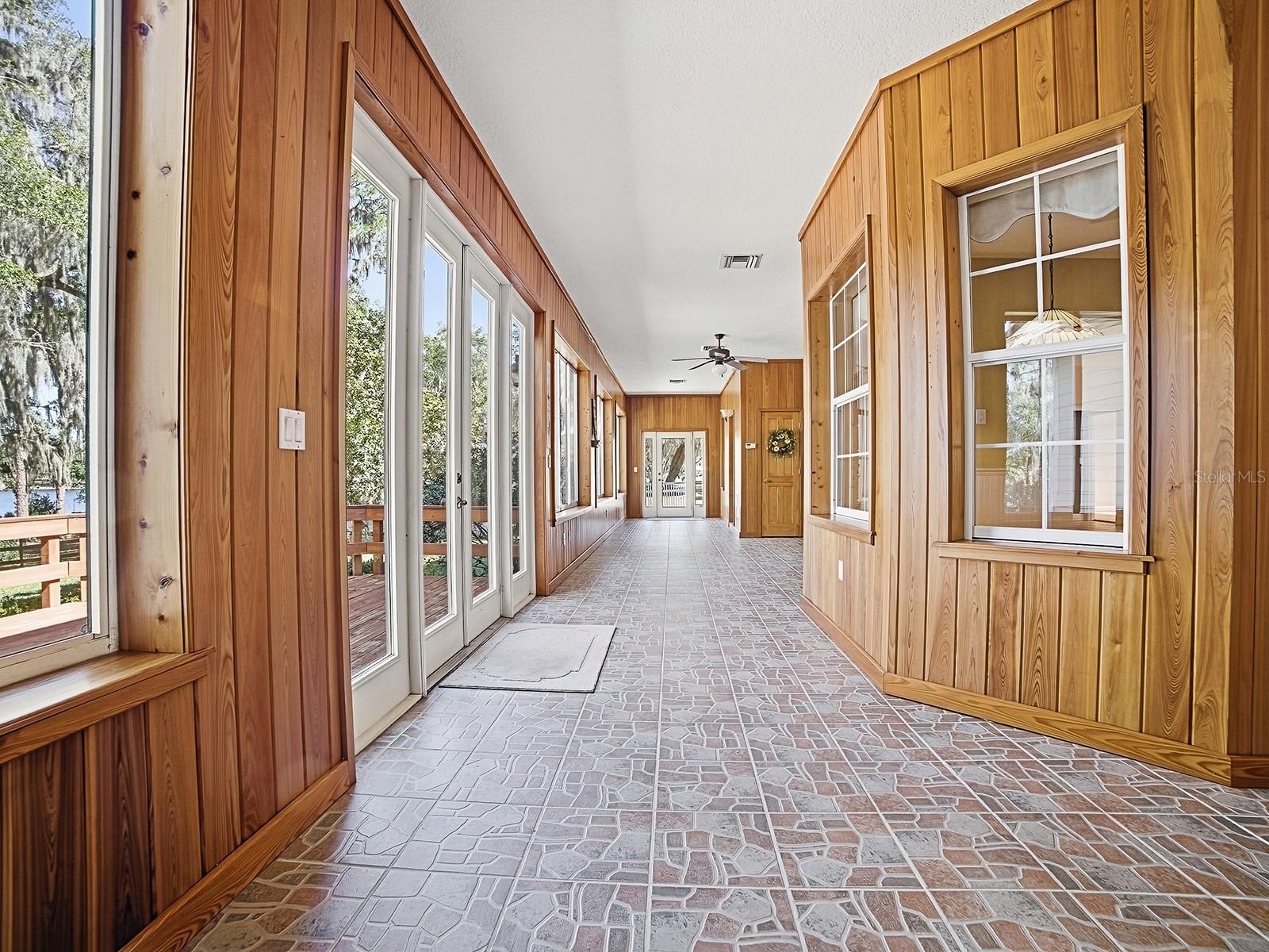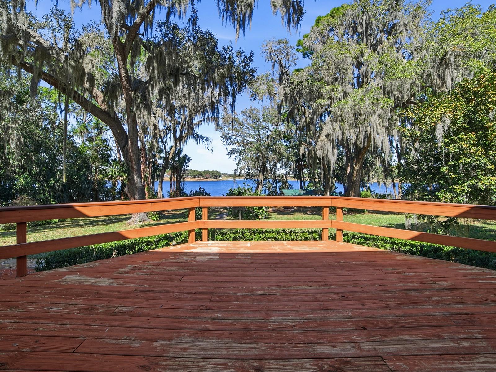 This custom lakefront residence, built in 1997 by Jett Riley, features a New Roof and offers 2,645 square feet of air-conditioned living space and just over 4,000 sq. ft. under roof. The country-style block home is finished with Hardie Board siding and features a split bedroom plan with 3 bedrooms, 2.5 bathrooms, a bonus room, indoor laundry room and an oversized two-car side-entry garage. Thoughtfully set back from the road, the home is positioned to maximize panoramic lakefront views. An enclosed, air-conditioned sunroom spans the rear of the home, providing exceptional views of the lake year-round. The country kitchen is appointed with granite countertops, solid wood cabinets, a convection oven, breakfast bar, built-in desk, dinette area, and closet pantry. All stainless steel kitchen appliances convey. The open floor plan is ideal for entertaining, with a wood-burning brick fireplace serving as the focal point of the family room. The formal dining room showcases a tray ceiling, crown molding, and tasteful wallpaper. Main living areas feature solid wood flooring, with ceramic tile in the foyer, kitchen, bathrooms, and laundry room; bedrooms are carpeted. The second-floor bonus room is perfect for guests or a home office and includes built-in desks. Additional designer details include built-ins, 5-inch baseboards, plant shelves, and architectural niches throughout. Located within the city limits of Umatilla, the property is on city water and septic and there is NO HOA. Lake Crescent is a spring-fed lake, ideal for fishing, swimming, and non-motorized boating, all accessible from the private dock. Situated on 1.5 acres, the property is enhanced by lush, mature landscaping with numerous fruit and flowering trees. Schedule your private showing today to experience this exceptional lakefront home.