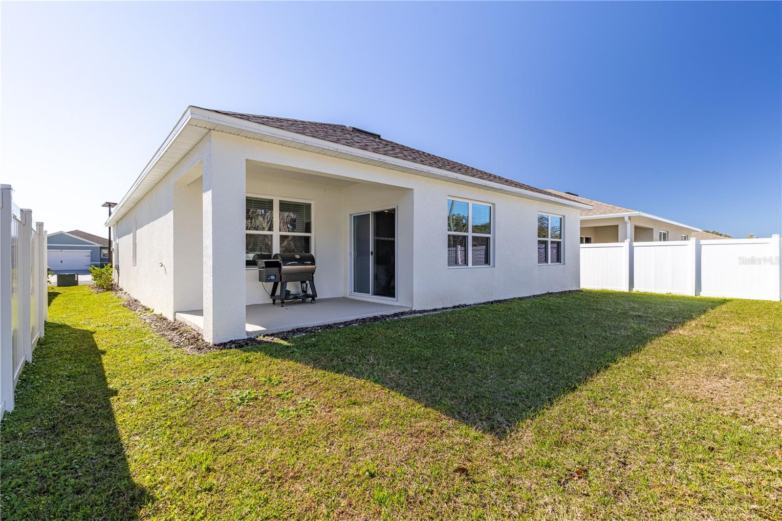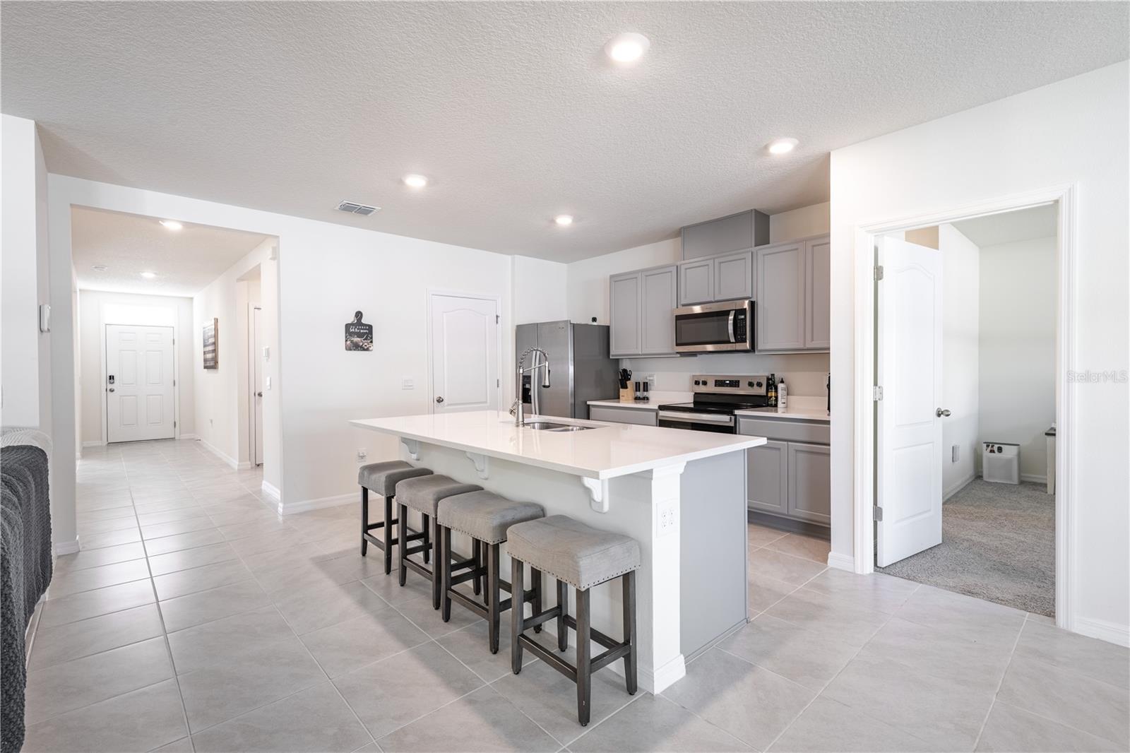 Welcome home to this beautifully 2024 maintained 3-bedroom, 2-bath residence in Umatilla, offering a functional open-concept layout and modern finishes throughout. The spacious great room flows seamlessly into the kitchen and dining area, creating an ideal space for both everyday living and entertaining.The kitchen features quartz countertops, ample cabinetry, and a large island for added prep space and casual seating. The primary suite is thoughtfully designed, complete with a walk-in closet and private en-suite bath. Two additional bedrooms provide flexibility for family, guests, or a home office.Enjoy indoor-outdoor living with a covered lanai, perfect for relaxing evenings or morning coffee. Additional highlights include ceramic tile in main living areas, carpeted bedrooms, a 2-car garage, and energy-efficient construction. Utilities are public, and the community offers desirable amenities including a sparkling pool, dog park and playground, creating a welcoming environment and maintained by the HOA and with a LOW monthly HOA.Seller also has a glass shower enclosure for master bathroom shower, brand new in the box ready for the new homeowner to install and enjoy!!Brand new washer and dryer included.Conveniently located near SR-19, this home provides easy access to local shopping, dining, schools, and outdoor recreation while maintaining a peaceful neighborhood setting. Move-in ready and thoughtfully designed, this is a wonderful opportunity to own a modern home in growing Umatilla.