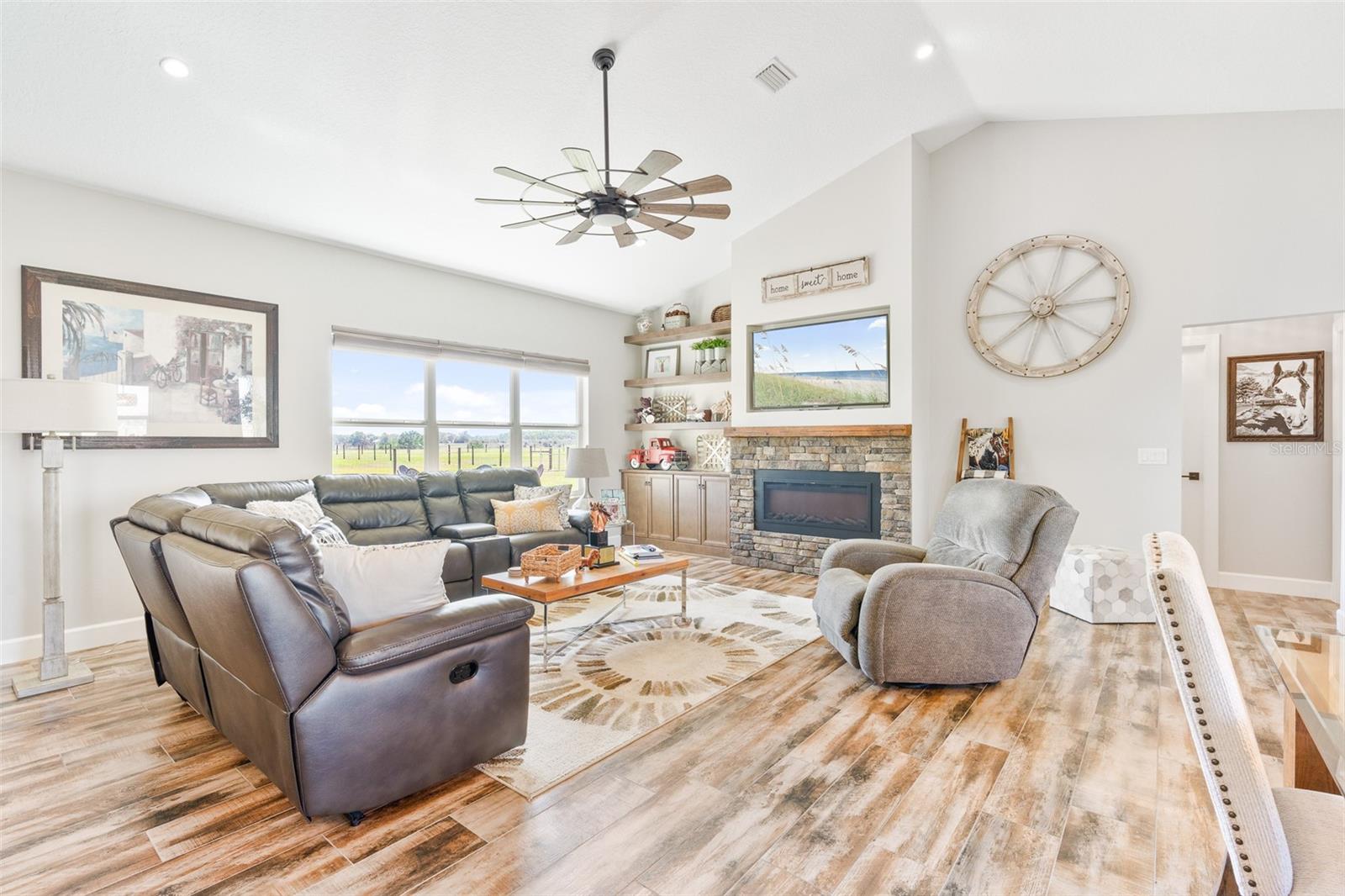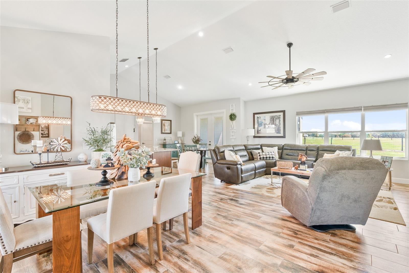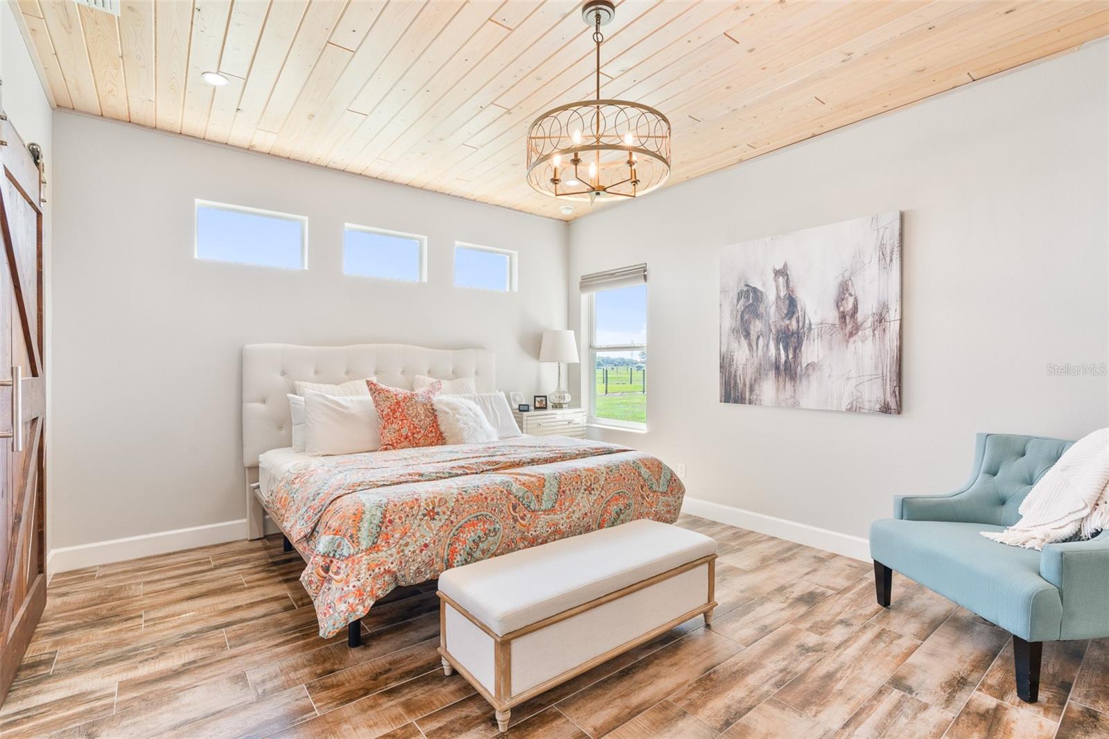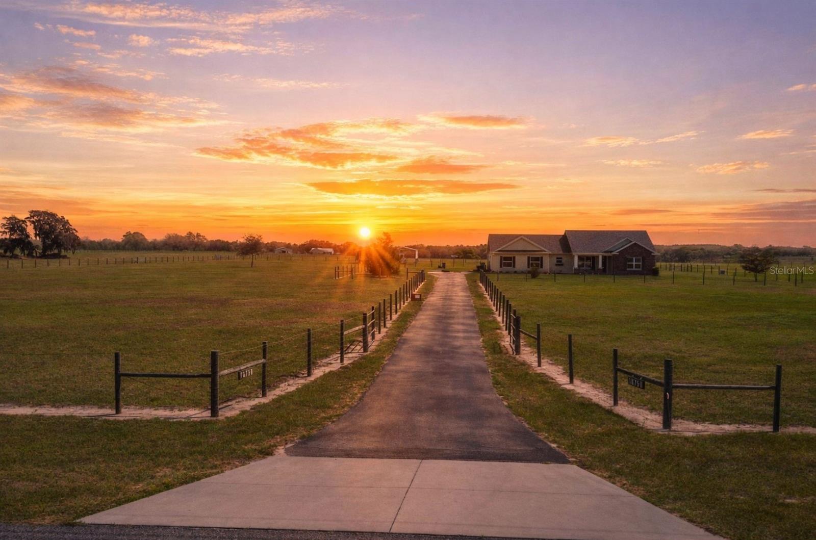 Opportunities like this are becoming increasingly rare in Lake County. Set on nearly 9 acres of cleared, usable land, this 2018-built block home offers the perfect blend of modern construction, equestrian functionality, and peaceful country living. From the moment you arrive, the property opens up to wide pastures, two farm-fenced paddocks, and unobstructed rural views that stretch toward Lake Cooley and Island Lake. Whether you're a horse enthusiast, hobby farmer, or simply someone who values privacy and space, this property was designed for a lifestyle many people search for but rarely find. The acreage is surrounded by hotwire fencing to help protect livestock, providing both functionality and peace of mind for animal owners. Inside, the home features 14-foot ceilings and an open-concept layout that creates an immediate sense of space and natural light. The split bedroom floor plan provides privacy, while the oversized primary suite offers a true retreat with a massive walk-in closet and seamless walk-in shower. Built for both comfort and efficiency, the home includes exterior wall insulation that helps keep the home energy efficient, with electric bills typically under $180 even during the summer months, along with the added peace of mind of a brand new 2024 roof. The property is also served by a deep well providing clean, natural water, a valuable feature for rural living. Outside, the land is already prepared for animals and outdoor living. The property includes two fenced paddocks and a two-stall barn complete with a large tack room and washing station. Two covered carports provide plenty of room for trailers, equipment, or recreational vehicles. Relax on the screened porch overlooking nothing but open pasture and peaceful water views, where the pace of life slows down and the surroundings speak for themselves. Adding even more flexibility, the property allows for an additional dwelling unit, making it ideal for creating a family compound, guest home, or private in-law suite while still maintaining the space and privacy the land provides. Despite the quiet country setting, the property remains conveniently located approximately 20 minutes from Mount Dora, about an hour from Orlando, and roughly an hour from Ocala, providing easy access to dining, shopping, entertainment, and world-class equestrian venues. Properties offering newer construction, nearly 9 acres of usable land, equestrian infrastructure, and lake views are incredibly hard to find. This is more than a home. It's a lifestyle.