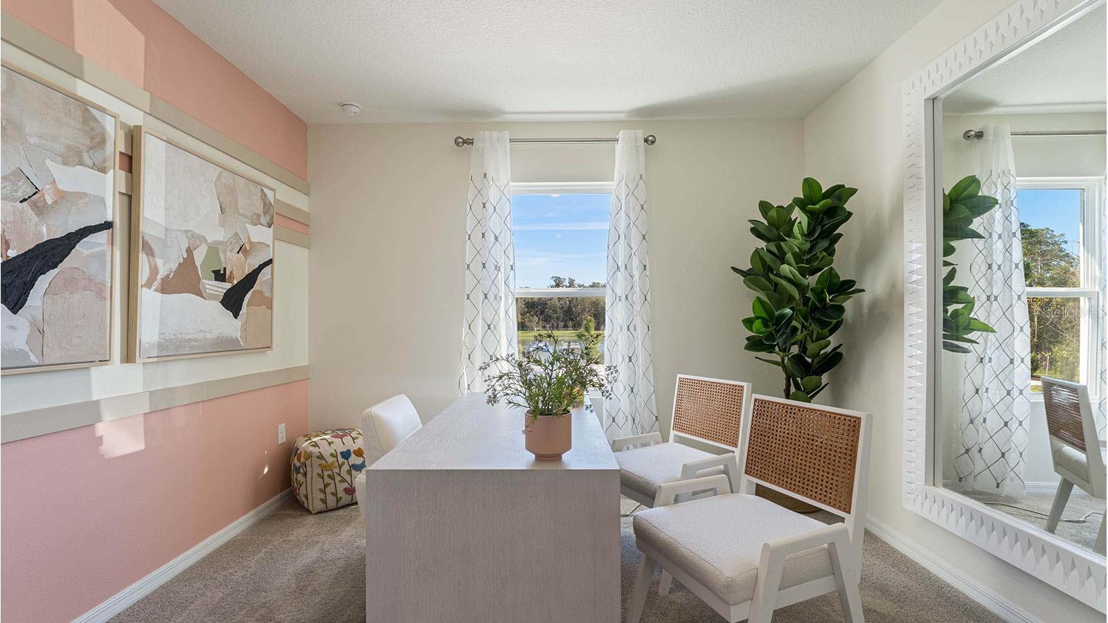 Under Construction. Introducing the Cali floorplan at Magnolia Pointe, in Umatilla, Florida, where every square foot is put to use with sophistication and comfort. Inside this 4-bedroom, 2-bathroom home, you’ll find 1,882 square feet of comfortable living. This meticulously designed residence combines modern convenience with timeless elegance, showcasing quartz counters, luxury vinyl in the main areas and primary bedroom. The rest of the bedrooms are carpeted. As you step inside, you are greeted by an inviting foyer that leads you into the heart of the home. The open-concept layout seamlessly connects the living room, dining area, and kitchen, creating a perfect space for entertaining family and friends. The spacious living room features abundant natural light, thanks to large windows that provide picturesque views of the surrounding landscape. With ample room for seating, it's an ideal spot for relaxation and gatherings. The kitchen is a true highlight, including quartz countertops, sleek stainless-steel appliances, a walk-in pantry and an oversized island with a breakfast bar. Whether you're preparing a casual meal or hosting a formal dinner, this kitchen is well-equipped to meet your culinary needs. The four generously sized bedrooms are flexible for various lifestyles. The primary suite located in the rea of the home is a tranquil retreat, featuring a private ensuite bathroom with dual sinks, a separate shower, and a walk-in closet. The remaining three bedrooms share one well-appointed bathroom, making morning routines a breeze. Laundry won't be a chore with its dedicated space convenient to all bedrooms. Like all homes in Magnolia Pointe, the Cali includes smart home technology, which allows you to control your home anytime with your smart device while near or away. Whether you're seeking a peaceful family retreat or a stylish place to call your own, this home is sure to meet your every need. Contact us today and find your home at Magnolia Pointe. *Photos are of similar model but not that of the exact house. Pictures, photographs, colors, features, and sizes are for illustration purposes only and will vary from the homes as built. Home and community information including pricing, included features, terms, availability, and amenities are subject to change and prior sale at any time without notice or obligation. Please note that no representations or warranties are made regarding school districts or school assignments; you should conduct your own investigation regarding current and future schools and school boundaries.*