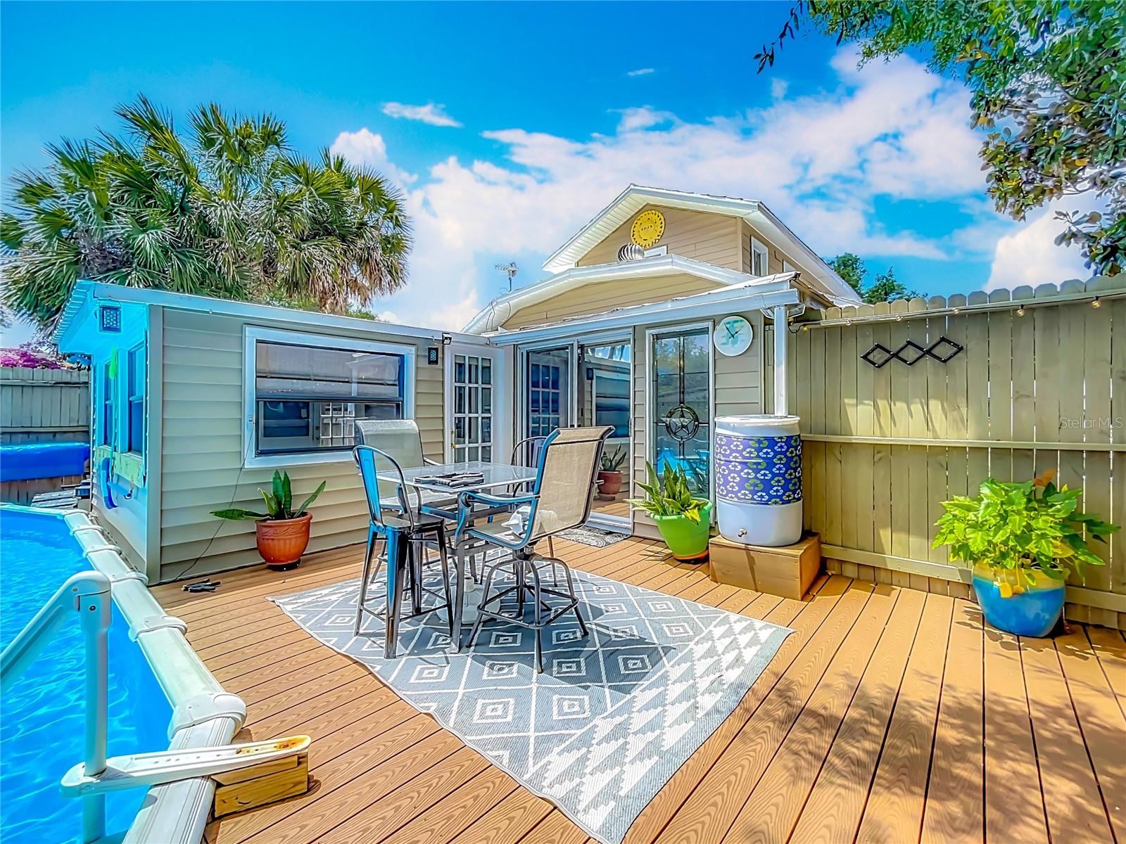 Multiple offers! Highest and best due by Sunday May 18 2025!!! Charming Bungalow with a Modern Outdoor Oasis with a private pool! Property appraised well above asking price and passed a 4-point inspection. Step into timeless elegance with this beautifully preserved 2-bedroom, 2.5-bath bungalow that blends vintage charm with modern comforts. Original hardwood floors flow through the sunlit living and dining rooms, where you'll find a cozy wood-burning fireplace, custom built-ins, and a lovely floor plan for entertaining and a place to call home. The updated kitchen is a dream, abundant cabinetry, granite countertops, and stainless steel appliances all opening through leaded glass sliders to an entertainer's paradise. nearly 1,000 sq ft of wraparound decking, complete with a hot tub, heated pool, fire pit, multiple dining areas, and even a putting green or play space. It's your own private retreat perfect for hosting or unwinding. A versatile bonus room with A/C is ready for your home office, studio, or guest suite. Enjoy year-round comfort with central HVAC and zoned units for personalized climate control. This is more than a home it’s a lifestyle. Private, stylish, and full of character. Schedule your showing today and experience the perfect blend of history and luxury!
