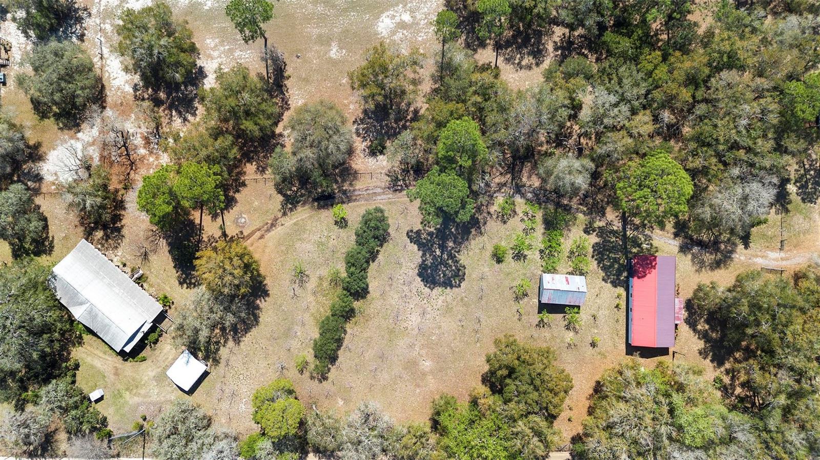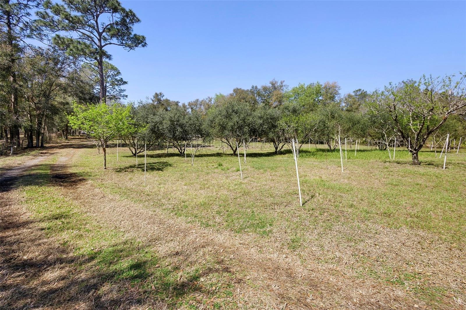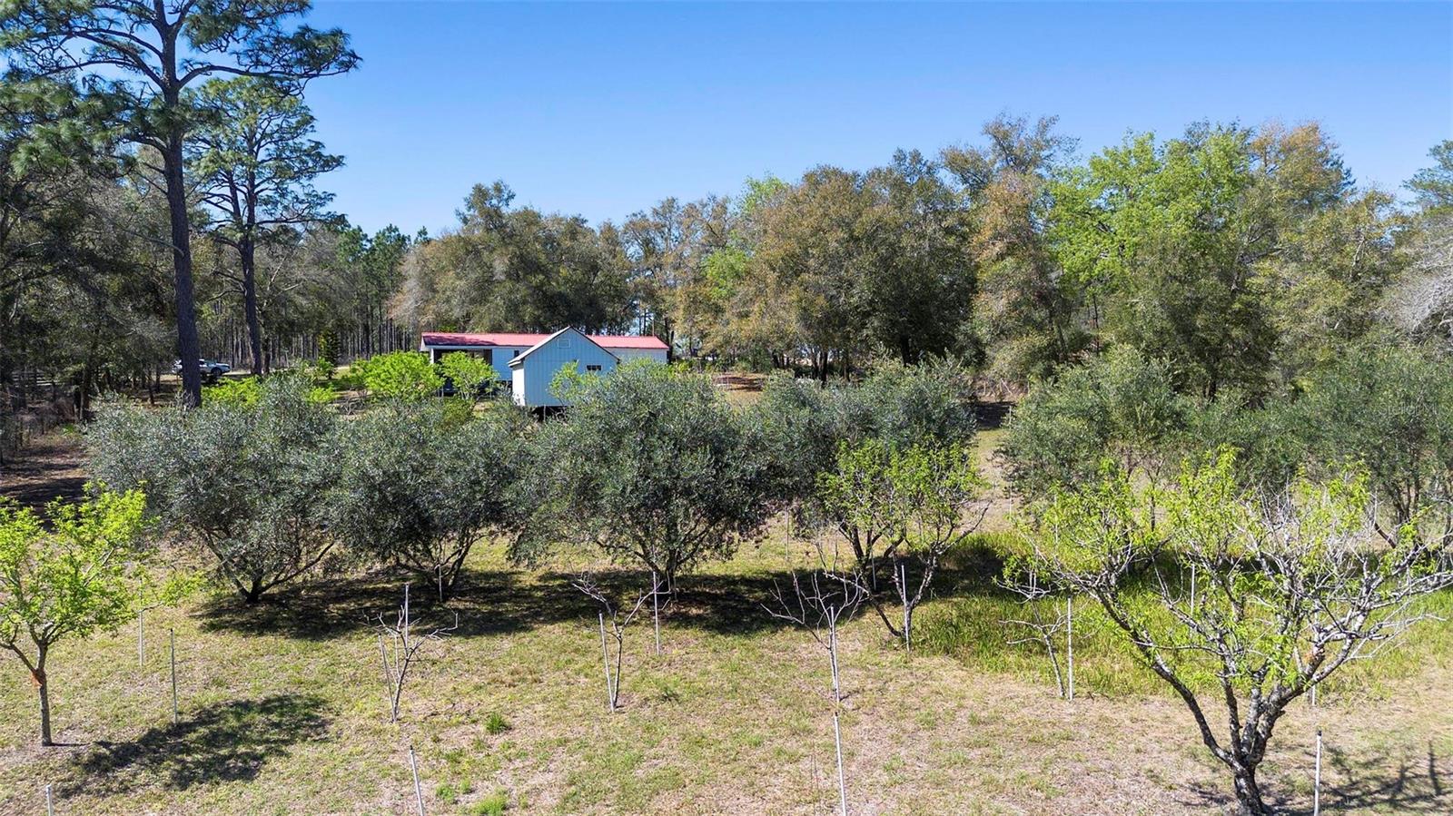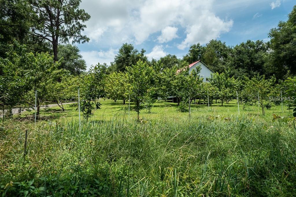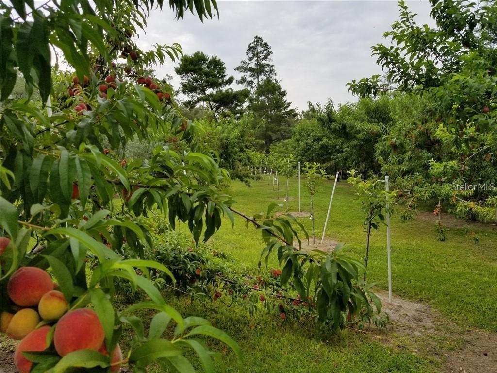 This beautiful 3-acre fully fenced oasis includes 2 homes, a 3-stall barn for horses, a huge storage building, a massive peach orchard, an abundance of blueberry bushes, persimmons, plums, citrus, olives and many other varieties of fruits, vegetables and herbs and is adorned by beautiful flowering Camelias and Azaleas. If you don't possess a "green thumb", bring your horses and utilize the thousands of acres of public trails in the Ocala National Forest that border this estate. This fully irrigated oasis is completely fenced and includes an assortment of fruit trees. A storage barn and 3-stall barn and tack room with water and electricity make the perfect centerpieces for this oasis. Numerous vegetable gardens that are watered by deep-water wells are in place. The 3/2 home at front of property is perfect for a family member, or income-producing rental if permitted by local municipalities. The private 4/2 home at the back of the property includes a metal roof and full-length wrap-around covered deck that is perfect for sipping iced tea while watching the hummingbirds. This property has over 70 persimmons trees, a row of grape vines, goji berries, sanchi vines, passions fruit and more. Seller may consider owner financing. All measurements and counts are approximate and should be independently verified. Buyer should verify zoning usage with local municipalities.