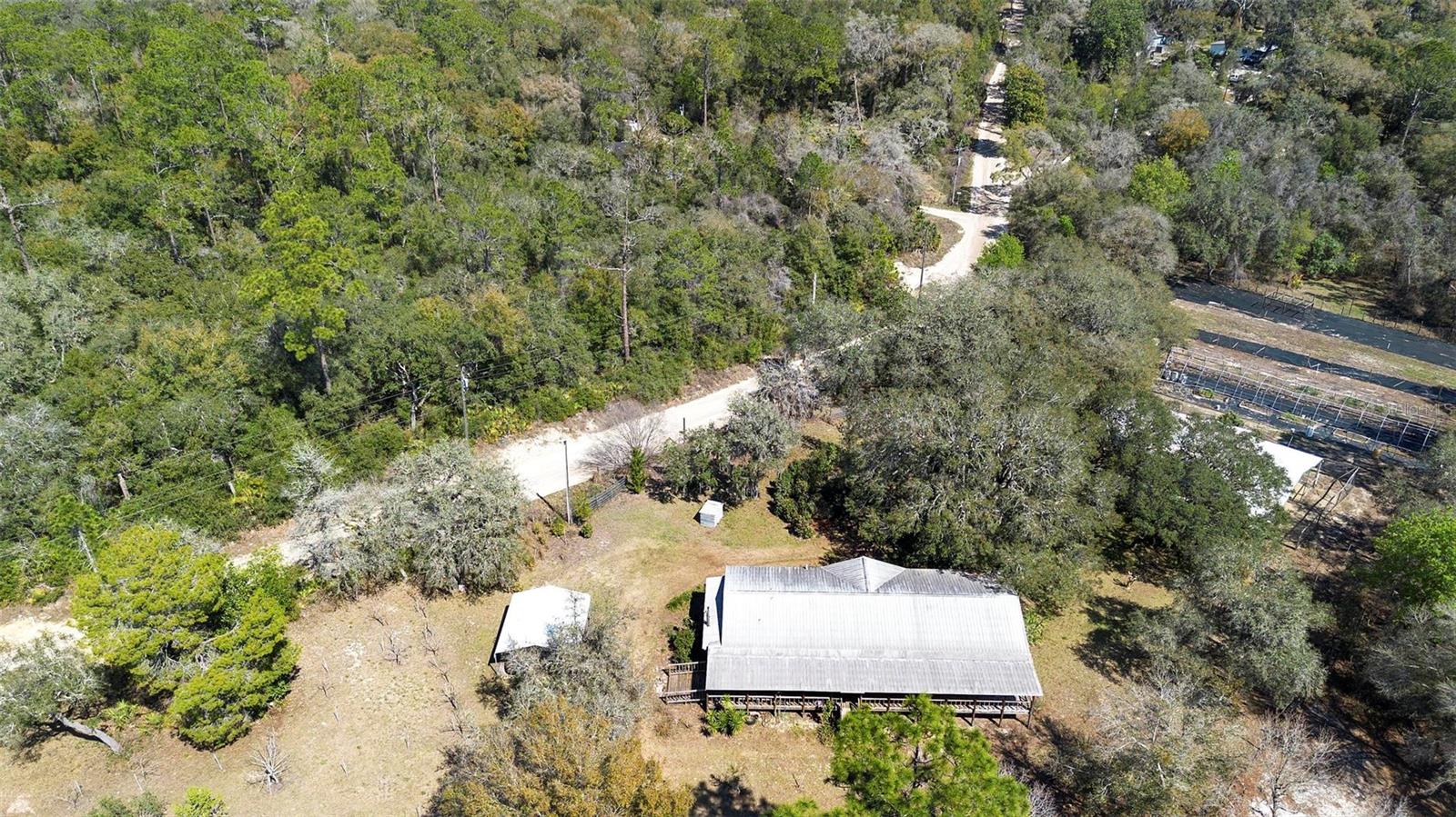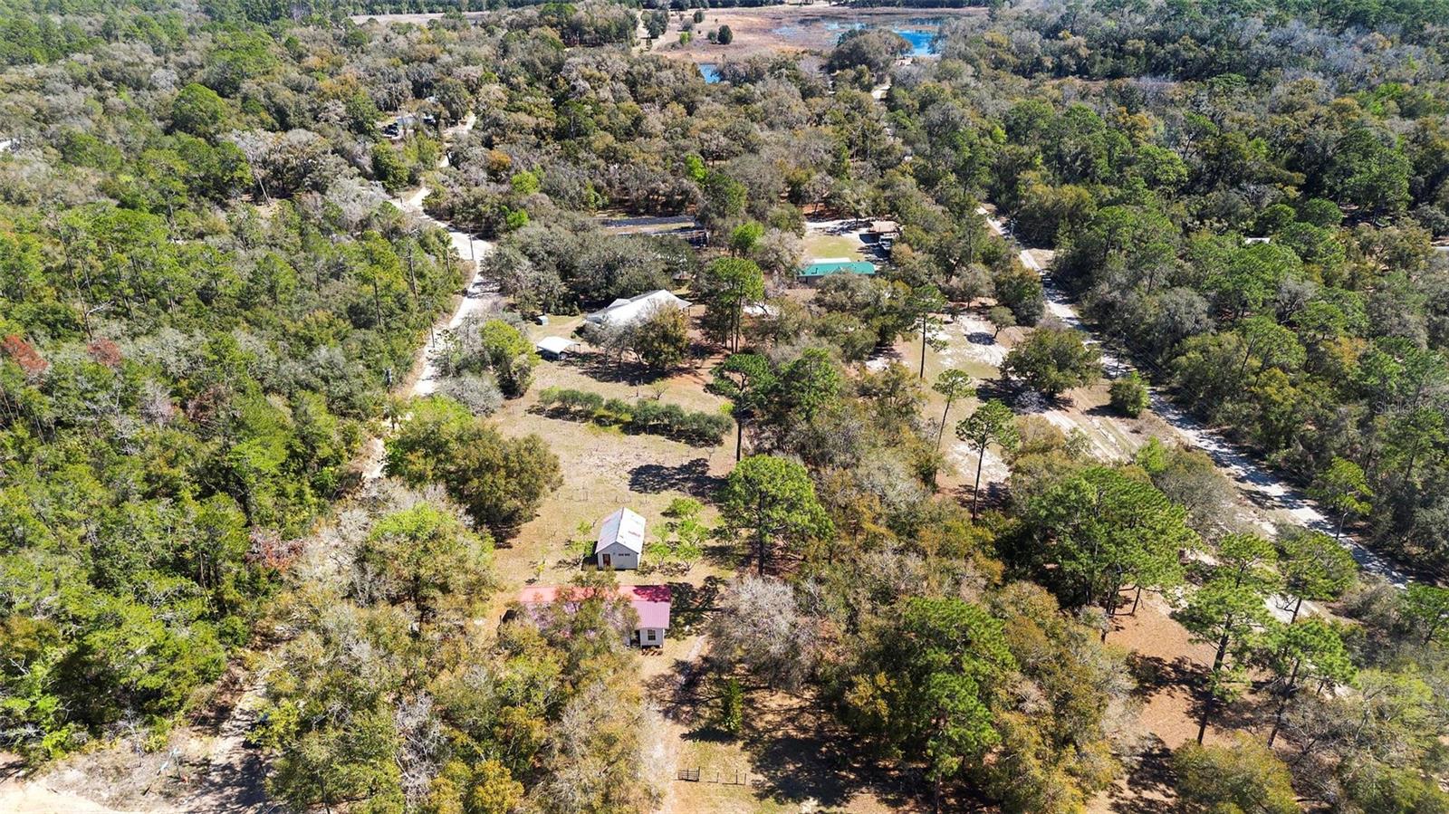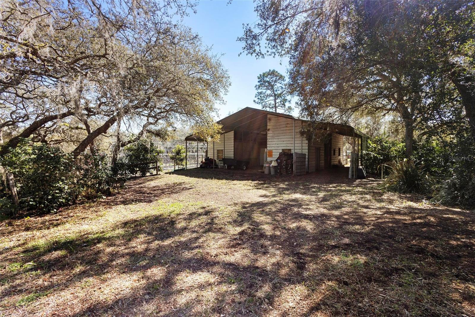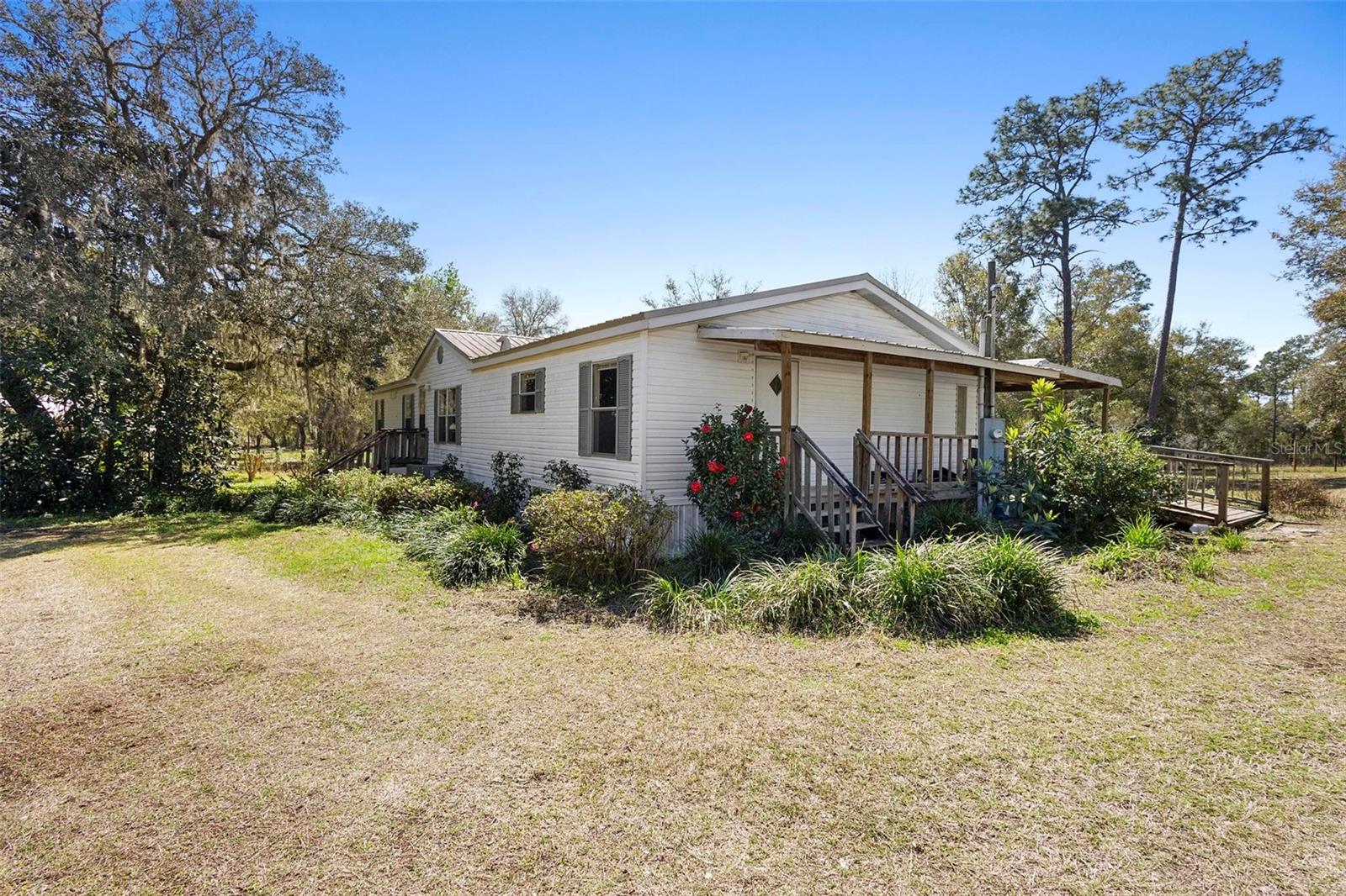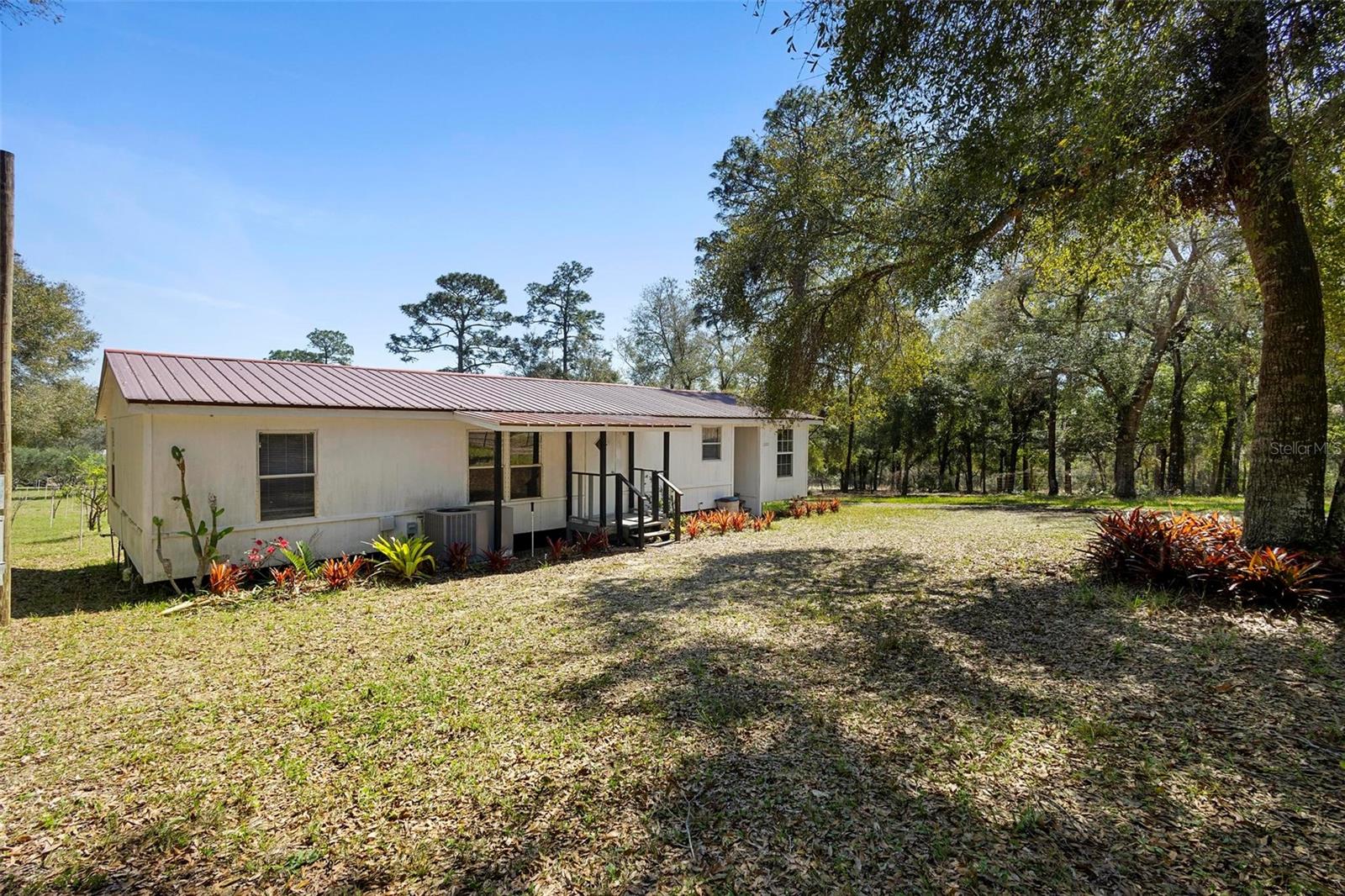 This beautiful 3-acre fully fenced oasis includes 2 homes, a 3-stall barn for horses, a huge storage building, a massive peach orchard, an abundance of blueberry bushes, persimmons, plums, citrus, olives and many other varieties of fruits, vegetables and herbs and is adorned by beautiful flowering Camelias and Azaleas. If you don't possess a "green thumb", bring your horses and utilize the thousands of acres of public trails in the Ocala National Forest that border this estate. This fully irrigated oasis is completely fenced and includes an assortment of fruit trees. A storage barn and 3-stall barn and tack room with water and electricity make the perfect centerpieces for this oasis. Numerous vegetable gardens that are watered by deep-water wells are in place. The 3/2 home at front of property is perfect for a family member, or income-producing rental if permitted by local municipalities. The private 4/2 home at the back of the property includes a metal roof and full-length wrap-around covered deck that is perfect for sipping iced tea while watching the hummingbirds. This property has over 70 persimmons trees, a row of grape vines, goji berries, sanchi vines, passions fruit and more. Seller may consider owner financing. All measurements and counts are approximate and should be independently verified. Buyer should verify zoning usage with local municipalities.