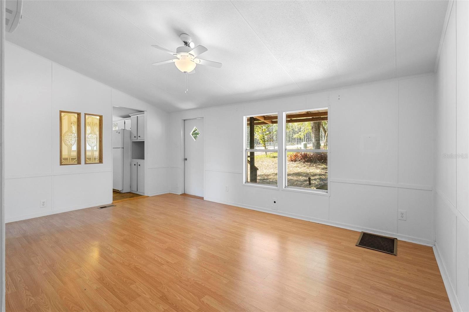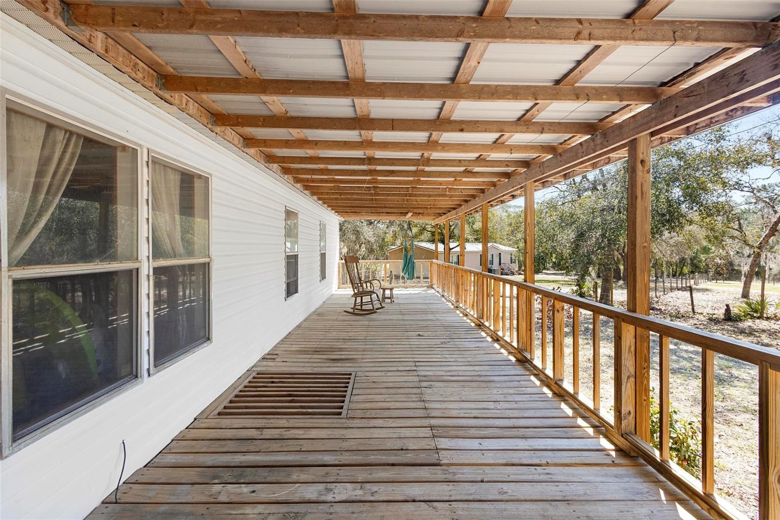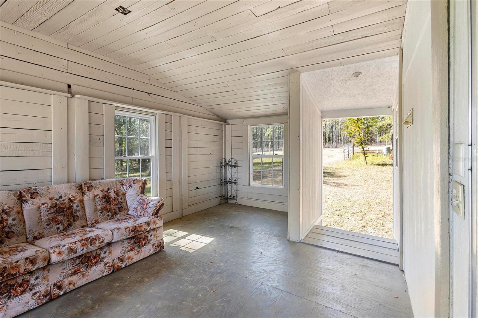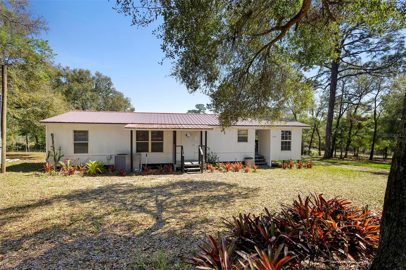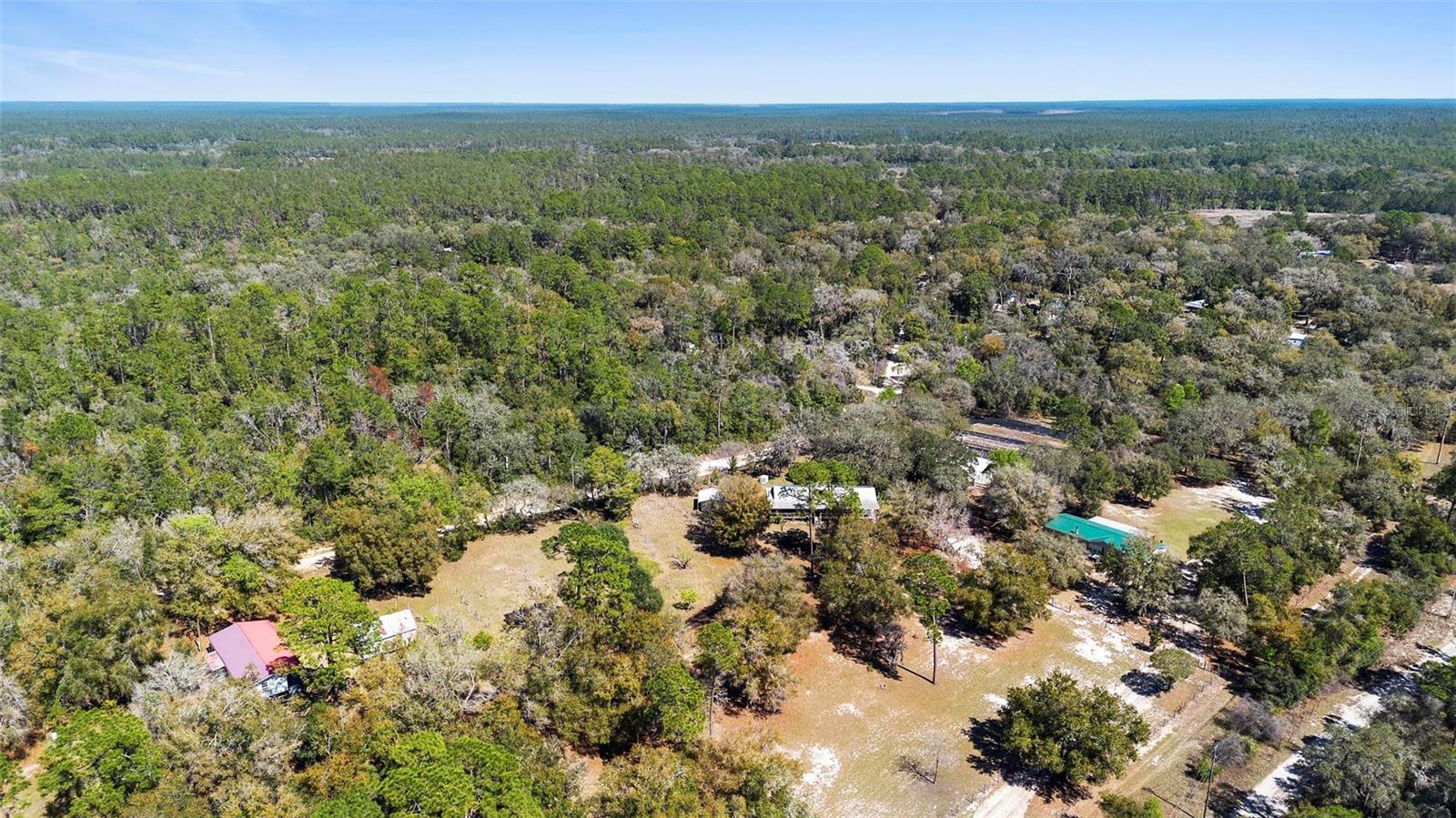 This beautiful 3-acre fully fenced oasis includes 2 homes, a 3-stall barn for horses, a huge storage building, a massive peach orchard, an abundance of blueberry bushes, persimmons, plums, citrus, olives and many other varieties of fruits, vegetables and herbs and is adorned by beautiful flowering Camelias and Azaleas. If you don't possess a "green thumb", bring your horses and utilize the thousands of acres of public trails in the Ocala National Forest that border this estate. This fully irrigated oasis is completely fenced and includes an assortment of fruit trees. A storage barn and 3-stall barn and tack room with water and electricity make the perfect centerpieces for this oasis. Numerous vegetable gardens that are watered by deep-water wells are in place. The 3/2 home at front of property is perfect for a family member, or income-producing rental if permitted by local municipalities. The private 4/2 home at the back of the property includes a metal roof and full-length wrap-around covered deck that is perfect for sipping iced tea while watching the hummingbirds. This property has over 70 persimmons trees, a row of grape vines, goji berries, sanchi vines, passions fruit and more. Seller may consider owner financing. All measurements and counts are approximate and should be independently verified. Buyer should verify zoning usage with local municipalities.