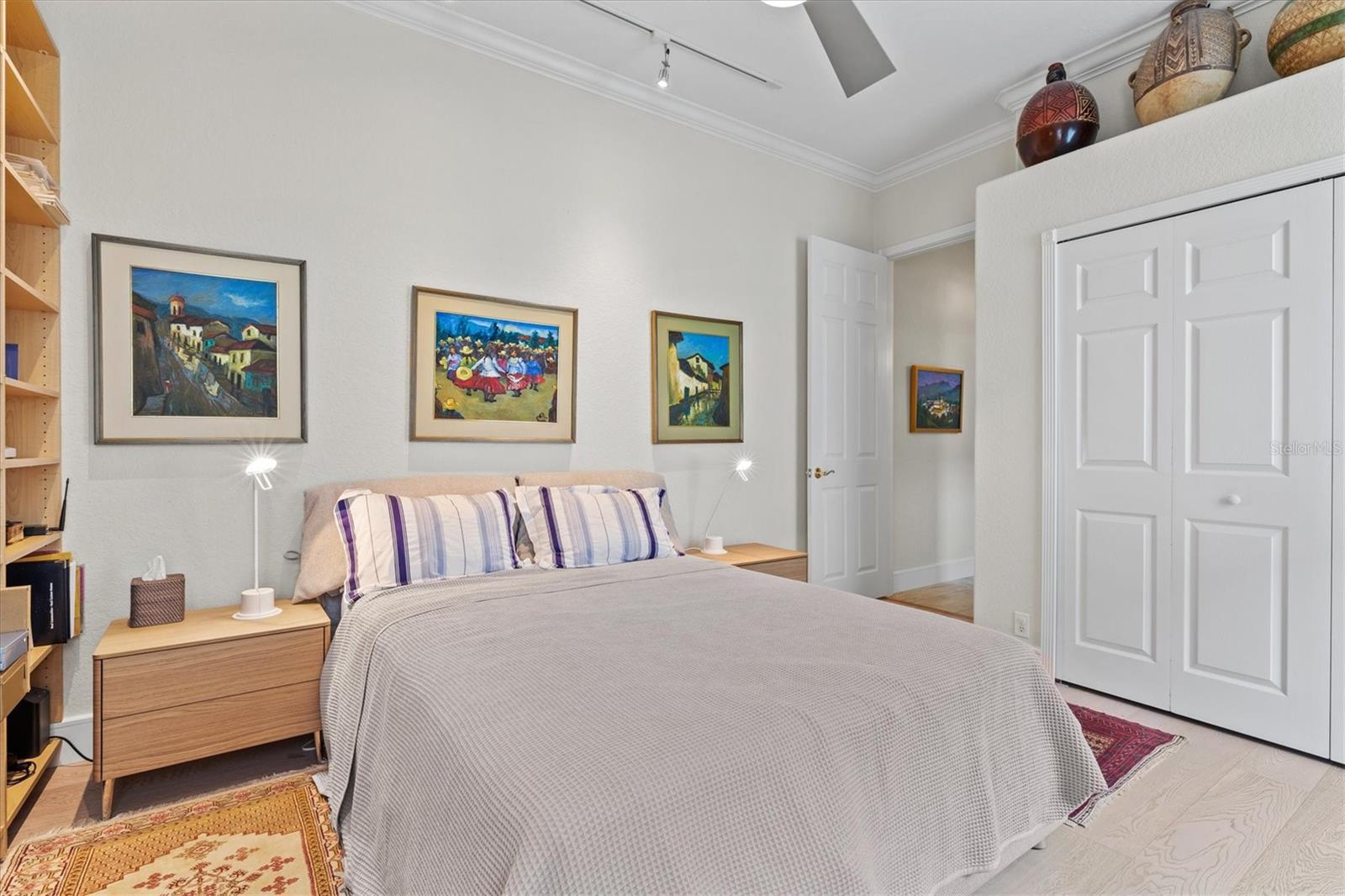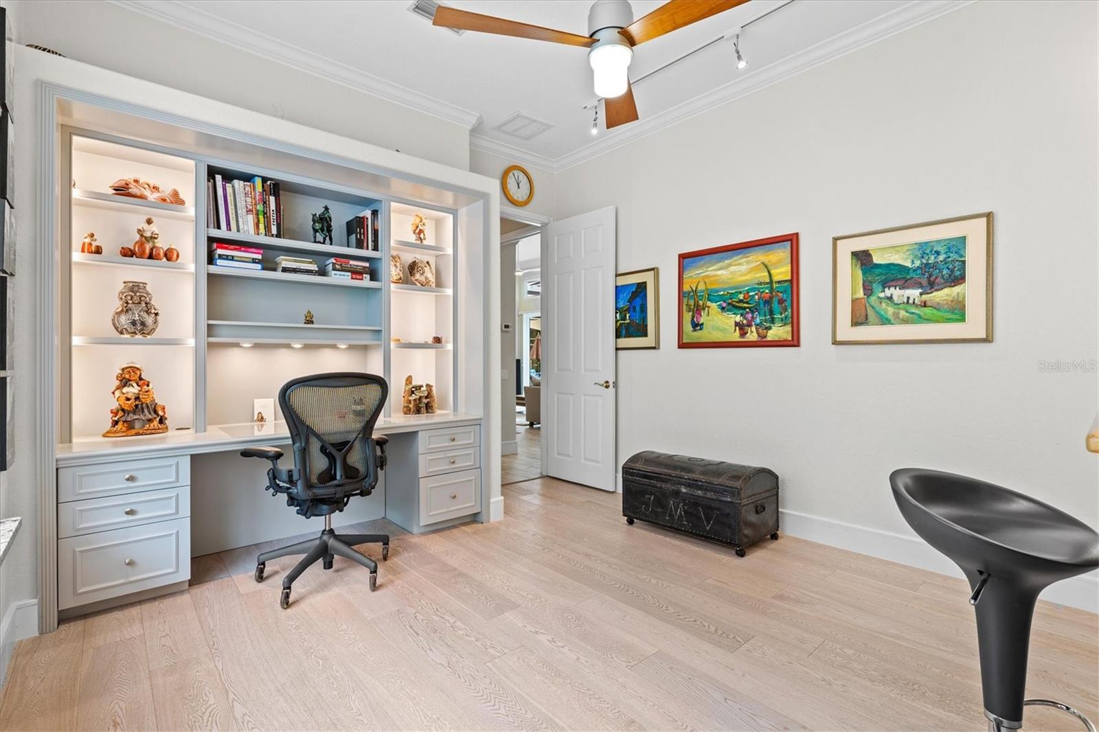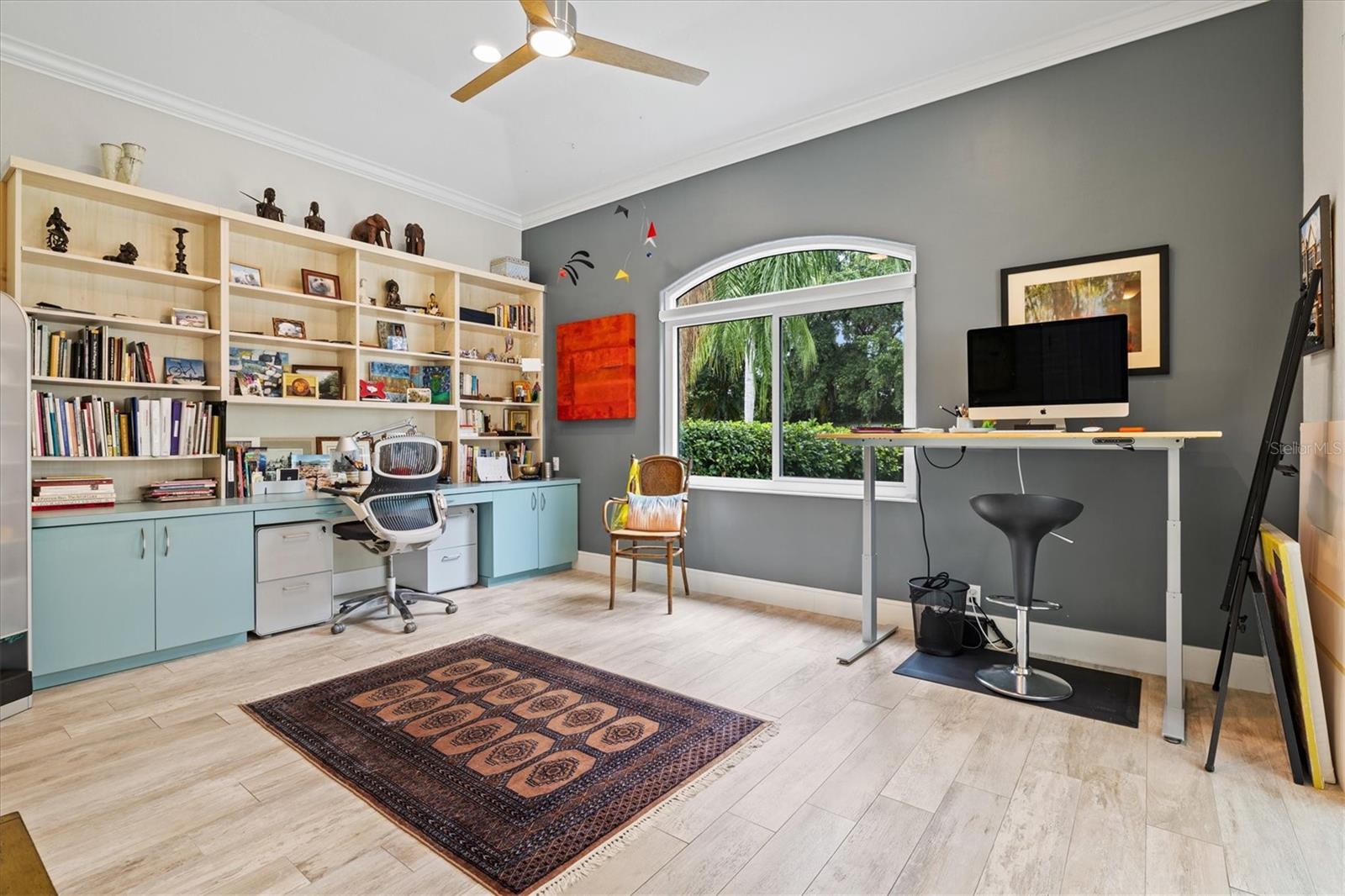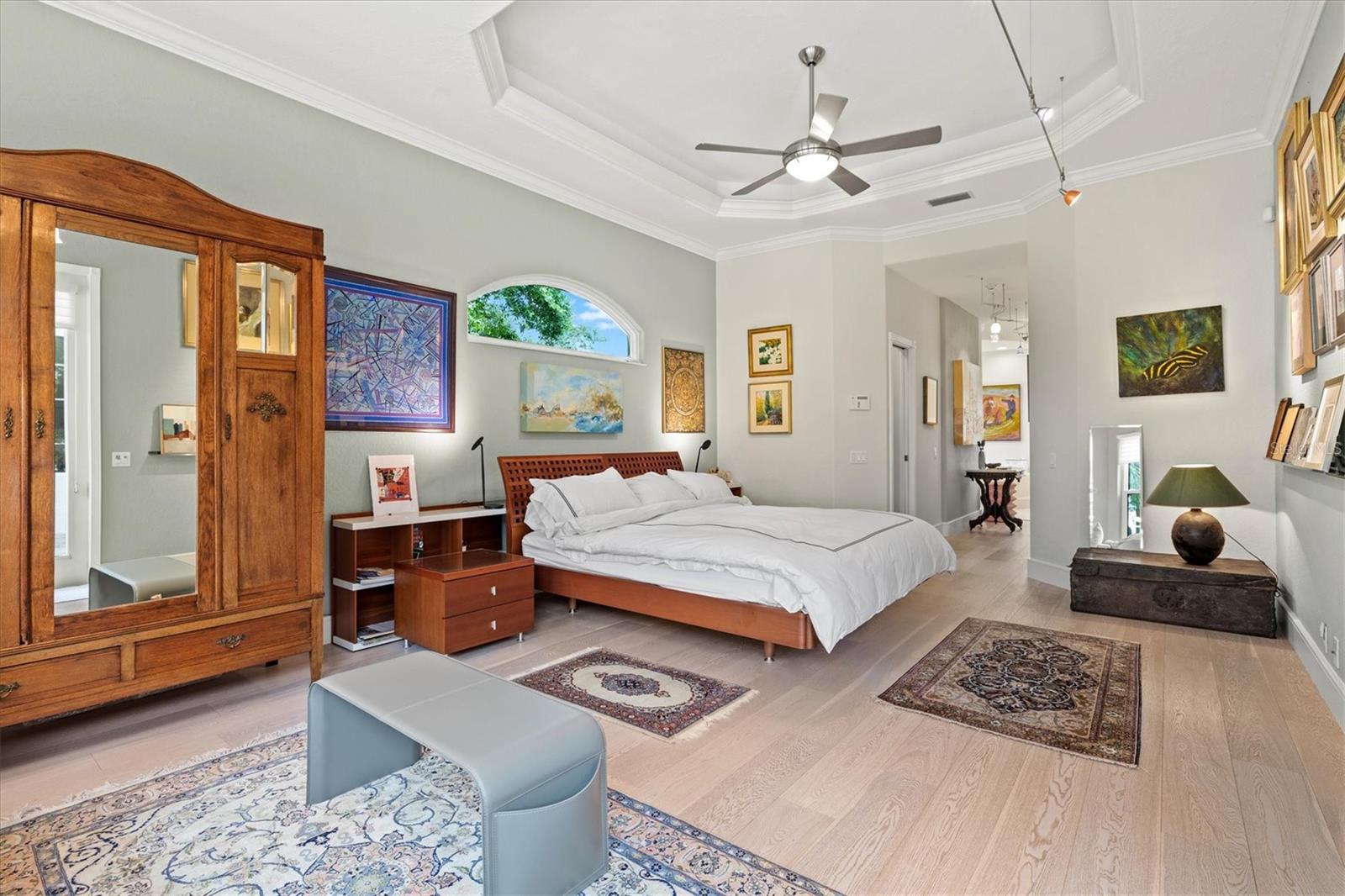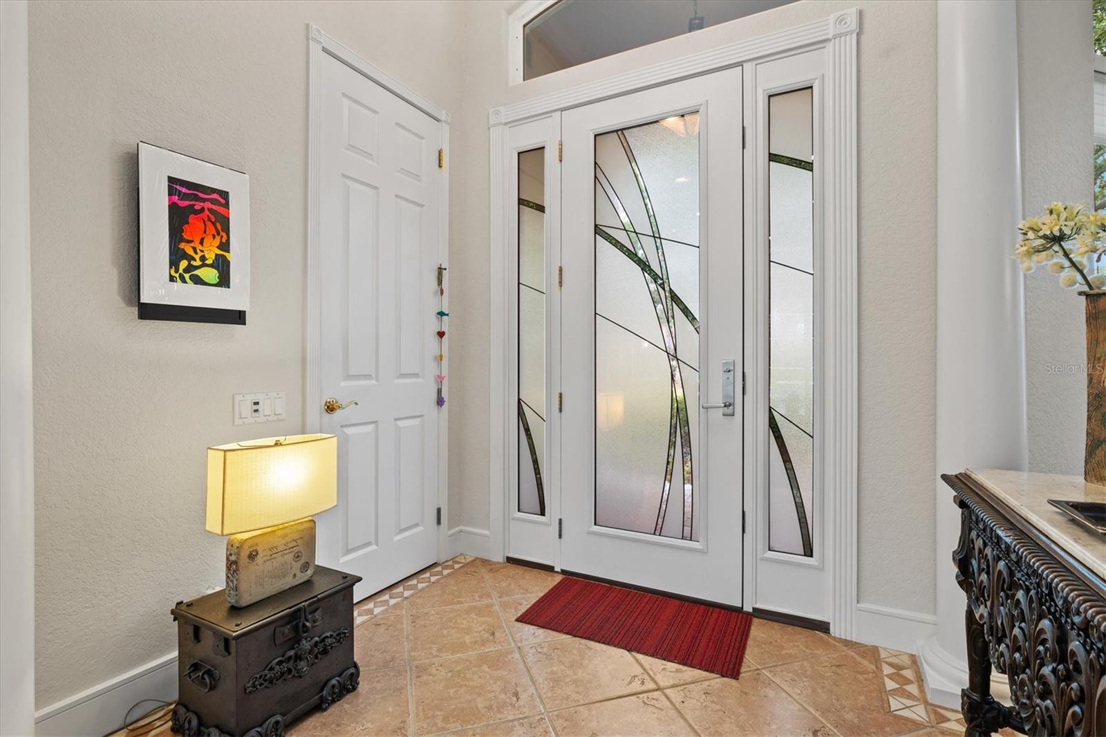 Welcome to your dream home, a stunning Pat Neal residence that offers an exceptional lifestyle in the sought-after University Park Country Club community. This exquisite 4-bedroom, 3-bath home is perfect for the discerning collector of art and memorabilia, with thoughtfully designed spaces that combine elegance and functionality. As you step through the beautifully etched glass front door, you're greeted by an impressive living room and dining room combination. High ceilings, intricate crown molding, and lighted built-ins showcase the refined details of this home. A triple sliding glass door opens to the inviting pool and lanai, seamlessly blending indoor and outdoor living. The split floor plan ensures privacy and tranquility in the primary suite, which features a spacious windowed sitting area, perfect for relaxation or enjoying a good book. Admire your collections on the gallery wall, and benefit from two large walk-in closets offering ample storage. The luxurious primary bathroom boasts double sinks, a soaking tub, and a large zero-entry walk-in shower, creating a spa-like retreat. On the opposite side of the house, you'll find three additional bedrooms and two sleek, updated bathrooms, providing comfort and convenience for family or guests. The heart of the home is the large chef’s kitchen, complete with an island featuring storage and a raised bar, an eat-in dining area, and stunning aquarium windows. The kitchen flows into the family room, where triple glass sliders lead to the expansive lanai. The outdoor space is truly exceptional. The large pavered lanai offers various seating areas, an outdoor kitchen with a refrigerator, grill, and side burners, all overlooking the beautifully resurfaced and tiled heated salt-water pool and hot tub. The yard is fenced with an almost-invisible green chain-link fence adorned with lush plantings, ensuring privacy. The entire yard and lanai are landscaped with Florida native flowering plants, shrubs, and large trees, creating a serene oasis and a haven for birds, butterflies and pollinators. A charming fountain graces the front entrance, adding to the home's curb appeal. This home features numerous upgrades, including a new tile roof installed in 2023. Crown molding, tray ceilings, designer ceiling fans, custom built-ins, Hunter Douglas window treatments, home theater/surround sound system, ample storage, and LED lighting are found throughout. Additionally, the home is equipped with hurricane impact-resistant windows, doors, and shutters for your peace of mind. Don't miss this opportunity to own this showcase of design and craftsmanship with modern upgrades in a prime location. Schedule your private showing today and experience the luxurious lifestyle this home has to offer.