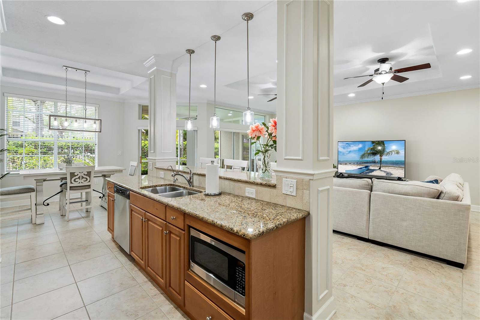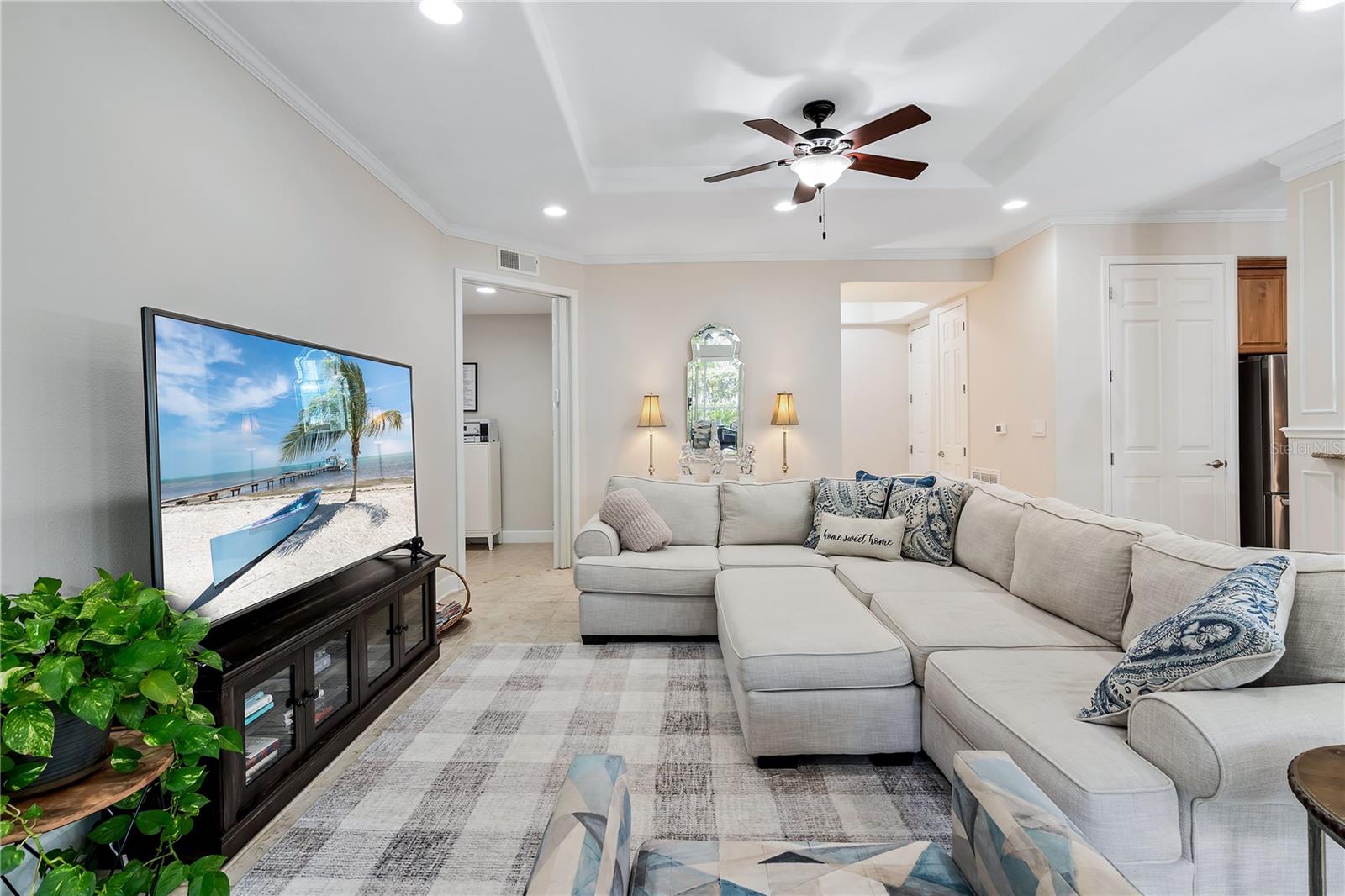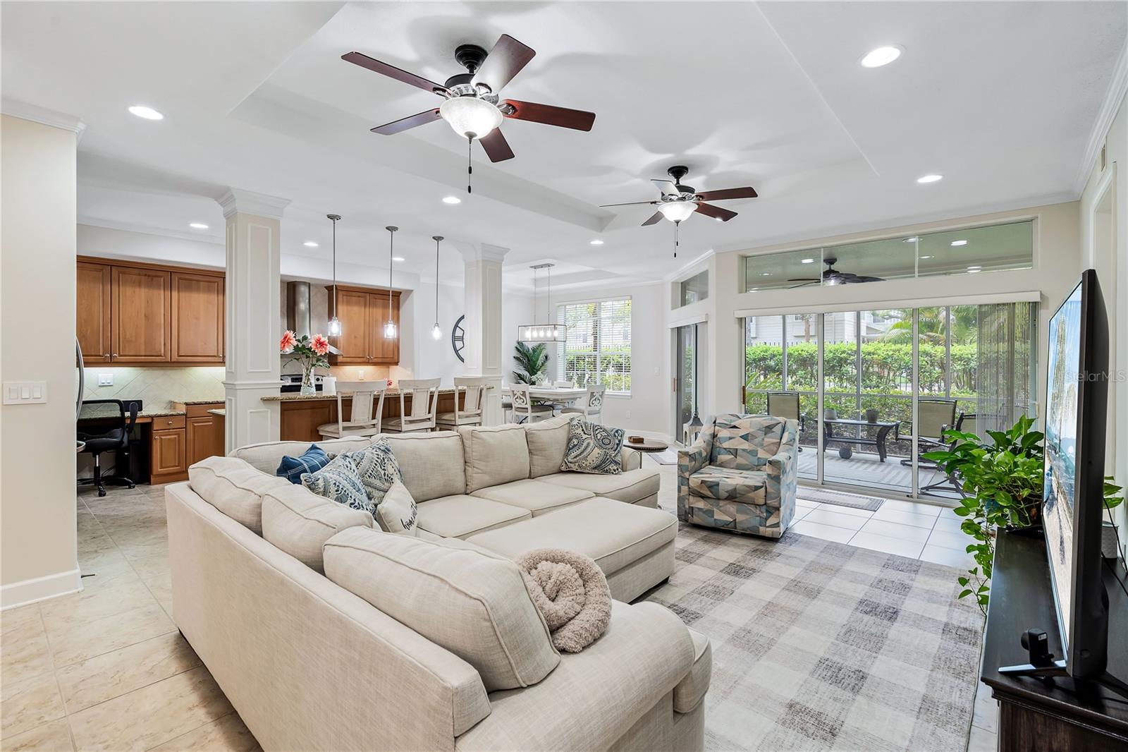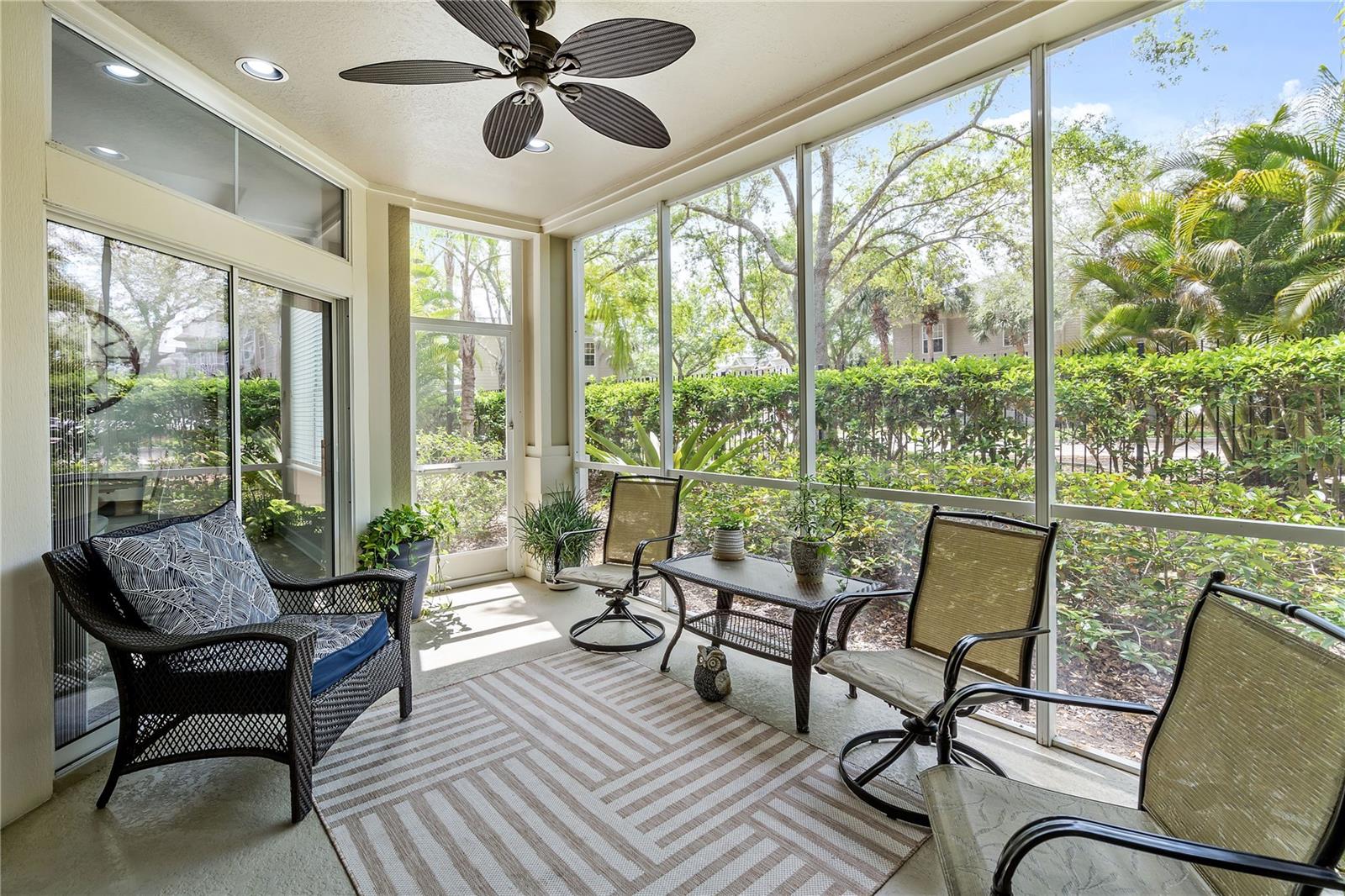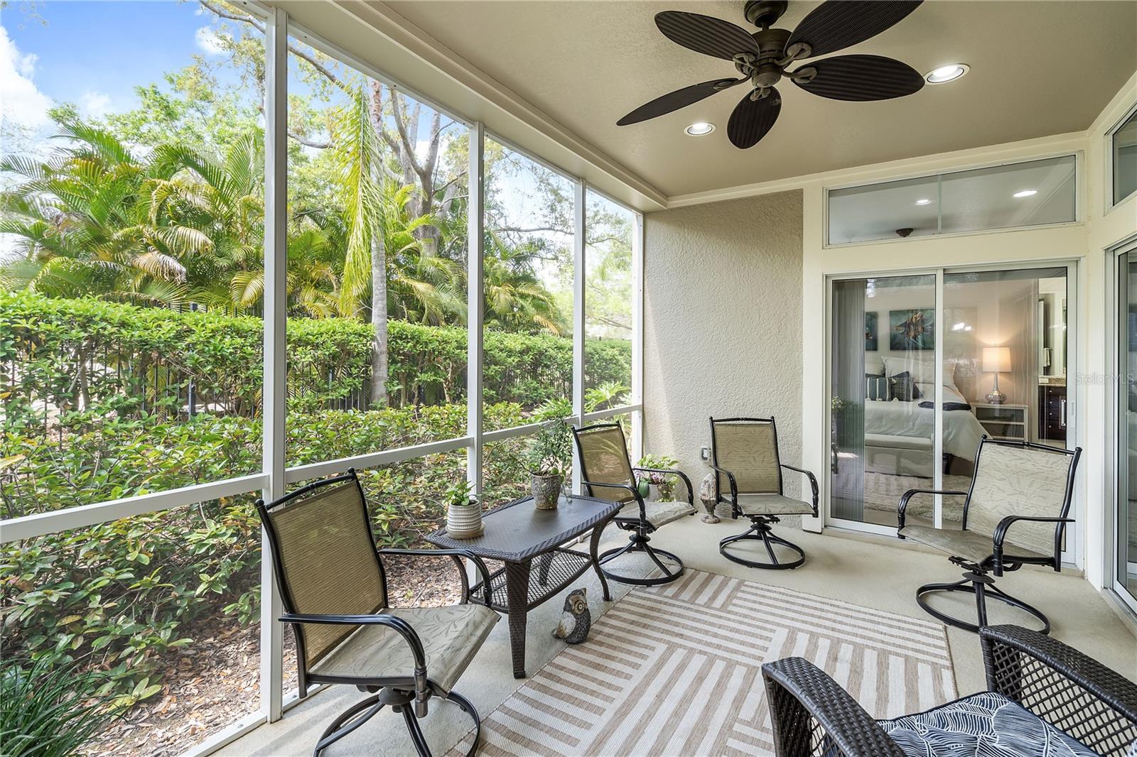 BIG REDUCTION and BEST VALUE for this pristine UTC condo!!! Welcome to a luxurious oasis in University Park where a relaxed coastal lifestyle begins the moment you step inside. This spacious Savannah Preserve 1st-floor condo features 2 BR + Den, 2 BA, and a full laundry room, with sunny and bright west-facing rear exposure. This condo is absolutely flawless including a BRAND NEW ROOF, with endless upgrades, ready for you to move in and enjoy immediately. The sprawling open-concept living room, dining, and kitchen invites with soaring ceilings and 8-foot doors, infusing the space with an airy, expansive feel. The gourmet kitchen is a chef's haven adorned with stylish granite countertops, oversized cabinets, pantry, and stainless-steel appliances, elevating every cooking experience. Throughout the unit, oversized tile floors combine style with practicality. The large owner's suite offers a sanctuary of relaxation, complete with a generously sized walk-in closet and convenient access to the private lanai, perfect for morning coffees or evening unwinding. The owner's bathroom is a haven in itself, featuring a spacious walk-in shower, linen closet, double sinks, and a separate water closet for added privacy. The guest bedroom space allows for a large bed and features a walk-in closet. Need a versatile space for work or guests? The spacious office/den offers flexibility, accommodating a bed or customized to your desires. Embrace year-round comfort with the recently updated HVAC system installed in June 2023, ensuring efficient cooling on hot days. The interior, freshly painted in 2022, exudes modernity and warmth, giving the condo a modern and refreshed look. Parking is effortless with an attached garage and two extra designated spaces, ensuring convenience for you and your guests. Outside, the Savannah Preserve community awaits with a gorgeous pool, cabana for poolside relaxation, clubhouse for gatherings, and a well-equipped fitness center, all within a short walk of the home. Discover unbeatable convenience with the renowned UTC Shopping District (UTC Mall, Target, Home Goods, REI, Whole Foods, Trader Joe's, Nordstrom Rack, etc.) and countless restaurants just moments away from the community. Benderson Park is 5 minutes away and provides many lakeside walking and biking paths. The condo is just 10+ minutes to Downtown Sarasota, SRQ Airport, St. Armands Circle, Waterside and world-class beaches like Longboat Key, Lido Key, and Siesta Key.