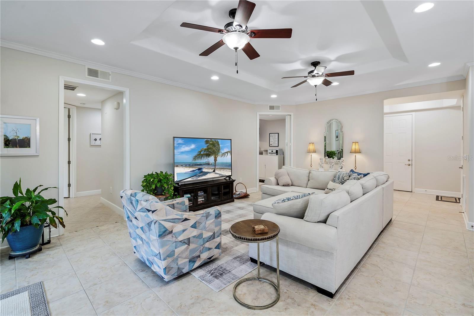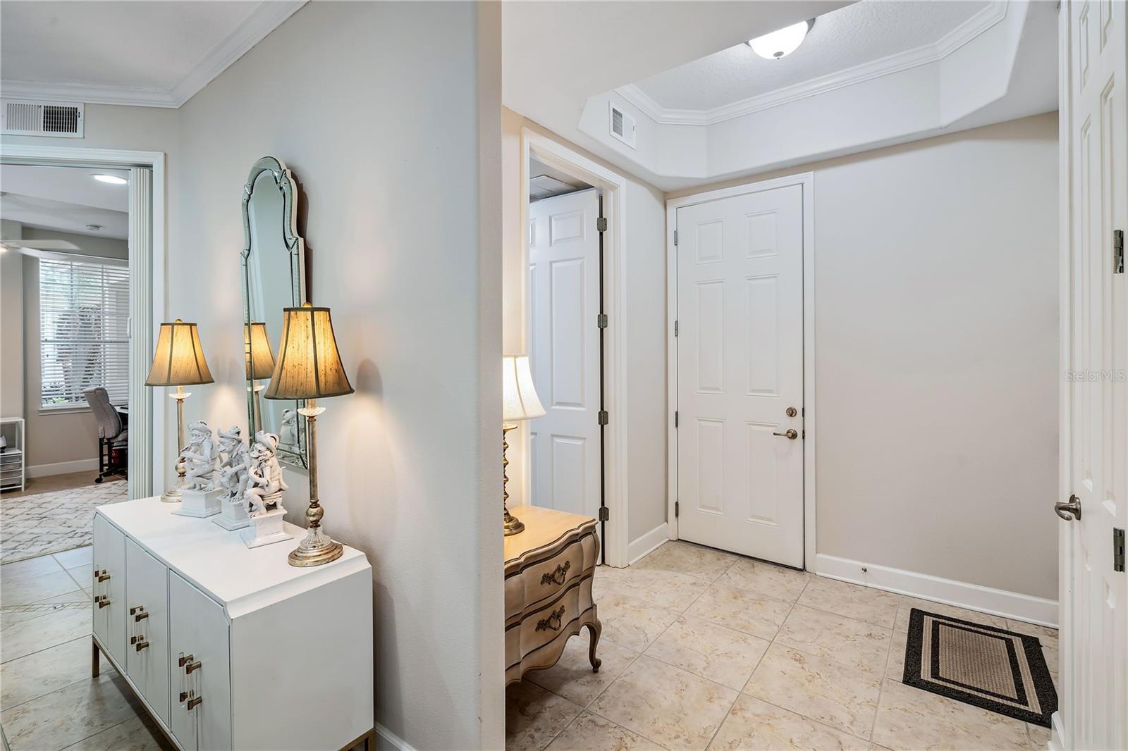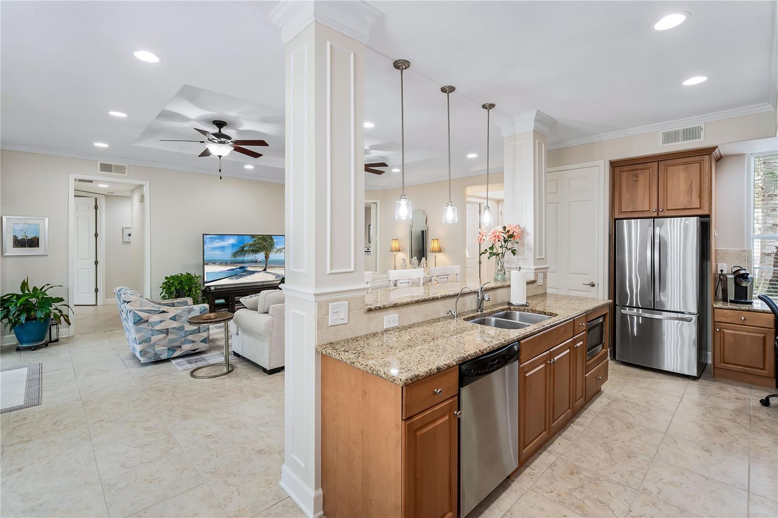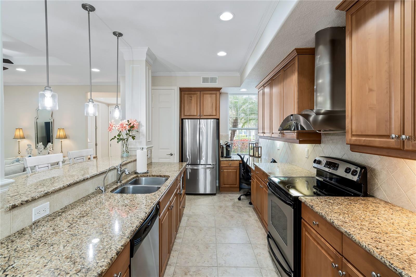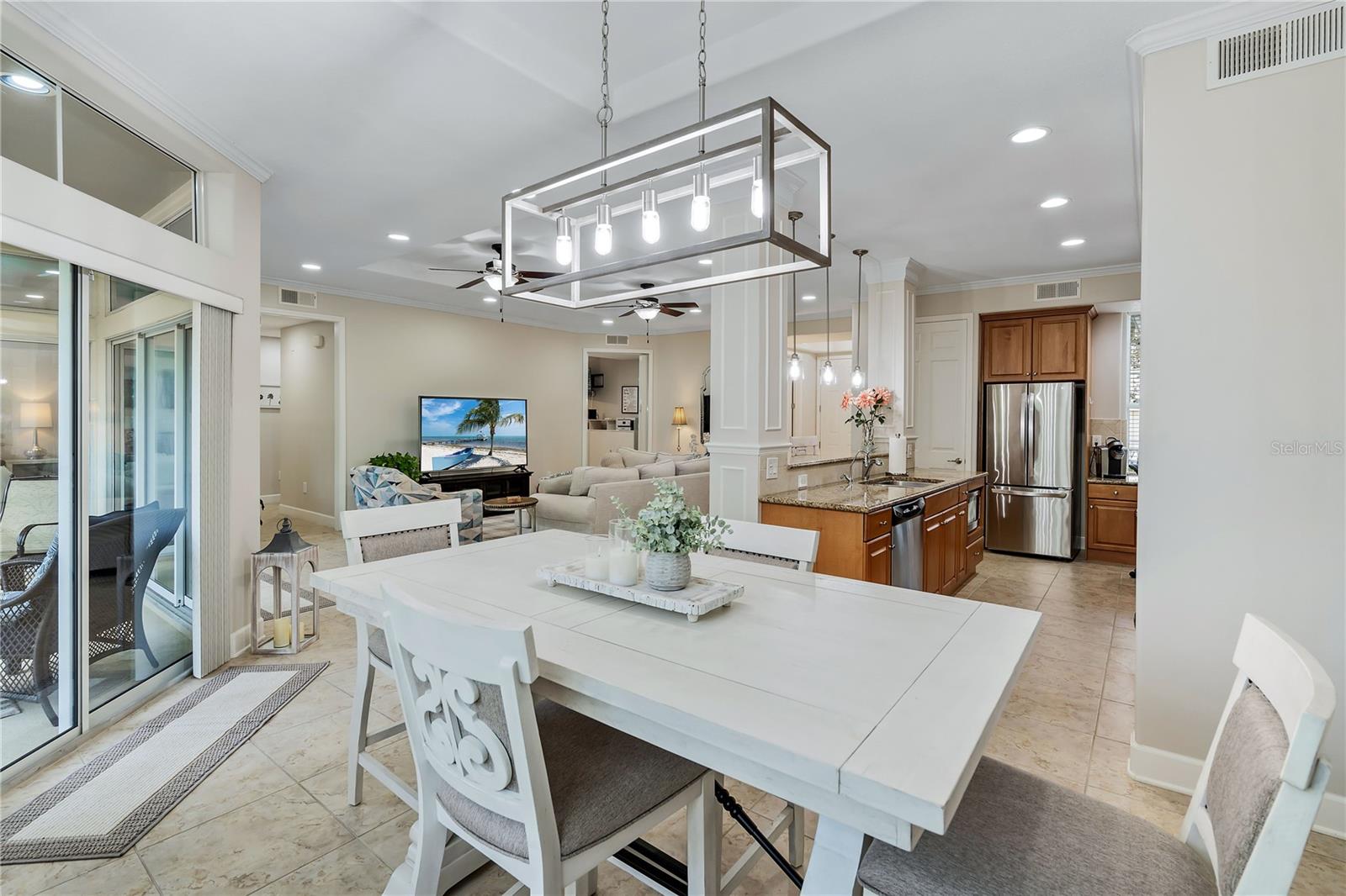 BIG REDUCTION and BEST VALUE for this pristine UTC condo!!! Welcome to a luxurious oasis in University Park where a relaxed coastal lifestyle begins the moment you step inside. This spacious Savannah Preserve 1st-floor condo features 2 BR + Den, 2 BA, and a full laundry room, with sunny and bright west-facing rear exposure. This condo is absolutely flawless including a BRAND NEW ROOF, with endless upgrades, ready for you to move in and enjoy immediately. The sprawling open-concept living room, dining, and kitchen invites with soaring ceilings and 8-foot doors, infusing the space with an airy, expansive feel. The gourmet kitchen is a chef's haven adorned with stylish granite countertops, oversized cabinets, pantry, and stainless-steel appliances, elevating every cooking experience. Throughout the unit, oversized tile floors combine style with practicality. The large owner's suite offers a sanctuary of relaxation, complete with a generously sized walk-in closet and convenient access to the private lanai, perfect for morning coffees or evening unwinding. The owner's bathroom is a haven in itself, featuring a spacious walk-in shower, linen closet, double sinks, and a separate water closet for added privacy. The guest bedroom space allows for a large bed and features a walk-in closet. Need a versatile space for work or guests? The spacious office/den offers flexibility, accommodating a bed or customized to your desires. Embrace year-round comfort with the recently updated HVAC system installed in June 2023, ensuring efficient cooling on hot days. The interior, freshly painted in 2022, exudes modernity and warmth, giving the condo a modern and refreshed look. Parking is effortless with an attached garage and two extra designated spaces, ensuring convenience for you and your guests. Outside, the Savannah Preserve community awaits with a gorgeous pool, cabana for poolside relaxation, clubhouse for gatherings, and a well-equipped fitness center, all within a short walk of the home. Discover unbeatable convenience with the renowned UTC Shopping District (UTC Mall, Target, Home Goods, REI, Whole Foods, Trader Joe's, Nordstrom Rack, etc.) and countless restaurants just moments away from the community. Benderson Park is 5 minutes away and provides many lakeside walking and biking paths. The condo is just 10+ minutes to Downtown Sarasota, SRQ Airport, St. Armands Circle, Waterside and world-class beaches like Longboat Key, Lido Key, and Siesta Key.