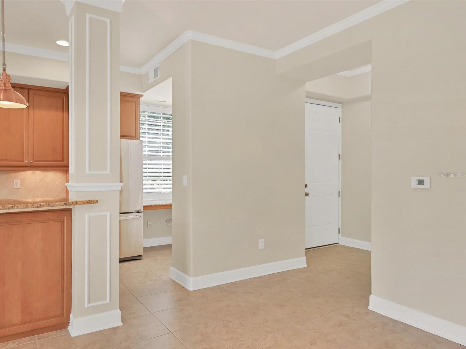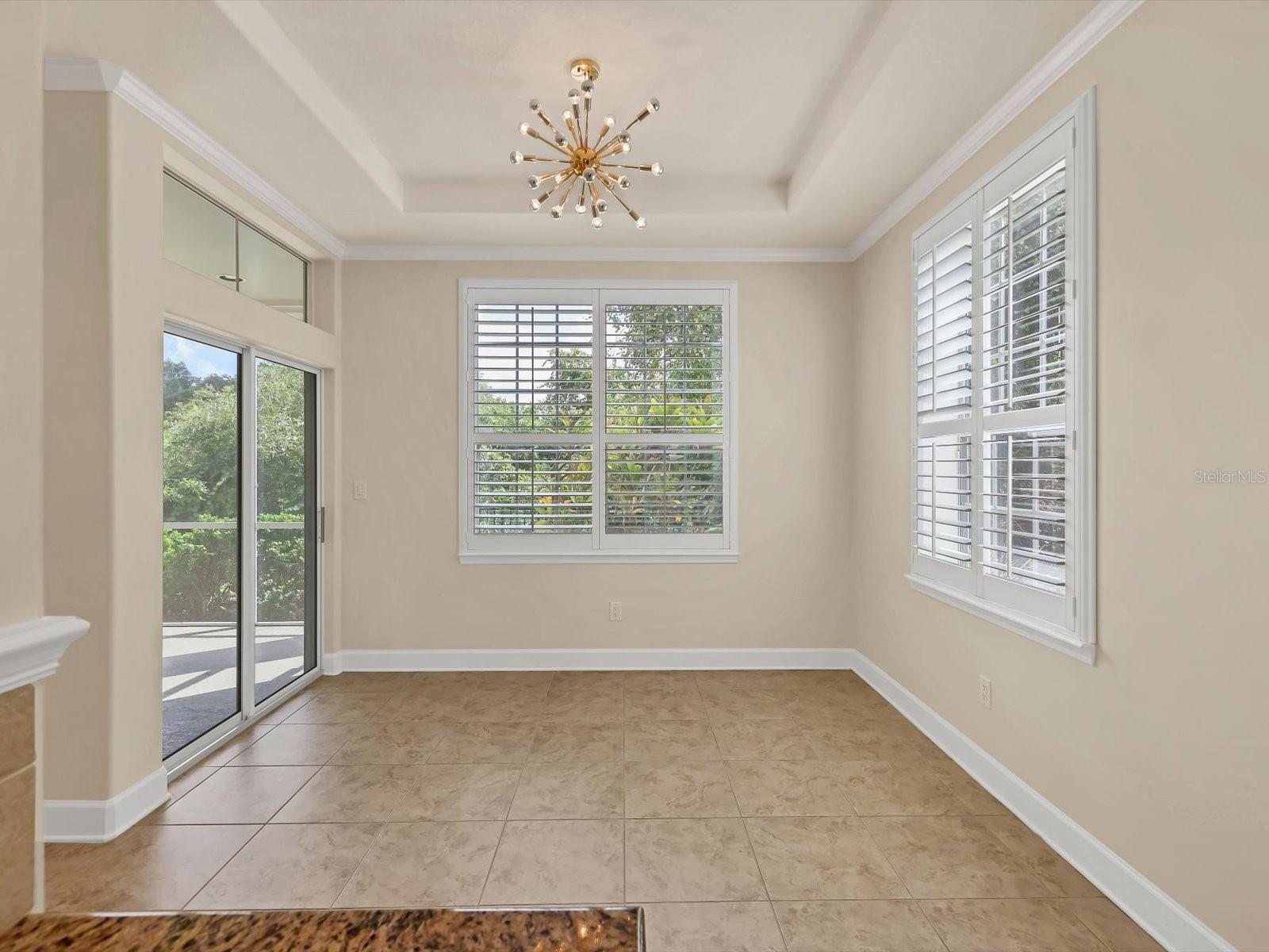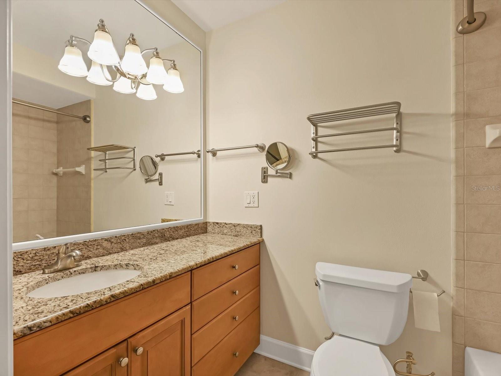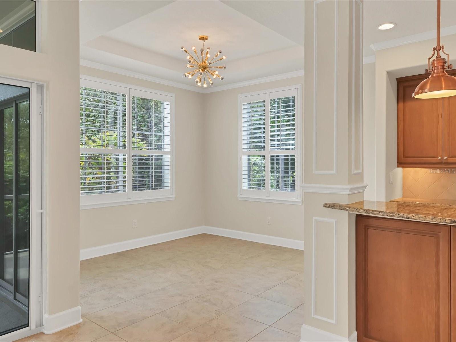 Natural light fills this spacious and stylish two bedroom plus den, two bath condo. This home boasts incredible upgrades and enjoys a prime location in Savannah Preserve. With everything on one floor (no stairs) and tropical views, you can enjoy a laidback tropical lifestyle in comfort and ease, surrounded by beauty. The kitchen features 42" cherry cabinetry with roll out drawers, granite counters, raised granite bar, and stainless-steel appliances, including an upgraded refrigerator, and range hood. The primary suite is nicely situated and enjoys tranquil views, has a large walk-in closet, and beautiful master bath with granite counters, dual sinks and a large spa-like shower. An attached one-car garage has ample storage space, and this unit is deeded with a second outdoor parking space located next to the driveway. Neutral color walls and flooring allow you to move in and immediately make this home your own. Other features include crown molding, gorgeous ceiling fans, stepped ceilings, recessed can lighting with dimmers, handsome custom window treatments including blinds, an interior utility room with additional storage, folding area and utility sink, and a spacious screened and tiled floor lanai overlooking the preserve. Savanah Preserve at University Park is a gated luxury condominium community in the heart of the University Park corridor. While you will have privacy on the beautifully landscaped, manicured grounds, you will also be a heartbeat away from everything the area offers, shopping and fine dining, the UTC Mall and Benderson Park, the airport, world renowned beaches and all the cultural and recreational offerings of downtown Sarasota. Savannah Preserve has a large, heated swimming pool with separate exercise facilities, low condo dues, and no CDD fees.