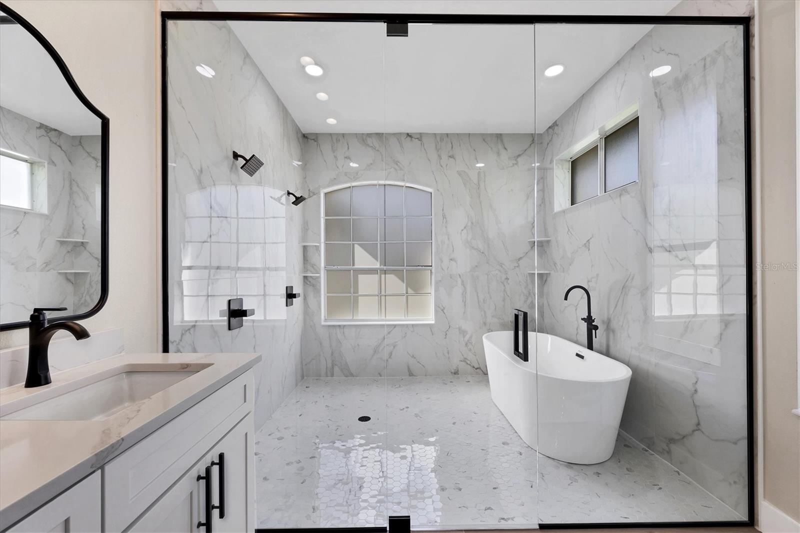 Welcoming, light and bright, remodeled. Welcome to 6615 Hunter Combe. Carefully reimagined and laid out for modern living. Enjoy this wonderful split floor plan featuring 3 bedrooms, 3 bathrooms, PLUS office. Seamless porcelain tile flooring guides you throughout the home. The kitchen is open concept for entertaining, complete with solid wood cabinets, quartz countertops and GE Profile appliances. The primary bedroom features an elevated en-suite bathroom with complete wet space for a spa-lake experience. Extensive 2024 upgrades to the home include new roof, ac system, paver driveway & pool surround, lighting, flooring, bathrooms, kitchen, pool heater, irrigation upgrades and more. University Park speaks for itself as an award-winning community in a perfect location with great amenities.