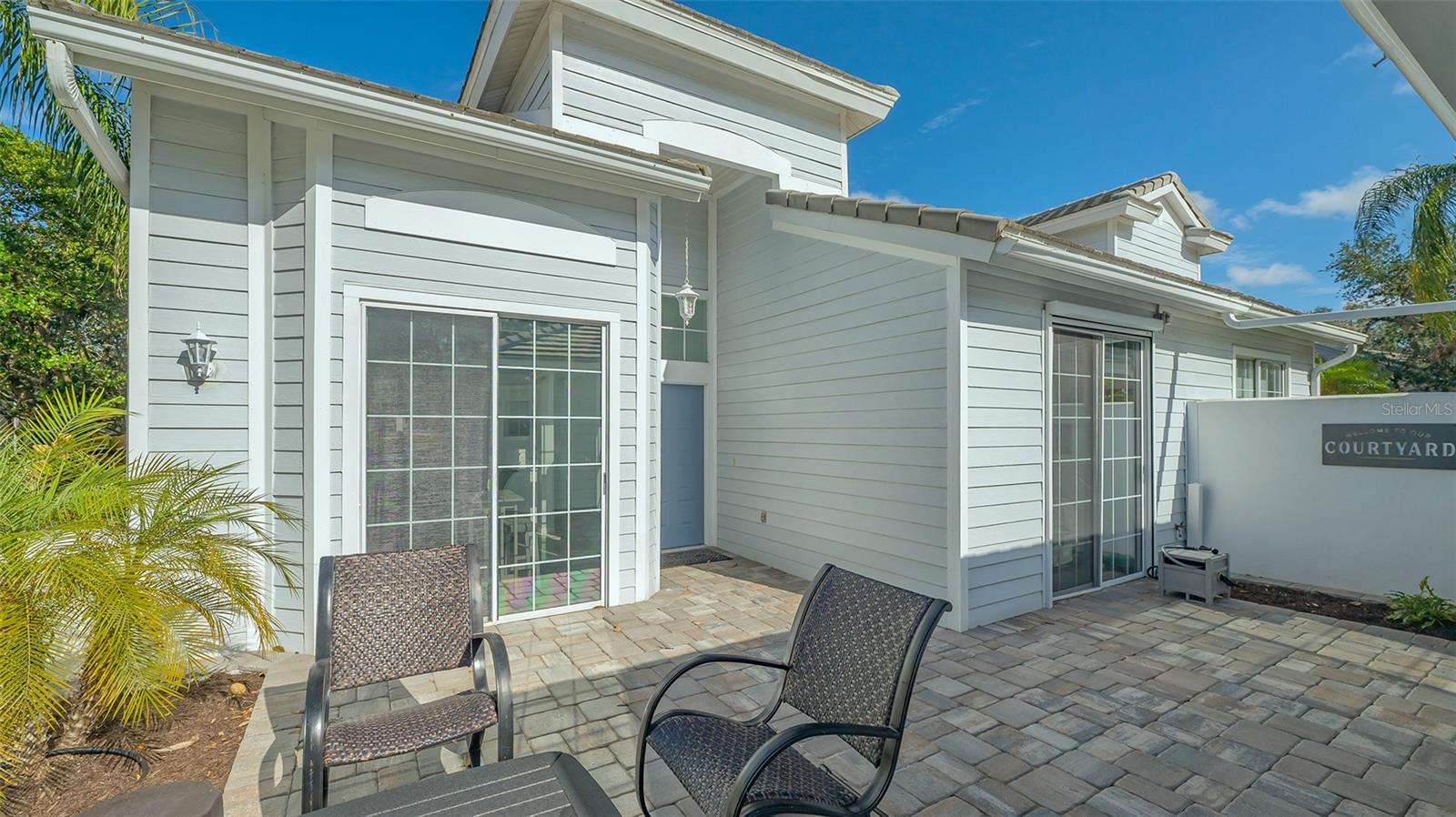 This beautiful 2-bedroom, 2-bathroom villa in the award-winning University Park Country Club is move-in ready and offers an exceptional blend of comfort, style, and outdoor living. The villa is located in the desirable Whitebridge Court neighborhood, known for its maintenance-free living and community pool. As you enter the property, a pavered courtyard welcomes you, providing the perfect space for entertaining and relaxing. The front entrance, featuring glass sidelight and transom windows, opens into a spacious and well-designed living area with tile floors throughout. The kitchen, updated just a few years ago, boasts beautiful quartz countertops, new appliances, and a breakfast bar. A double slider from the kitchen leads directly to the courtyard, further enhancing the home’s connection to the outdoors. The dining room is illuminated by modern lighting and offers a charming window seat, while the living room features triple sliders that lead to a glass-enclosed lanai—ideal for enjoying the beautiful Florida weather year-round. From there, quad-sliders open to an additional screened lanai that provides breathtaking lake views, creating the perfect setting for outdoor relaxation and entertainment. The spacious primary bedroom includes a private sitting area with scenic lake views. The ensuite bathroom features double sinks, a walk-in shower, quartz countertops, and a large walk-in closet. The guest bedroom also offers access to the courtyard through a double slider, complete with an automated sunscreen for added comfort. Guests will enjoy a private bath with a tub/shower combination and quartz countertops. For additional privacy, the guest area can be closed off with double doors. The home also includes a large closet with newer washer and dryer, ceiling fans throughout, and serene paint colors that complement the peaceful surroundings. The property is beautifully landscaped and has been updated with the roof, air conditioner and hot water heater all replaced in 2019/2020. This villa is a perfect blend of modern amenities and outdoor enjoyment, with entertainment spaces both at the front and back of the home. Enjoy all that University Park Country Club has to offer, with easy access to the golf course and a community pool just steps away. Don’t miss this opportunity to make this lovely villa your new home! University Park Country Club is consistently ranked one of the top courses in Florida featuring 27 holes of championship golf; tennis and pickleball; fitness center, croquet – as well as an array of social and group activities. Just a 15-minute drive outside this peaceful enclave is downtown Sarasota, with shopping, arts & theatres, museums, dining and entertainment, top-ranked healthcare, beaches and SRQ International Airport. Two miles east of UPCC is the convenience of I-75, University Town Center with 300 nationally known and homegrown shops, restaurants, fitness studios, services and attractions and the Nate Benderson Park, home of world-class rowing events. Enjoy the club amenities with the required minimum of a Social membership at UPCC, which is owned by the residents through a Recreation District.