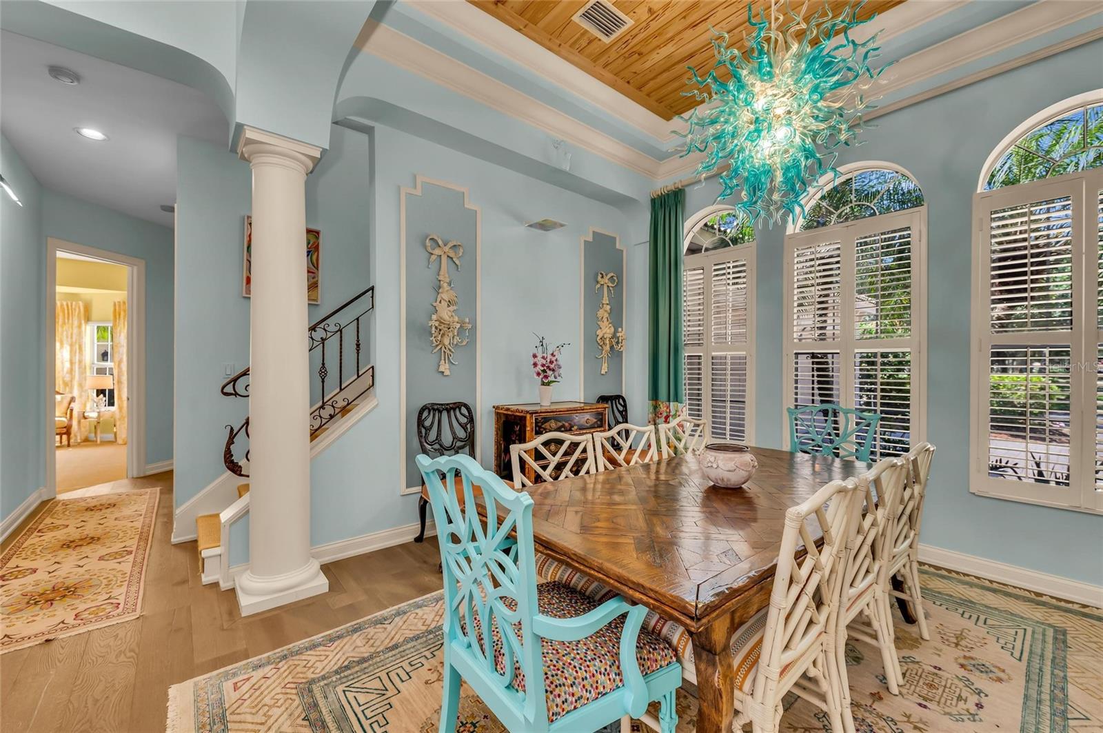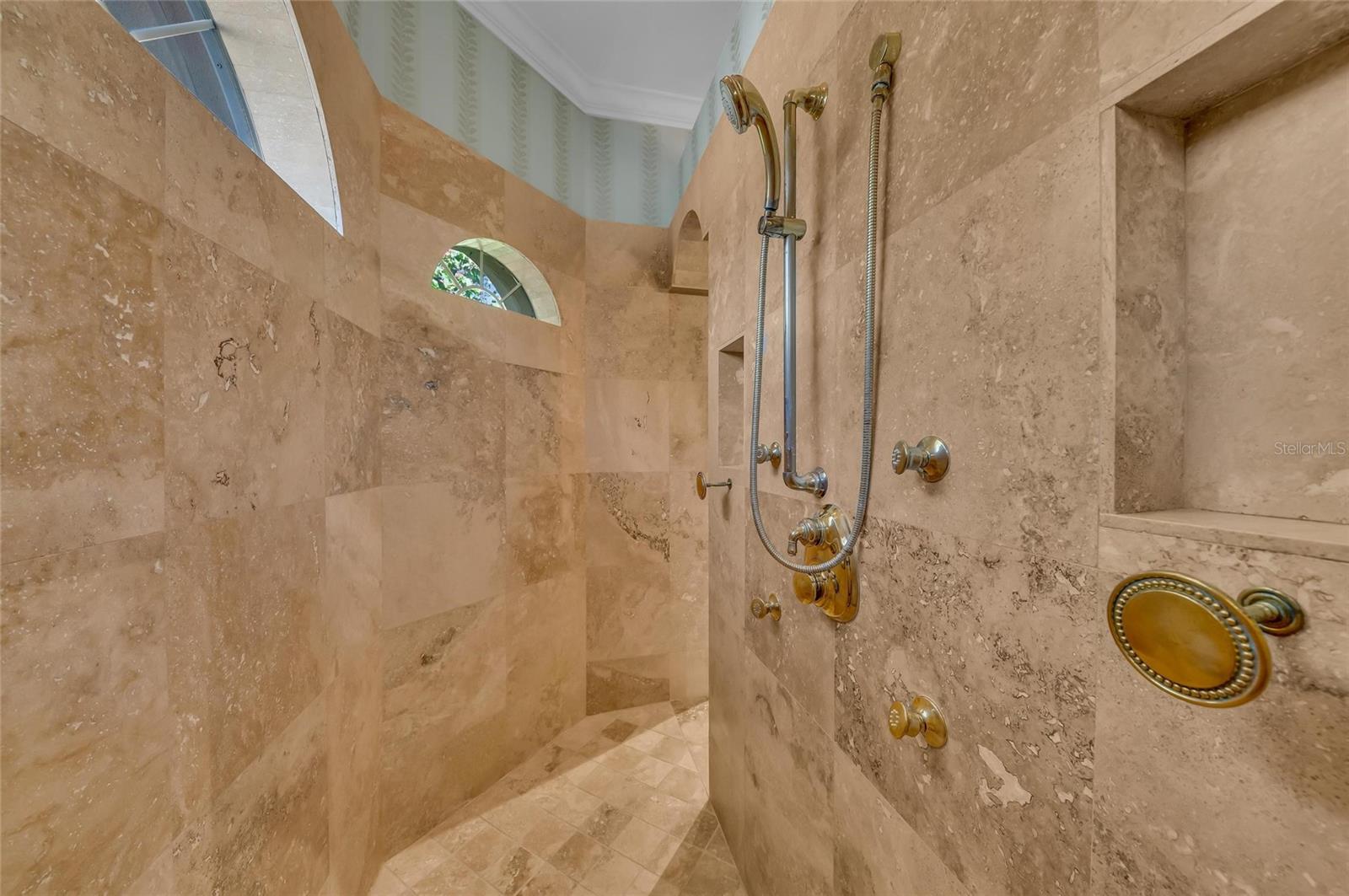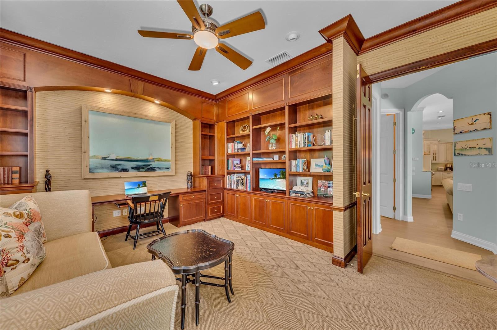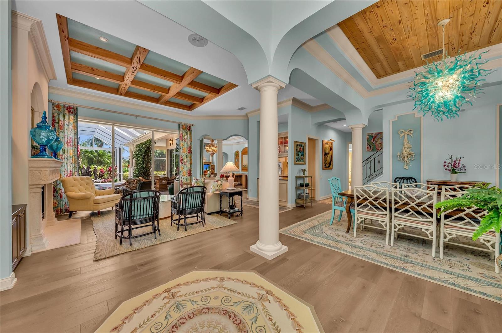 Experience the pinnacle of refined Florida living in this exquisite residence in University Park Country Club. Poised on an expansive corner lot embraced by majestic oak and jacaranda trees, this home is a masterpiece in elegance and sophistication. Every detail has been meticulously curated, from the bespoke wood-paneled ceilings and handcrafted stone fireplaces to the rich built-in cabinetry that elevates every space. The chef’s kitchen is a work of art, featuring a professional-grade six-burner gas cooktop, sleek stainless steel appliances and stunning custom-designed counters. An adjacent bar area with a built-in wine refrigerator adds a touch of indulgence, ideal for entertaining in style. Each generously sized bedroom offers a private en-suite bath and impressive closet space, ensuring comfort and privacy throughout. A grand bonus room with its balcony provides flexibility to serve as a fifth bedroom, game room or executive office. Go outside to your private resort, complete with a sparkling pool and spa, a cozy outdoor fireplace and a full gourmet summer kitchen. The property also features fully owned solar panels, dramatically reducing energy costs without compromising on luxury. Residents of University Park Country Club enjoy access to world-class amenities including championship golf and tennis facilities, state-of-the-art fitness centers, swimming pools and fine dining. Ideally minutes from the UTC Mall, award-winning beaches, upscale dining and premier medical facilities in Lakewood Ranch, Bradenton and Sarasota. This extraordinary home must be seen to be fully appreciated.