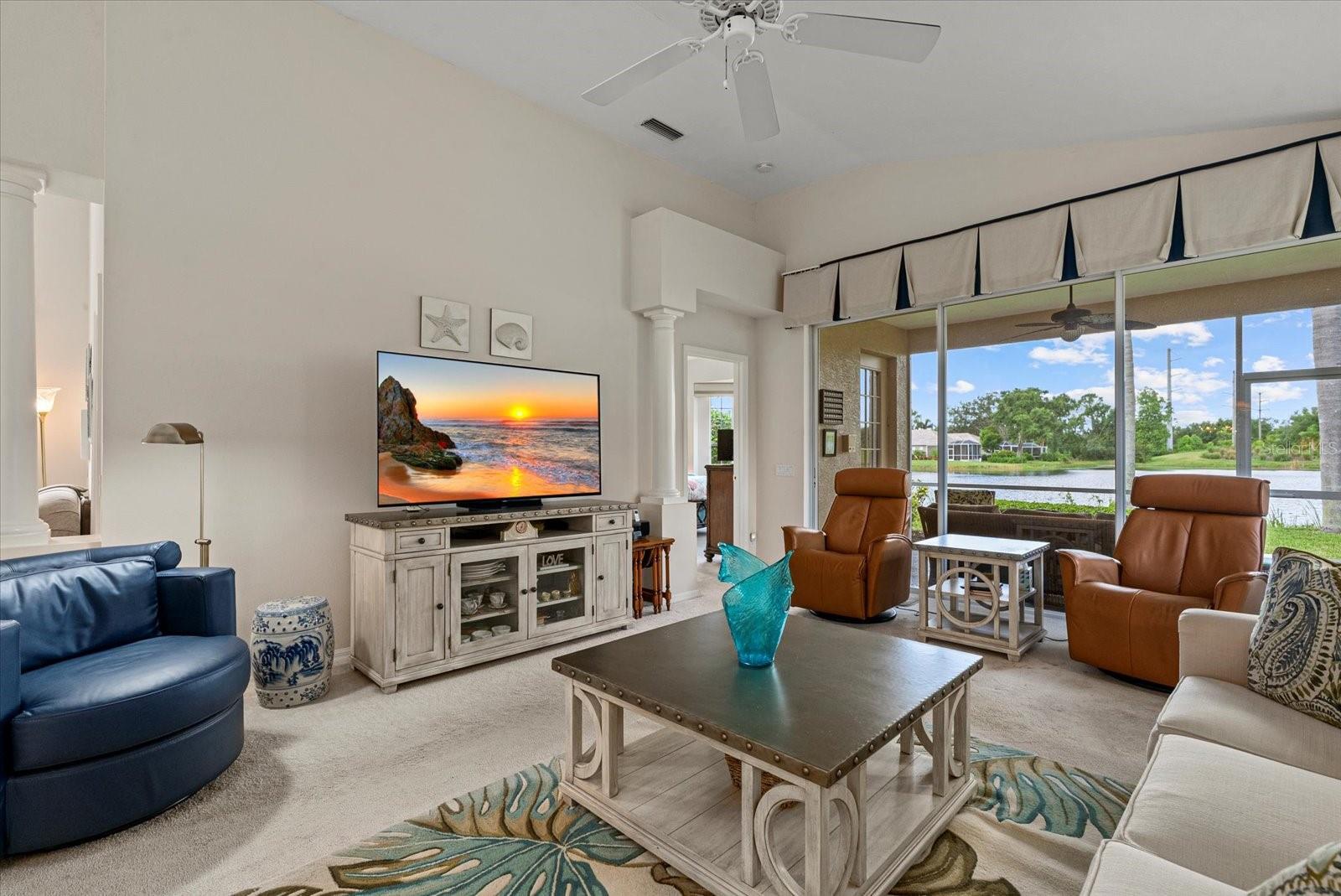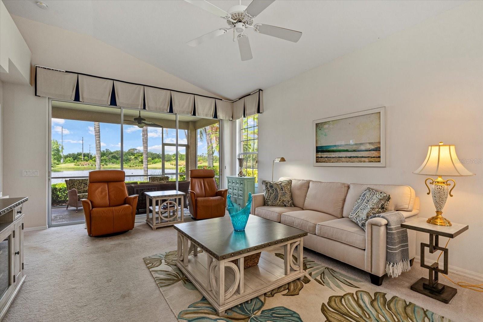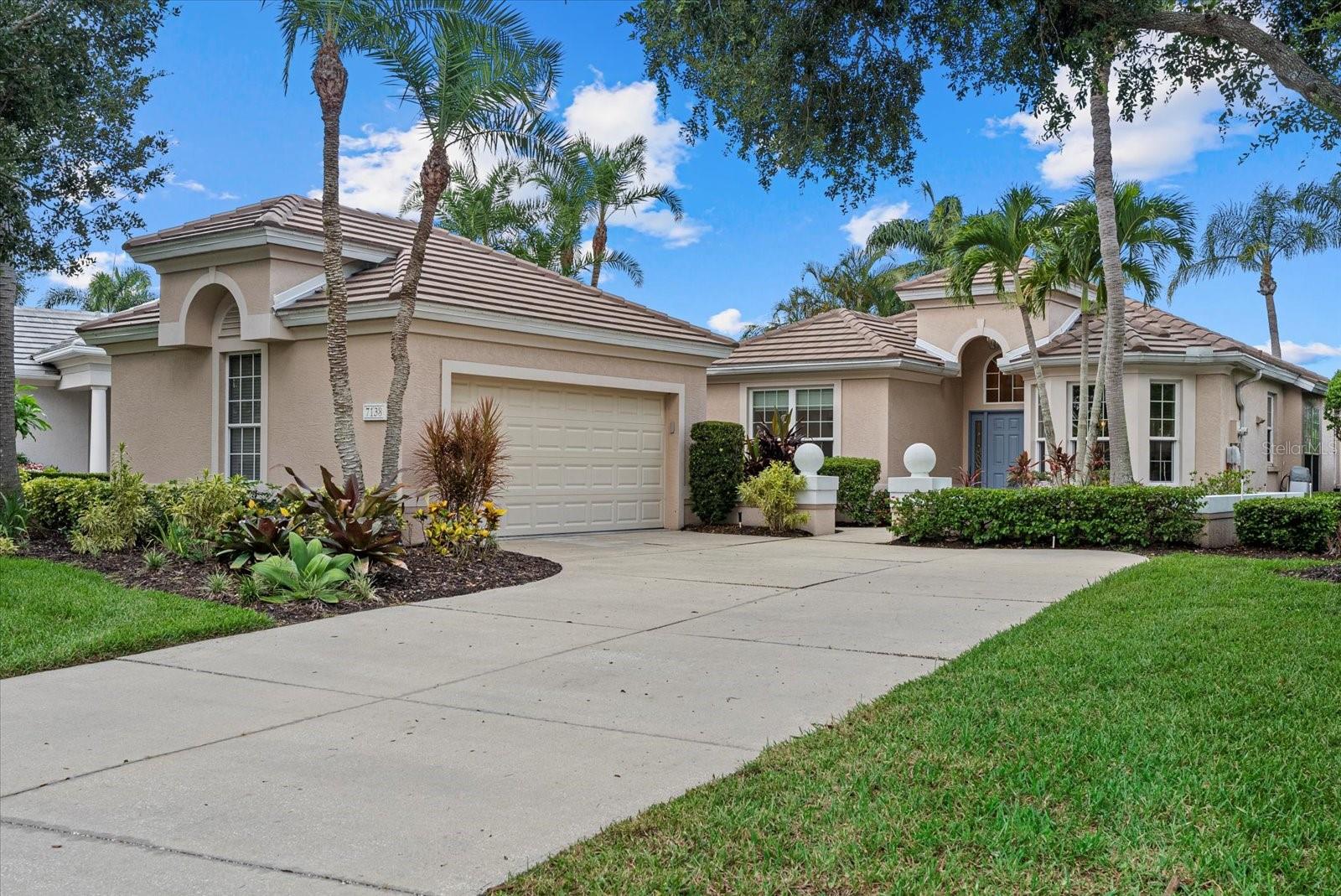 Experience the ultimate Florida lifestyle 2-bedroom plus den home featuring water views in the prestigious University Park Golf & Country Club. This sunny residence boasts a formal entry, soaring volume ceilings throughout, and a beautifully updated kitchen perfect for entertaining. The master suite offers a private sanctuary with en-suite bath and walk-in closet. The second bedroom and versatile den provide flexibility for guests or home office use. Enjoy breathtaking sunset views from the private screened-in patio overlooking the water, creating the perfect setting for relaxation and entertaining. Enhanced by a new roof installed in 2024, featuring a private garage for secure parking and storage. Located in the Notting Hill neighborhood, this home sits within a secure, gated community offering world-class amenities in University Park Golf & Country Club University Park community amenities including 27 holes of championship golf, 11 lighted Har-Tru tennis courts, pickleball, fitness center, first-class dining, lifestyle events and a community pool conveniently located right across the street. This exceptional property delivers resort-style living University Park Golf & Country Club offers several membership options, with a social membership being the minimum requirement. Conveniently located close to Sarasota-Bradenton International Airport, downtown Sarasota and many area pristine beaches.