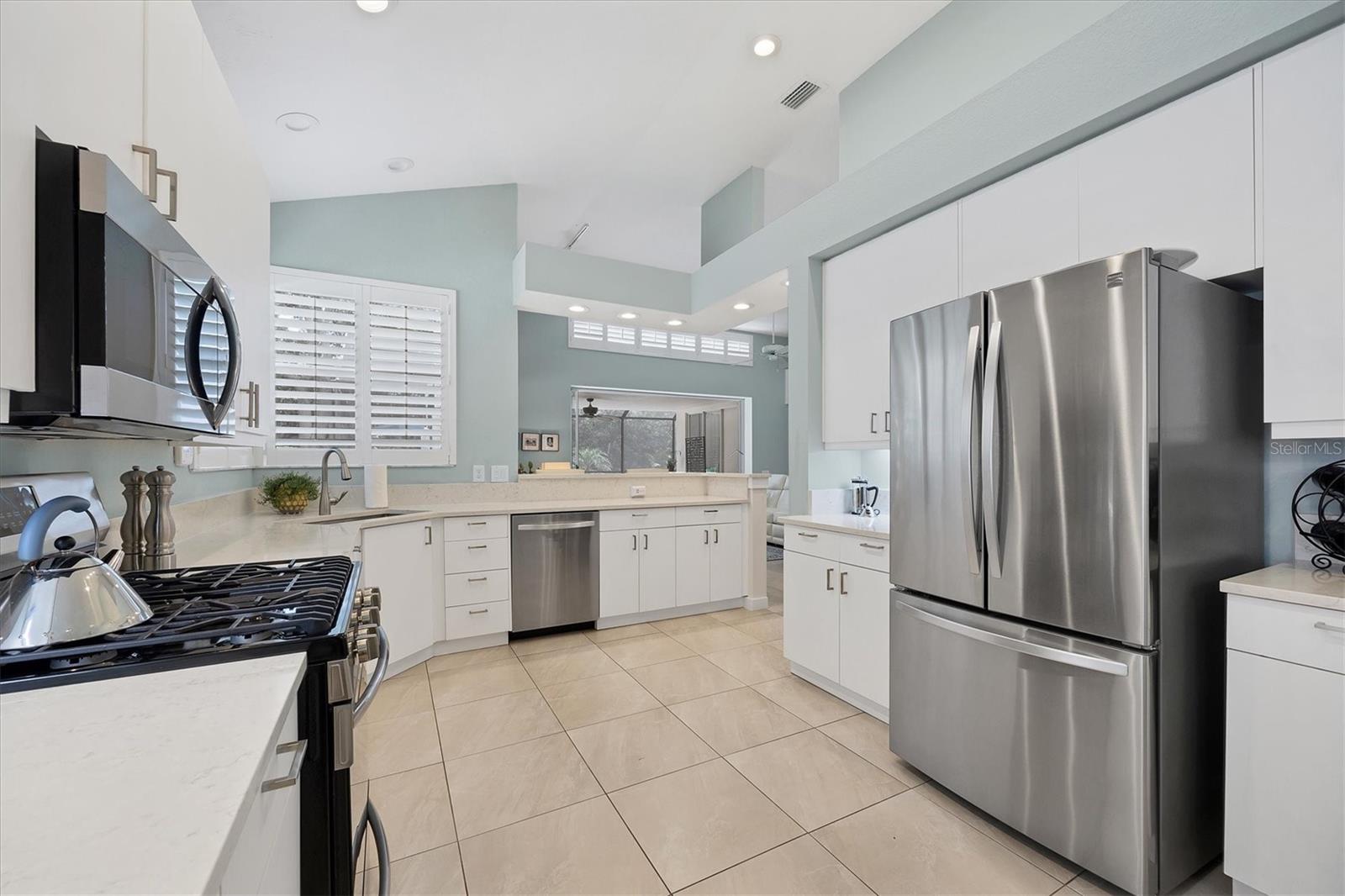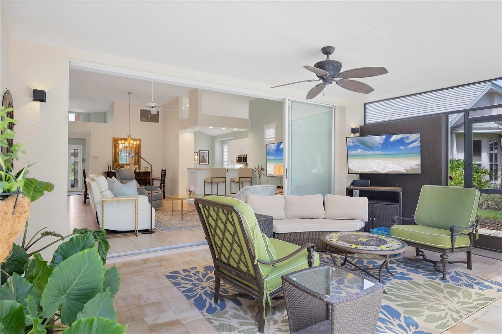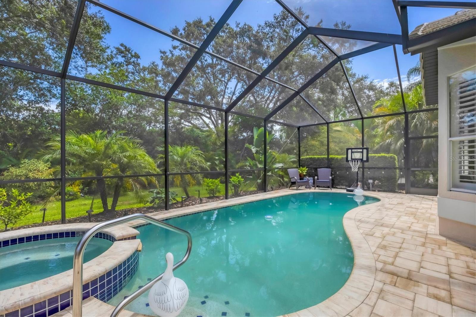 Welcome to this exquisite residence, perfectly nestled on a quiet cul-de-sac in the prestigious University Park. Designed for the buyer seeking a private, resort-style retreat, this home offers a seamless blend of sophistication, comfort, and maintenance-free living. This beautifully maintained home features an open-concept floor plan with a desirable split-bedroom layout that ensures privacy and spacious living. The grand open great room flows effortlessly onto the expansive screened lanai, creating an ideal space for both entertaining and peaceful outdoor relaxation. Step outside to your private caged, heated pool and spa, beautifully finished with Pebble Tec, offering a serene, resort-inspired experience. The outdoor retreat provides ample space for lounging, dining, and enjoying the Florida lifestyle. The chef’s kitchen is thoughtfully designed with granite countertops, under-cabinet LED lighting, and a bright breakfast nook surrounded by garden views. Recent updates include a new stove, refrigerator, and dishwasher, combining style and modern convenience. The owner’s suite is a true sanctuary, featuring oak flooring, a large custom walk-in closet, and a fully renovated bath with a new soaking tub, glass-enclosed shower, dual vanities, and tasteful designer finishes. The second bedroom, accented by French doors, is currently used as a light-filled office with two generous closets, offering versatility for a variety of needs. The additional guest suites are equally welcoming, with a renovated bath that features modern vanities and soft under-cabinet lighting. A dedicated utility room with a built-in sink and an adjacent oversized storage area provides excellent functionality and organization. Surrounded by lush, maintenance-free landscaping, this home offers a truly effortless lifestyle. A short walk leads to the exclusive Hampton Green community pool, where residents can relax or socialize in a tranquil setting. This exceptional property offers a rare opportunity to enjoy timeless elegance, complete privacy, and a relaxed, resort-inspired lifestyle. Location: University Park Country Club With its mature landscape and sprawling natural beauty, University Park is the premier master-planned community in the Sarasota area. Behind the secured, staffed entrance is an award-winning, resident-owned community featuring 27 holes of four-star rated golf, eleven lighted Har-Tru tennis courts, four pickleball courts, a fitness center, croquet, miles of tree-lined streets for walking or biking, and first-class dining. The community also offers numerous social activities and clubs designed to fit a variety of interests. Located just four miles from downtown Sarasota and its vibrant arts scene, museums, shopping, dining, and first-class healthcare, University Park provides an oasis from the city while keeping all its amenities within easy reach. A short 15-minute drive to the international airport and a 30-minute drive to some of America’s finest beaches, superb outdoor recreation areas—including the internationally renowned Nathan Benderson Park—the famed Ringling Museum, various boating options, and the acclaimed St. Armands Circle. Less than five minutes away from UTC luxury shopping and dining, University Park’s breathtaking beauty is unmatched by any other, offering a rare opportunity to own a home in one of Sarasota’s most coveted communities