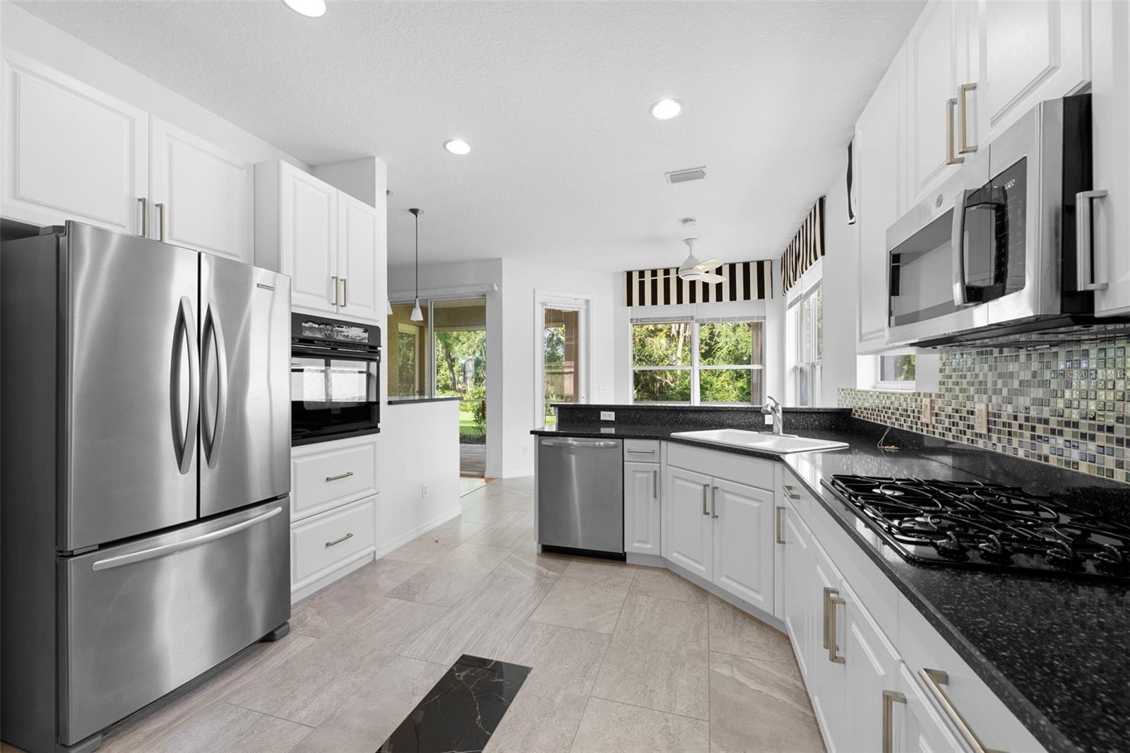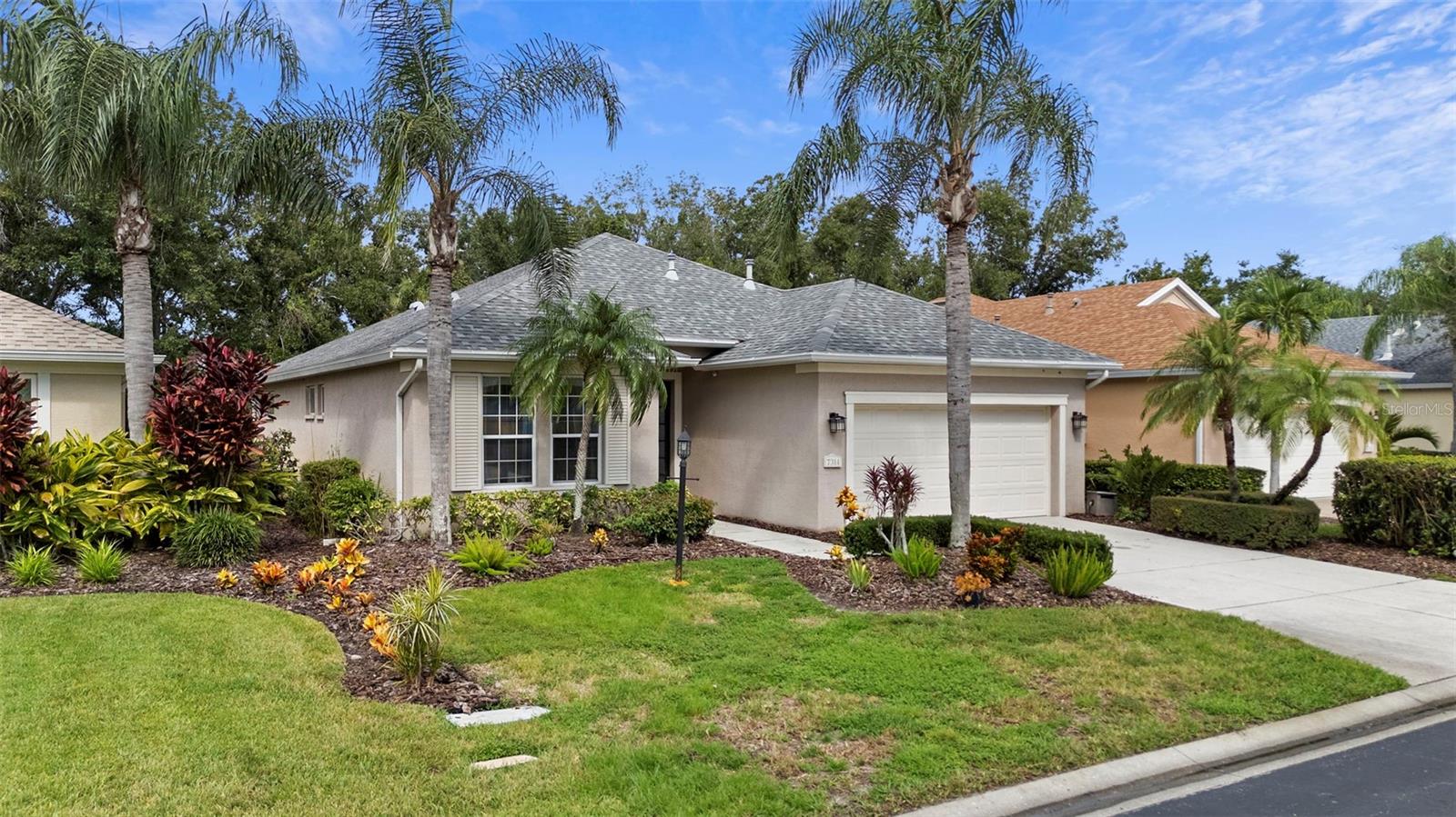 Step into this beautifully maintained 2-bedroom, 2-bath home where natural light and tranquil preserve views create an atmosphere of comfort and elegance. The kitchen will impress with its gas cooktop, sleek black quartz counters, and abundant storage, while the charming breakfast nook and extended lanai provide the perfect backdrop for enjoying peaceful mornings or entertaining guests. The spacious backyard, accented by mature Magnolia and Hong Kong Orchid trees, offers plenty of room to add a pool if desired. The primary suite is a serene retreat with inviting spaces and picturesque views, while the private guest wing includes a flexible second bedroom or den, a built-in office nook, and a full bath—ideal for visitors or working from home. Nestled within one of the most sought-after communities along the University Park corridor, residents enjoy gated entrances, winding streets lined with manicured landscaping, sparkling lakes with fountains, nature trails, and access to two community pools with fitness facilities, a summer kitchen, and playgrounds. Convenience is unmatched—walk or bike to nearby dining, Fresh Market, Starbucks, and more. This home combines comfort, style, and location for a lifestyle you’ll love.