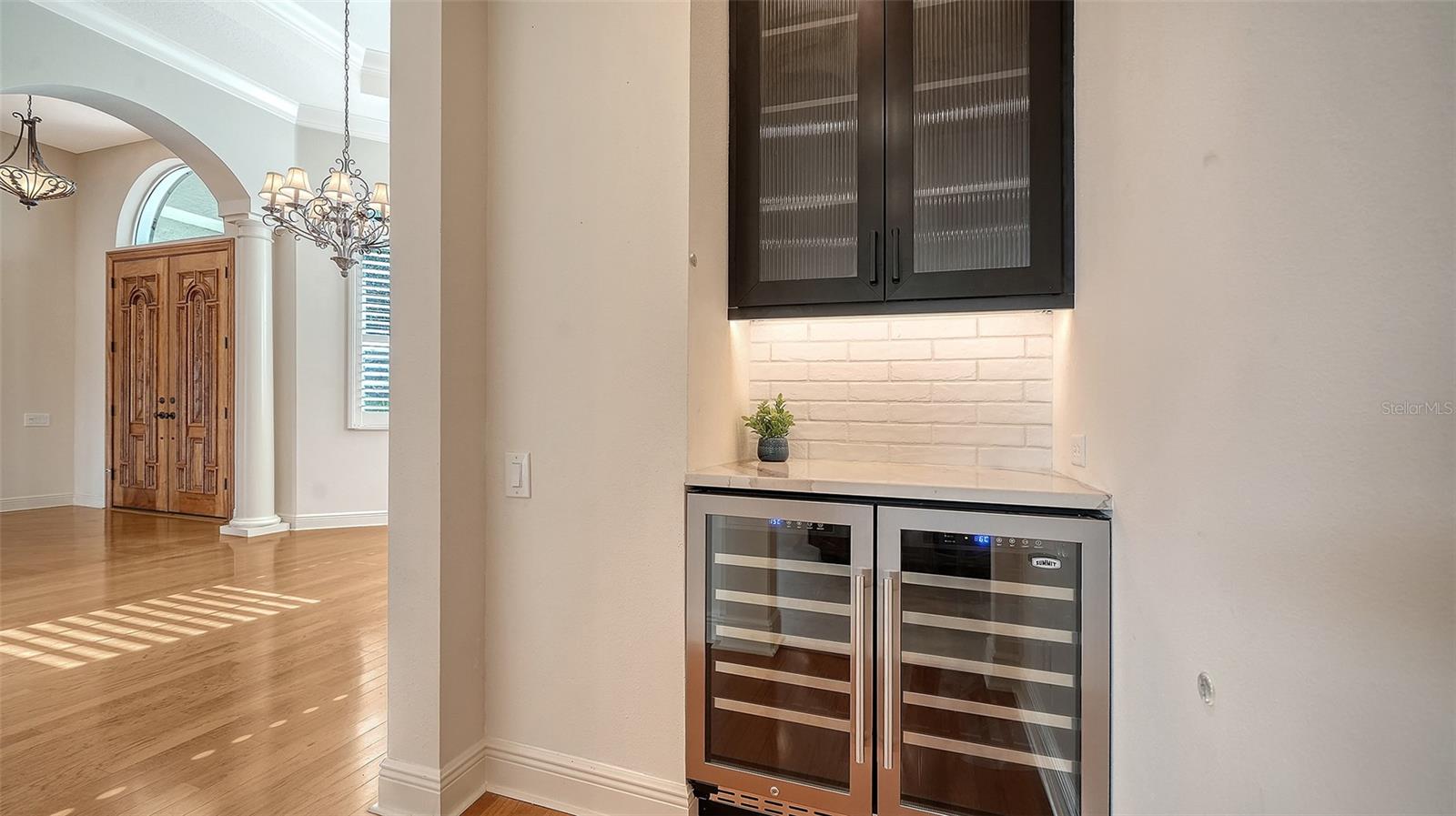LOCATION, LUXURY, AND LIFESTYLE. Set within the desirable and beautifully manicured community of University Park, this executive residence offers an impressive 3,851 sq ft of living space, on an exceptionally private preserve lot, a true sanctuary of peace and exclusivity. Custom-designed double wood entry doors welcome you into a bright, airy interior filled with natural light. The main living spaces have enriched wood flooring, crown moldings, custom built-ins, and a striking marble-surround fireplace which is perfect for cozy Florida winter evenings. The newly updated kitchen is a chef’s dream, featuring two built-in ovens, a 6-burner gas cooktop, custom two-tone cabinetry, quartz countertops, a stone tile backsplash, slate-topped center island, and top-of-the-line appliances. A large walk-in butler’s pantry provides exceptional additional storage. The kitchen’s updated design flows seamlessly into the spacious family room, highlighted by a custom-paneled feature wall and new tile flooring. Sliding doors open wide to the outdoor patio, extending the indoor living space, ideal for entertaining family and friends. The den/office offers additional custom built-ins and another set of sliders, filling the space with natural light and extending the living area onto a second covered outdoor retreat. The expansive custom pool area is fabulous, designed for both relaxation and effortless entertaining. Enjoy one of the largest pools in University Park, complemented by a spa, a waterfall, lush decorative plantings, paved flooring and two covered outdoor seating areas ideal for year-round enjoyment. The outdoor kitchen makes gatherings a delight, while hurricane shutters provide added peace of mind. Outside, a paved circular driveway leads to an oversized garage with impressive storage capacity and its own dedicated rear golf-cart access door. Continuing through the home the primary suite is a luxurious retreat complete with custom moldings, tray ceiling, bay-window sitting nook, custom built-ins, and two oversized walk-in closets custom fitted with dressers and exceptional storage. The spacious primary bath includes a walk-in shower, a separate soaking tub, and dual vanities. Having additional guest bedrooms thoughtfully located on the opposite side of the home for added privacy, are equally inviting. Each generously sized bedroom features charming bay-window sitting areas and convenient access to ensuite bathrooms. This home offers an array of features, including an impressive utility room with abundant cabinetry and dedicated folding space, a desk/office area, a dry bar with a double wine cooler, central vacuum system, ample storage, and an oversized double garage complete with fitted cabinetry as well as a separate golf-cart parking area with door. Major updates include a brand-new roof (2025), two A/C units (2018), 20kw whole house genterator (2024) and a hot water heater (2016), ensuring comfort and peace of mind. All of this is nestled in a community known for its lush landscaping, refined ambiance, and newly remodeled amenities to include the clubhouse, championship golf course and pro shop, restaurant with al fresco dining, tennis facilities, and fitness center. Perfectly positioned near shops, dining, sports venues, downtown Sarasota, and world-famous Gulf beaches, this home delivers an unmatched blend of privacy, elegance, and convenience. This home or community will not disappoint!