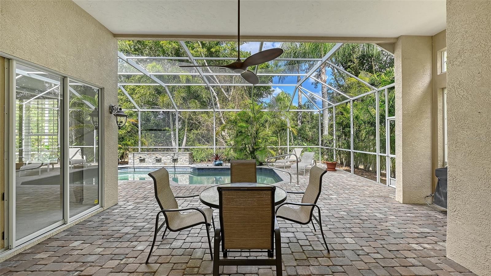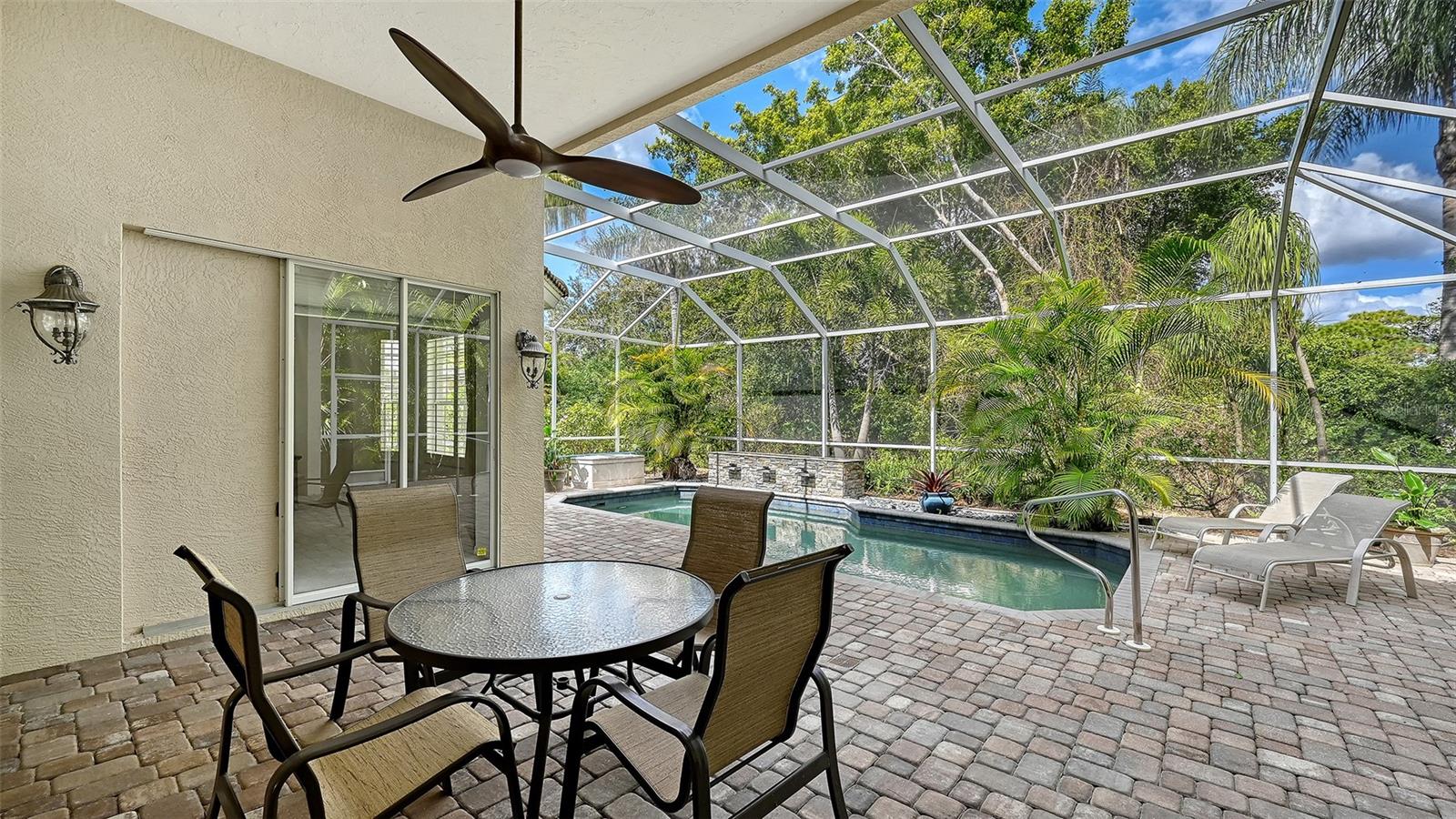 COMPLETE NEW HVAC with 12 year warranty 3/2026!! Experience the pinnacle of refined living in this exquisite corner home, nestled in a lush, tropical paradise within a exclusive country club enclave. This masterfully designed residence exudes opulence with soaring high ceilings, light filled rooms that flow effortlessly, creating an airy, elegant atmosphere. Outside your private salt water pool with a waterfall and a new pool pump, enveloped by tropical gardens, offers a serene resort-like retreat. Both sliders to the pool are full pocket sliders so your view is not encroached on in any way. Enjoy large windows, sun-drenched spaces and a lifestyle filled with relaxation. A complete new HVAC system just installed with a 12 year warranty, along with new pool pump, fresh landscaping with pavers installed on driveway. Immerse yourself in a lifestyle of unparalleled luxury, with top-tier amenities - including a fine dining restaurant - are just steps from your door. Located near I-75, UTC award winning mall, Benderson Park, and just about every convenient store is nearby! Downtown Sarasota and its beautiful beaches are minutes away. This is more than a home - it's a sanctuary for the discerning few!
