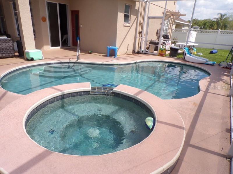 Price reduced, motivated seller, don't miss out on this gorgeous move in ready 5 bedroom, 4 bath home with office, a bonus room, 3 car garage. This 3490 sf home has so many amenities and is located on a quiet cul-de-sac secured by a private-gated community. As you enter the home you are greeted by the foyer and formal dining room with Brazilian hardwood flooring. To the left of the foyer you will find a large office, as you continue into the home toward the family room you will find two beautiful murals. The kitchen has 42" cabinets and granite counter tops. All kitchen appliances are less than a year old and are matching LG smart appliances. The large master suite has a jetted tub, double sinks and walk in double showers. Bedroom 1 and 2 share a jack and jill bathroom. Upstairs you will find a large bedroom, full bath and bonus room. The master and family room open out onto the large lanai and pool deck. The salt water pool, spa and water heater are powered by gas thus saving on your electric bill. Roof is approximately 4 years old, upstairs AC approximately 2 years old, downstairs AC is approximately 6 years old and well maintained. Schedule your tour today before it's gone.