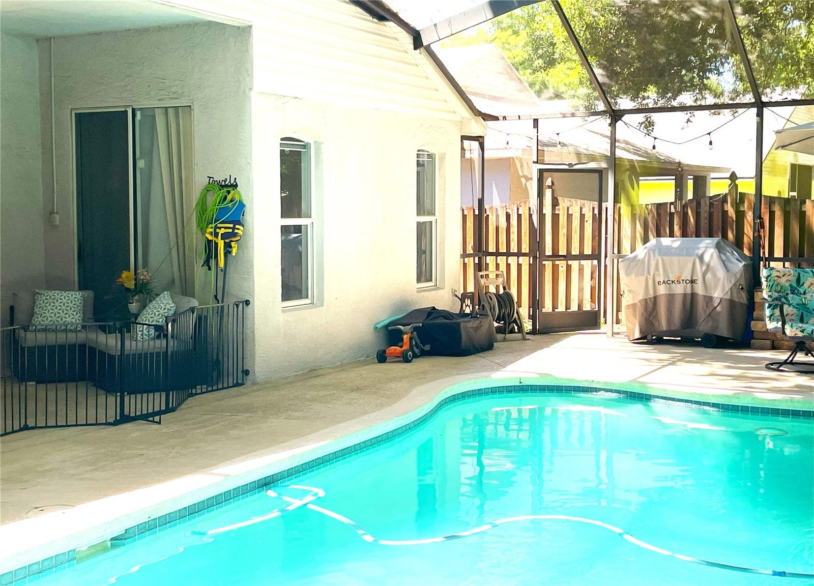 Welcome to this beautiful pool home featuring split bedrooms, large open kitchen with eat in breakfast area, and a large family area with vaulted ceilings. The open kitchen offers stainless steel appliances, and an island with extra storage. The roof was replaced in 2019, as well as the hot water heater. Enjoy lounging around the beautiful enclosed pool (featuring a waterfall) or maybe take a walk around Twin Lakes beautiful lakes. You could even walk just across the street to a lovely serene park with large trees providing plenty of shade for little ones to run and play around on the playground. All this is in the highly sought-after Twin Lakes Community of Valrico, Florida. Twin Lakes offers a variety of amenities from a guarded front gate, a park with a playground, a community pool, two lakes, and basketball and tennis courts. If you are looking for tranquil or active this community fits your needs. Near River Hills Golf Course.