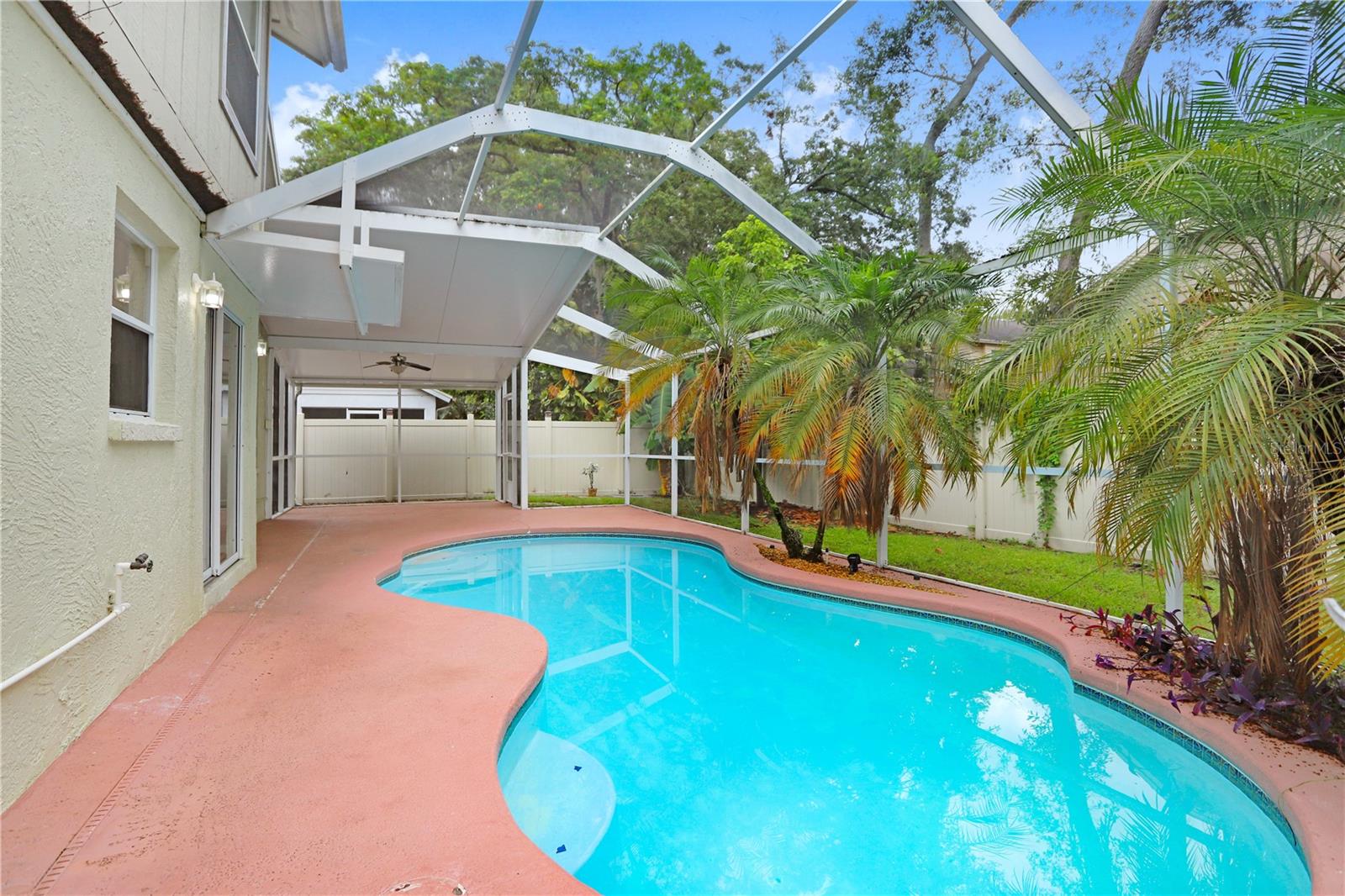 NO CDD, Optional HOA and OWNER MOTIVATED!!! Welcome to this charming home in the highly sought-after Bloomingdale community! This spacious residence boasts four bedrooms and two and a half bathrooms, offering ample space for comfortable living. The owner's suite is a true retreat, featuring an ensuite bathroom with dual vanities, a luxurious soaking tub, a stand-up shower, and elegant granite countertops. Step into the formal living room and dining room, perfect for hosting guests and creating cherished memories. The family room, located just off the kitchen, provides a cozy space for relaxation and everyday living. The kitchen is equipped with a brand-new microwave, range, and refrigerator. Sliding doors from the family room lead you to a backyard with a pool and a covered lanai, offering plenty of room for entertaining and enjoying the Florida sunshine.The property is surrounded by vinyl fencing on the sides and back, providing privacy and a secure space for outdoor activities. The home also features a roof with solar panels, contributing to energy efficiency and cost savings. Located in the Bloomingdale neighborhood, this home is part of a vibrant community with excellent schools, nearby shopping, and dining options. The beautiful tree-lined street adds to the charm and appeal of this residence. While the home needs some loving touches to make it truly yours, it presents a fantastic opportunity to create your dream living space. Don't miss the chance to own this delightful home in Bloomingdale – where convenience, comfort, and community come together!