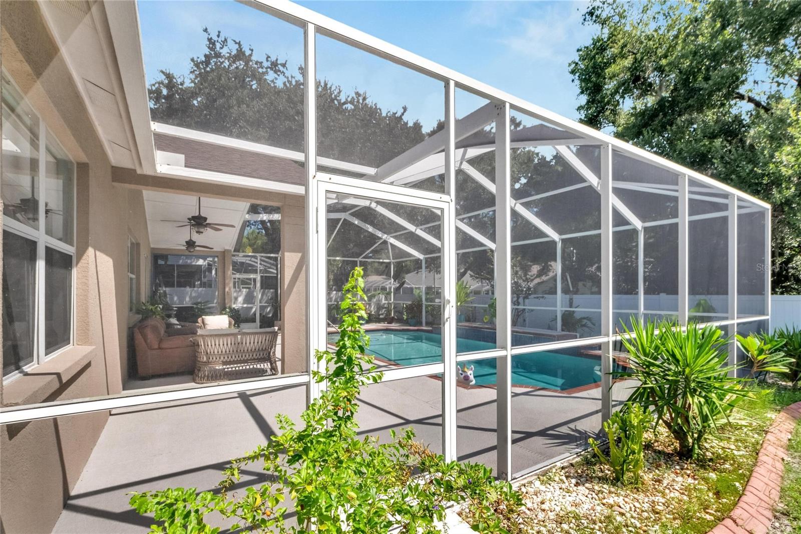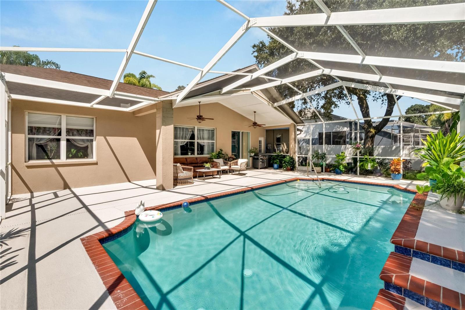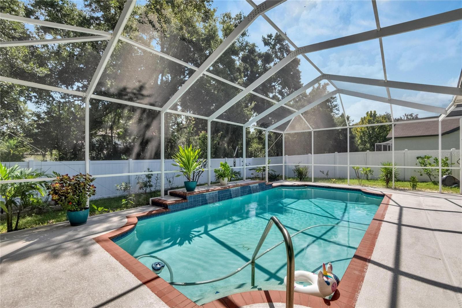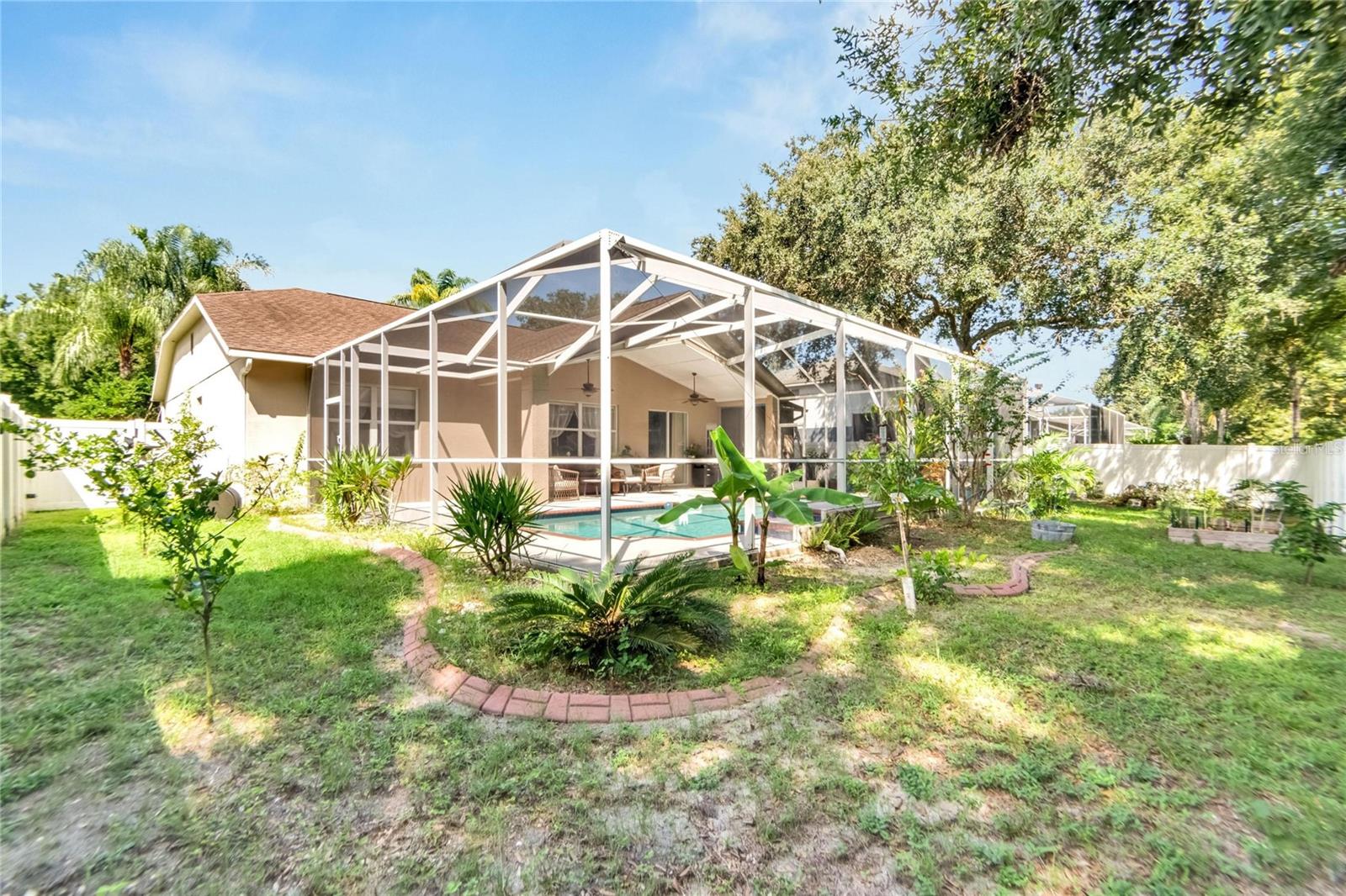 Get ready to fall in love with this stunning pool home in South Valrico, complete with a heated pool! Tucked away on a quiet street in the lovely Lithia Ridge neighborhood, this property welcomes you through an impressive arched entry. Inside, you’ll be greeted by high ceilings and a spacious open layout that flows beautifully from one area to the next. To your left, you’ll find a formal dining room, while to the right is a cozy formal living room. The heart of the home is the gorgeous kitchen, featuring granite countertops, tall custom cabinets for ample storage, stainless steel appliances, and a central island. The eating nook opens to the pool area through sliding doors, making it perfect for indoor-outdoor living. The kitchen overlooks a large great room, providing a lovely view of the sparkling pool. The well-designed split-bedroom layout ensures privacy, with each bedroom equipped with ceiling fans. The luxurious owner’s retreat is a true sanctuary, complete with a spacious walk-in closet and an ensuite bathroom featuring a stylish open walk-in shower and dual sink vanity. Step outside to discover your private oasis, featuring a heated swimming pool and a generous screened lanai—ideal for entertaining or simply unwinding in your freshly painted, fully fenced backyard. For gardening enthusiasts, the property boasts a variety of exotic fruits, including lemons, oranges, and passion fruit! Plus, the furniture is available for sale, making it easy to move right in. Lithia Ridge is a delightful community that offers access to top-rated schools and a very low HOA. You’ll also be just a short drive from fantastic shopping and dining options, with an easy commute to downtown Tampa. Don’t miss the opportunity to see this incredible home today! TWO MONTHS OF FREE LAWN CARE!