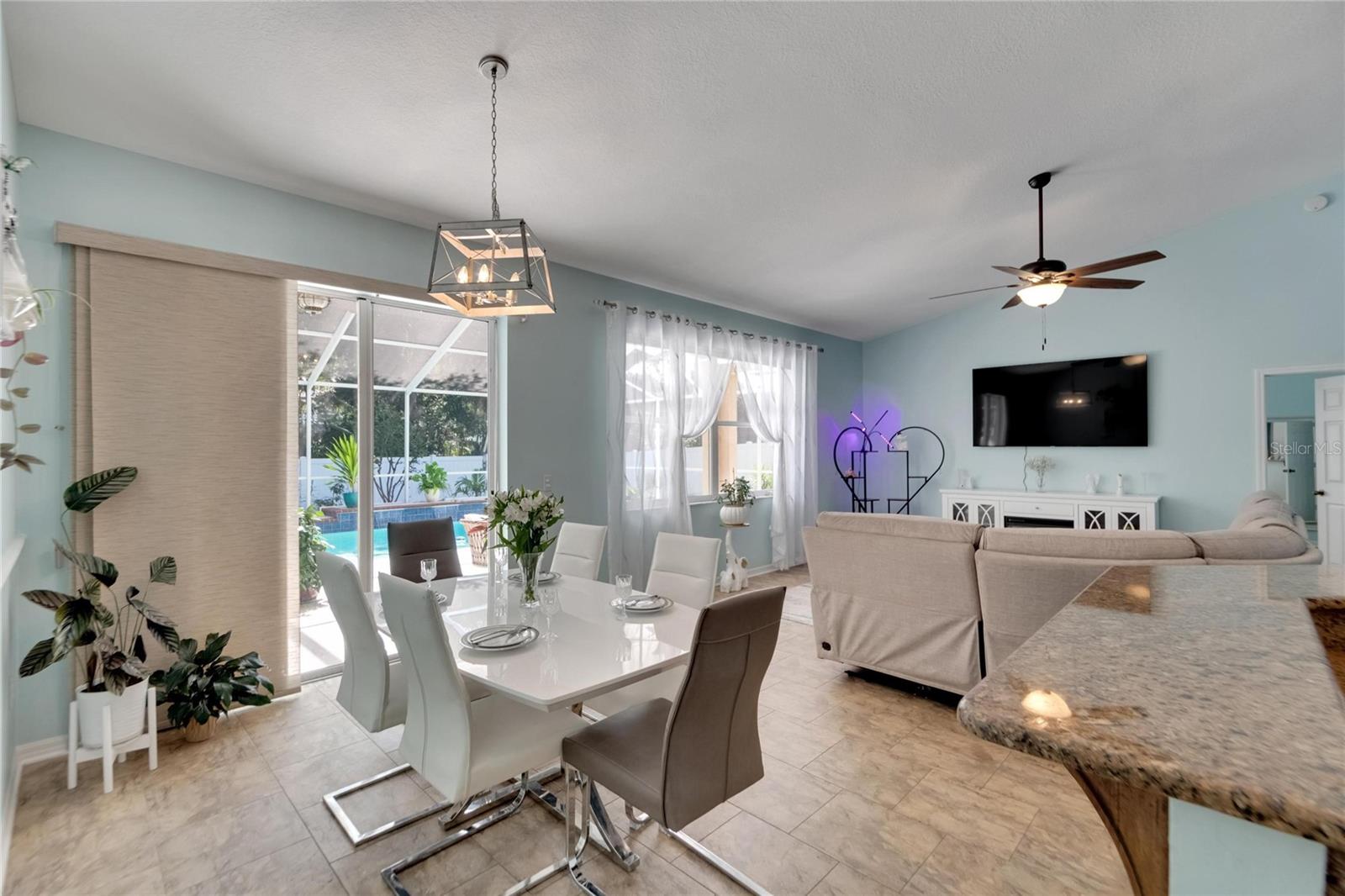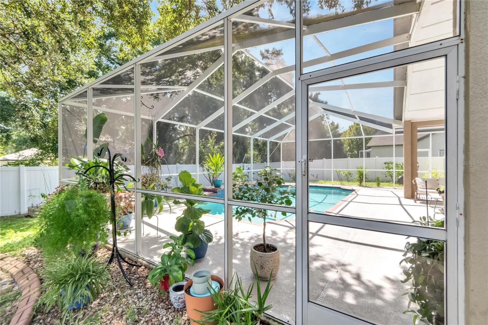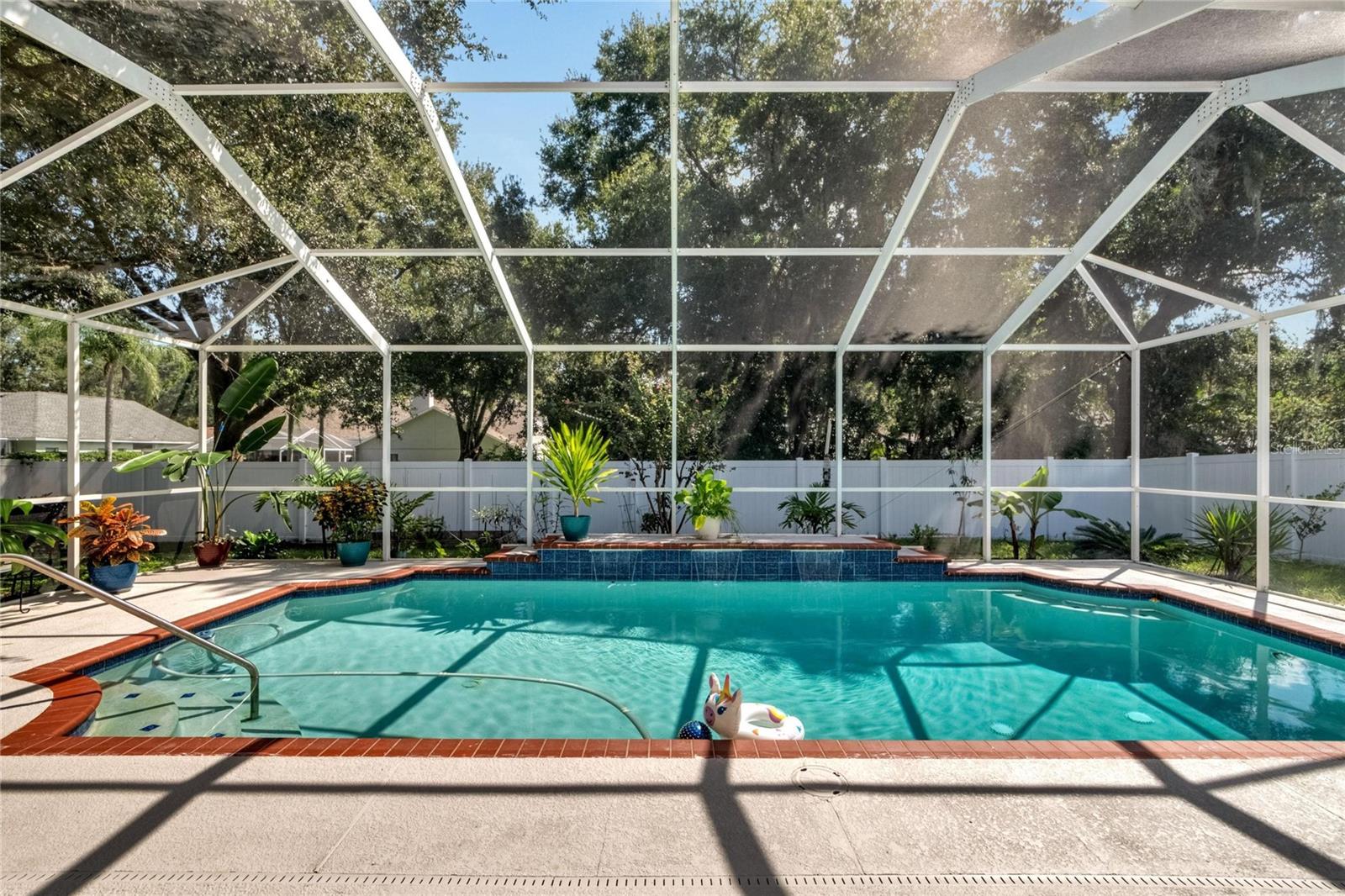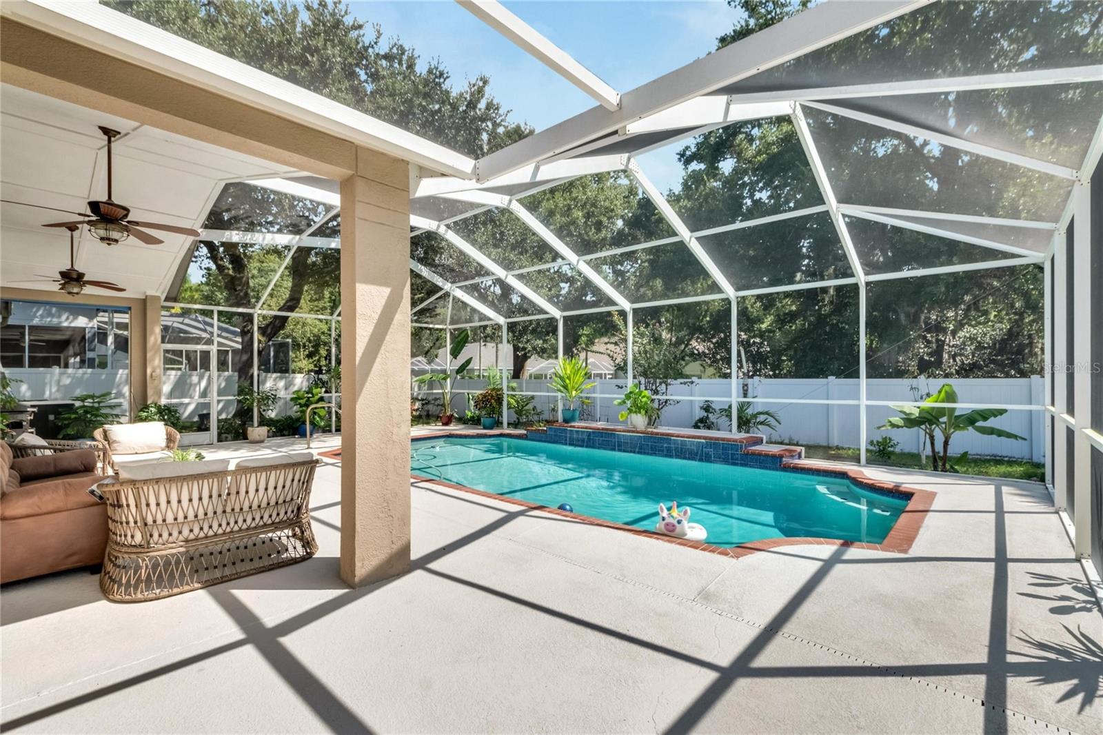 Get ready to fall in love with this stunning pool home in South Valrico, complete with a heated pool! Tucked away on a quiet street in the lovely Lithia Ridge neighborhood, this property welcomes you through an impressive arched entry. Inside, you’ll be greeted by high ceilings and a spacious open layout that flows beautifully from one area to the next. To your left, you’ll find a formal dining room, while to the right is a cozy formal living room. The heart of the home is the gorgeous kitchen, featuring granite countertops, tall custom cabinets for ample storage, stainless steel appliances, and a central island. The eating nook opens to the pool area through sliding doors, making it perfect for indoor-outdoor living. The kitchen overlooks a large great room, providing a lovely view of the sparkling pool. The well-designed split-bedroom layout ensures privacy, with each bedroom equipped with ceiling fans. The luxurious owner’s retreat is a true sanctuary, complete with a spacious walk-in closet and an ensuite bathroom featuring a stylish open walk-in shower and dual sink vanity. Step outside to discover your private oasis, featuring a heated swimming pool and a generous screened lanai—ideal for entertaining or simply unwinding in your freshly painted, fully fenced backyard. For gardening enthusiasts, the property boasts a variety of exotic fruits, including lemons, oranges, and passion fruit! Plus, the furniture is available for sale, making it easy to move right in. Lithia Ridge is a delightful community that offers access to top-rated schools and a very low HOA. You’ll also be just a short drive from fantastic shopping and dining options, with an easy commute to downtown Tampa. Don’t miss the opportunity to see this incredible home today! TWO MONTHS OF FREE LAWN CARE!