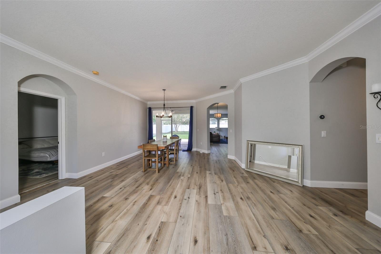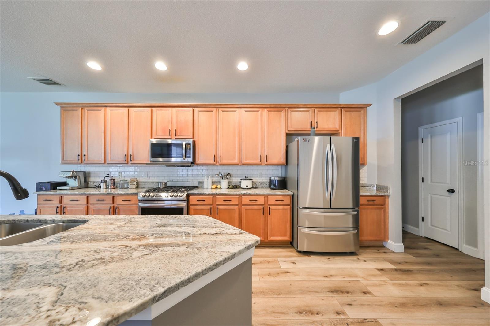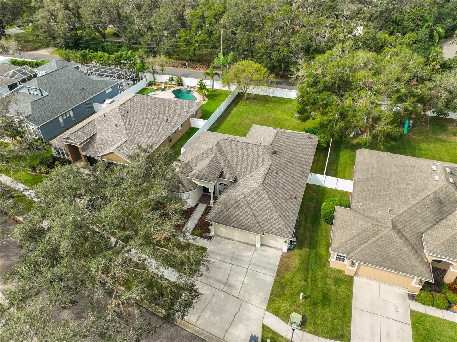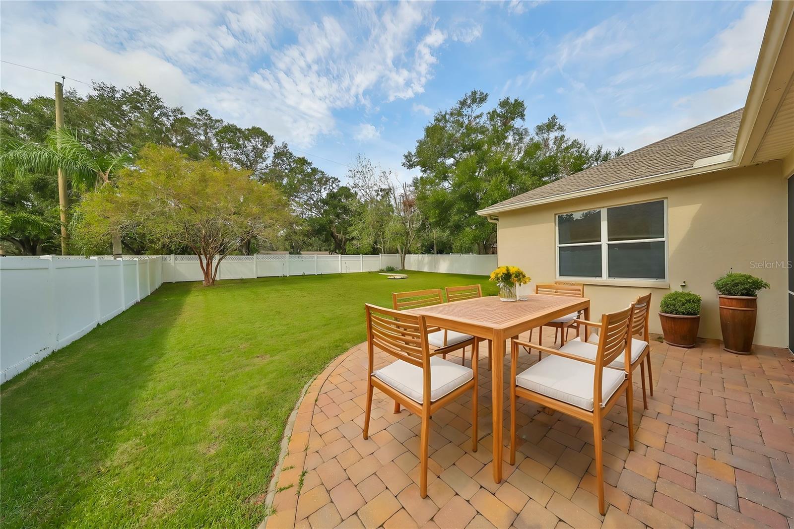 Welcome to your dream home! This home had no damage to recent hurricanes!!! This stunning home sits at the end of a quiet cul-de-sac with no neighbors behind, offering you ultimate peace and privacy. As you step inside, you'll be captivated by its bright, open, and airy layout. The split-bedroom floor plan ensures extra privacy, while new luxury vinyl flooring and baseboards in the main areas create a striking, easy-to-maintain look. The kitchen is a chef's delight, featuring 42? maple cabinetry, granite countertops, stainless steel appliances, a stylish subway tile backsplash, gas range, and a large island with open flow. Your spacious master suite offers a relaxing large walk-in shower, a large soaking tub, and dual closets for ample storage. This home features several updates including, roof installed in 2020, attractive front landscaping, huge sprawling backyard ready for entertaining, pets, or even a custom pool, this home truly has it all. Enjoy the screened patio as an inviting year-round extension of your living space. Don't miss out on the chance to make this home your own? Come see it today! Some of the pictures have been virtually staged.
