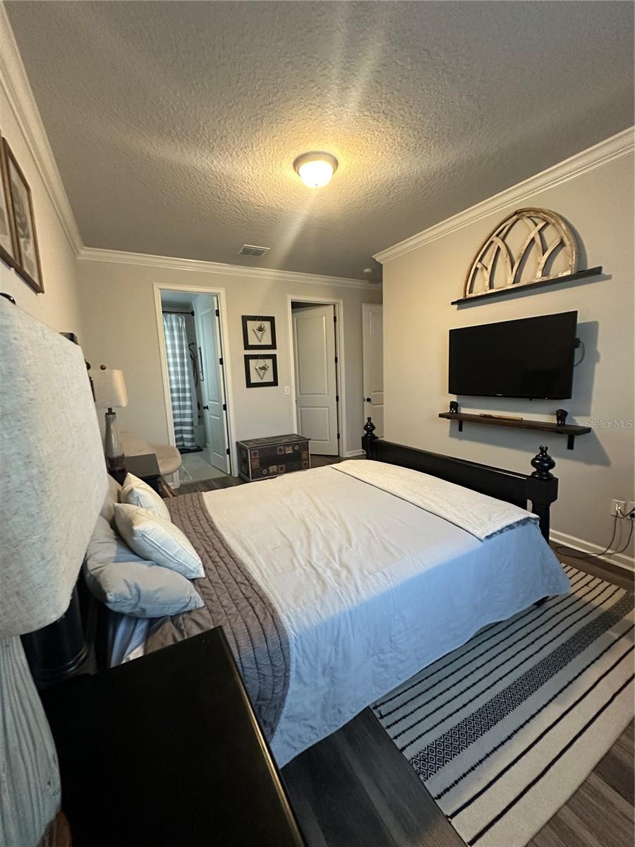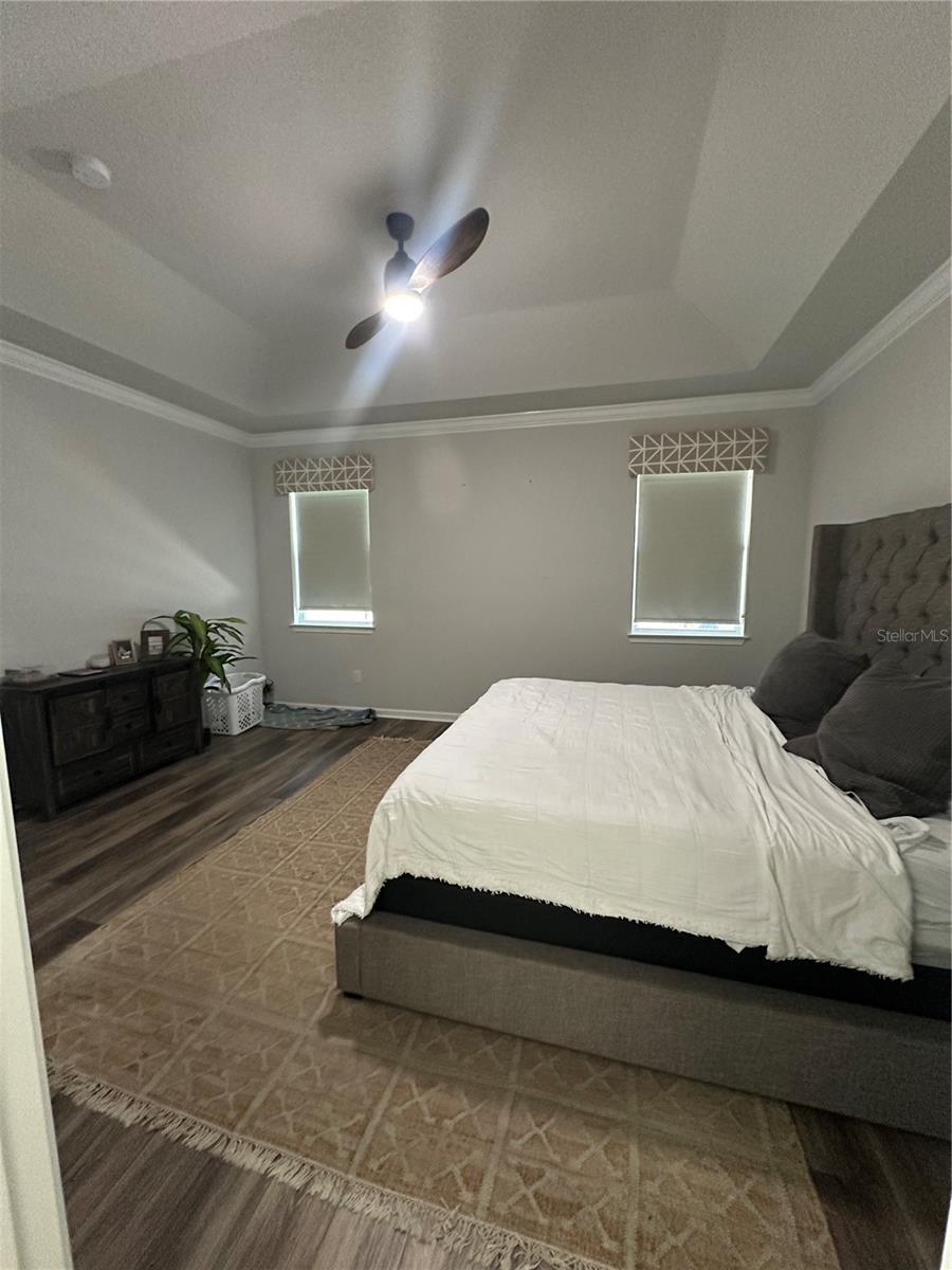 Welcome to this stunning 4-bedroom, 3-bathroom luxury home with a den/study—a true gem for those seeking elegance and comfort. From the moment you step inside, you’ll be captivated by the seamless blend of sophistication and modern design. This home is truly a must-see, offering years of comfort and style. Upon entering, you're greeted by a grand foyer that opens into expansive living areas, including an oversized open concept gathering room adorned with stylish accent walls and crown molding throughout the home, adding a refined touch to every room. A custom stone features wall serves as a striking focal point for the TV area, elevating the living room's aesthetic. Luxury vinyl plank flooring flows throughout the home, complemented by ceramic tiles in the bathrooms and laundry room, adding both beauty and functionality. Elegant window treatments and custom valances further enhance the home’s charm. The den/study provides a bright, welcoming space with abundant natural light—ideal for a home office or quiet retreat. The chef-inspired kitchen is a standout feature, boasting a spacious center island with a large, single-bowl sink, 42-inch soft-close cabinets with convenient slide-out drawers, gleaming quartz countertops, and a custom backsplash. Equipped with top-of-the-line stainless steel appliances—including a microwave, dishwasher, glass-top range, and a large walk-in pantry—this kitchen is perfect for culinary enthusiasts. The open eat-in kitchen is a warm and inviting space for family gatherings, and from here, you can enjoy your morning coffee while overlooking the serene waterfall pool. The three sets of sliding glass doors seamlessly connect to Lanai, creating an ideal space for entertaining. The home features a thoughtfully designed split bedroom layout, ensuring privacy and tranquility for everyone. The luxurious primary suite offers a high tray ceiling, plenty of natural light, and a spacious retreat to unwind. The en-suite bath features dual sinks, a soaking garden tub, a separate walk-in shower, and an oversized closet—your personal sanctuary. Secondary bedrooms are generously sized and include walk-in closets, providing ample storage space. On the opposite side of the home, guest bedroom with bathroom and walk-in closet for added comfort and privacy. Step outside to your own private paradise. The open floor plan flows effortlessly onto the screened paver lanai, featuring three sets of triple sliders doors that allow for easy indoor-outdoor living. Whether you're grilling, dining, or relaxing, the covered lanai with the soothing sound of the waterfall and the sparkling pool promises endless enjoyment. The fully fenced yard offers a private and secure space for outdoor activities. This home also includes a convenient indoor laundry room with a sink, washer, and dryer, as well as a 2-car garage with extra storage space. Enjoy the added convenience of smart home technology, including a video doorbell and a built-in home vacuum closet. Additionally, the home is equipped with energy-efficient solar panels, helping to reduce your energy costs. Located in the highly sought-after Valrico area, this home is just minutes away from shopping, dining, and major highways. Low HOA/No CDD. Don’t miss the opportunity to make this exquisite property your forever home. Schedule your showing today!