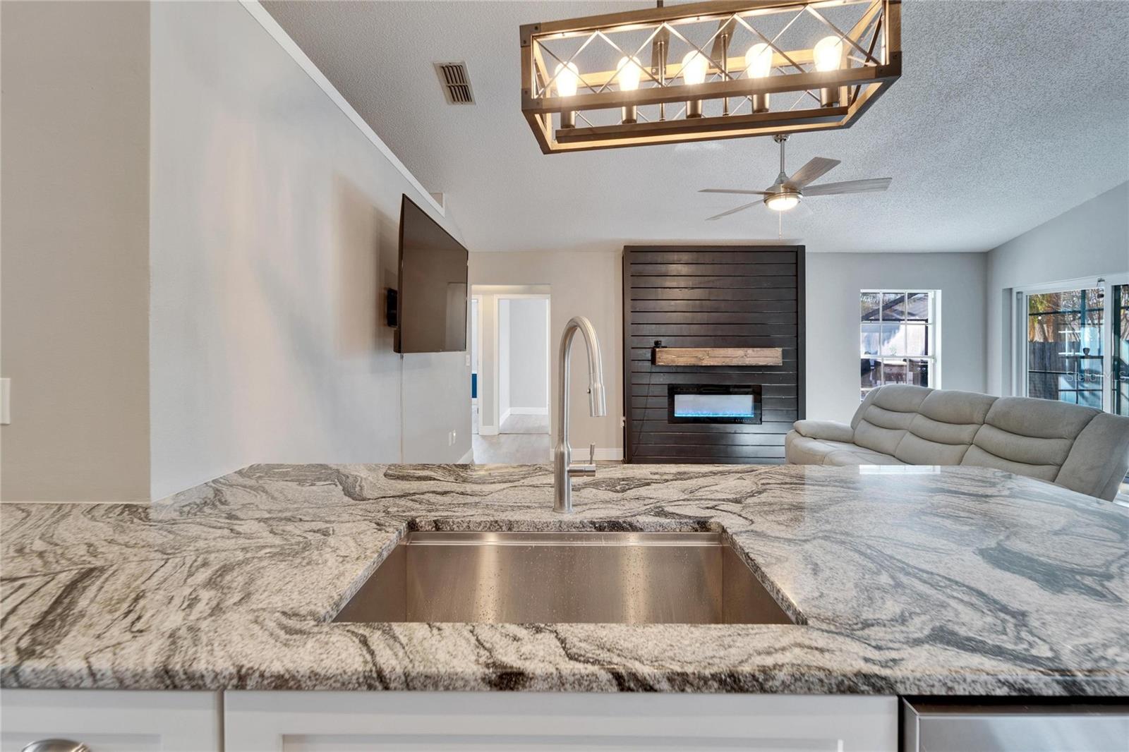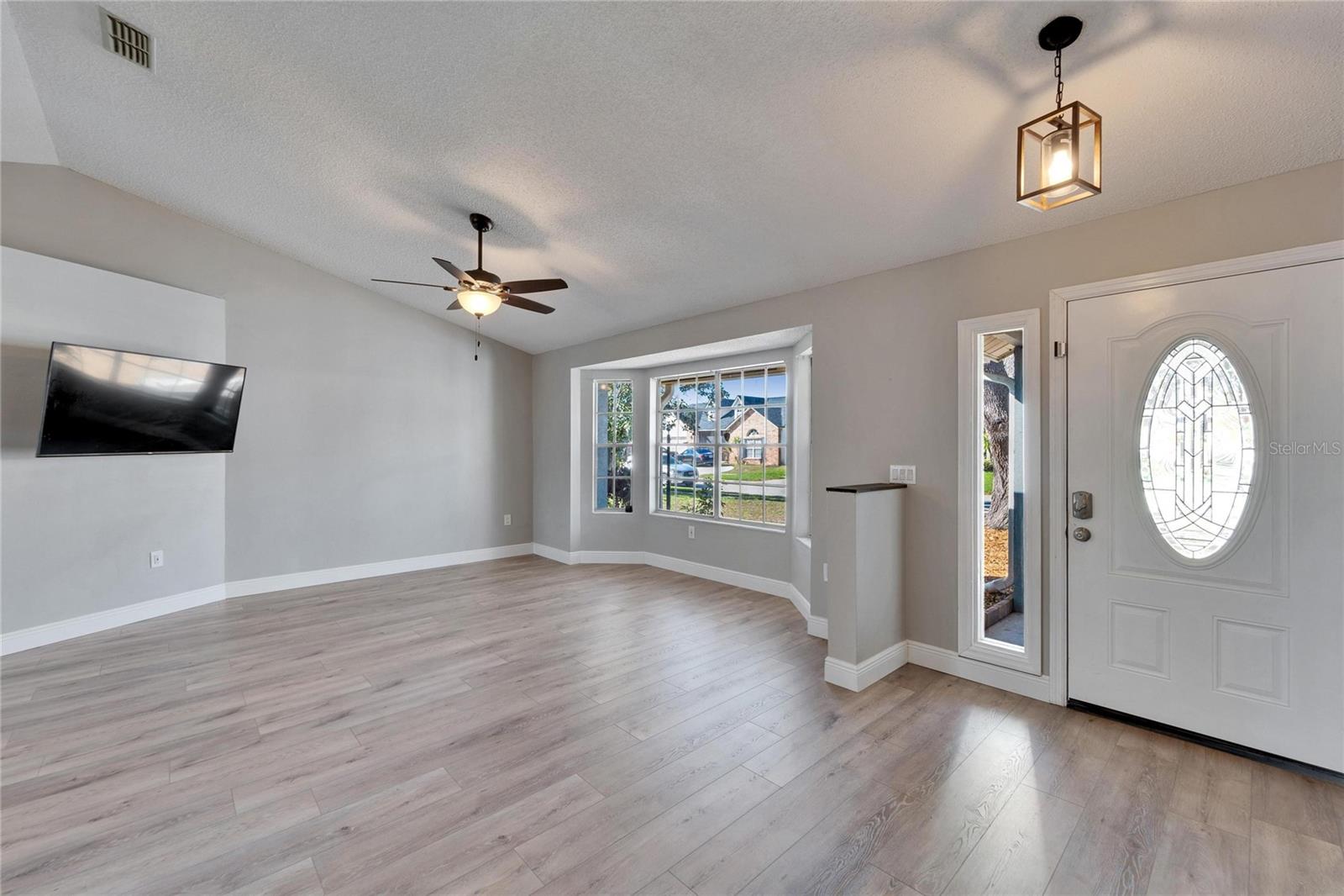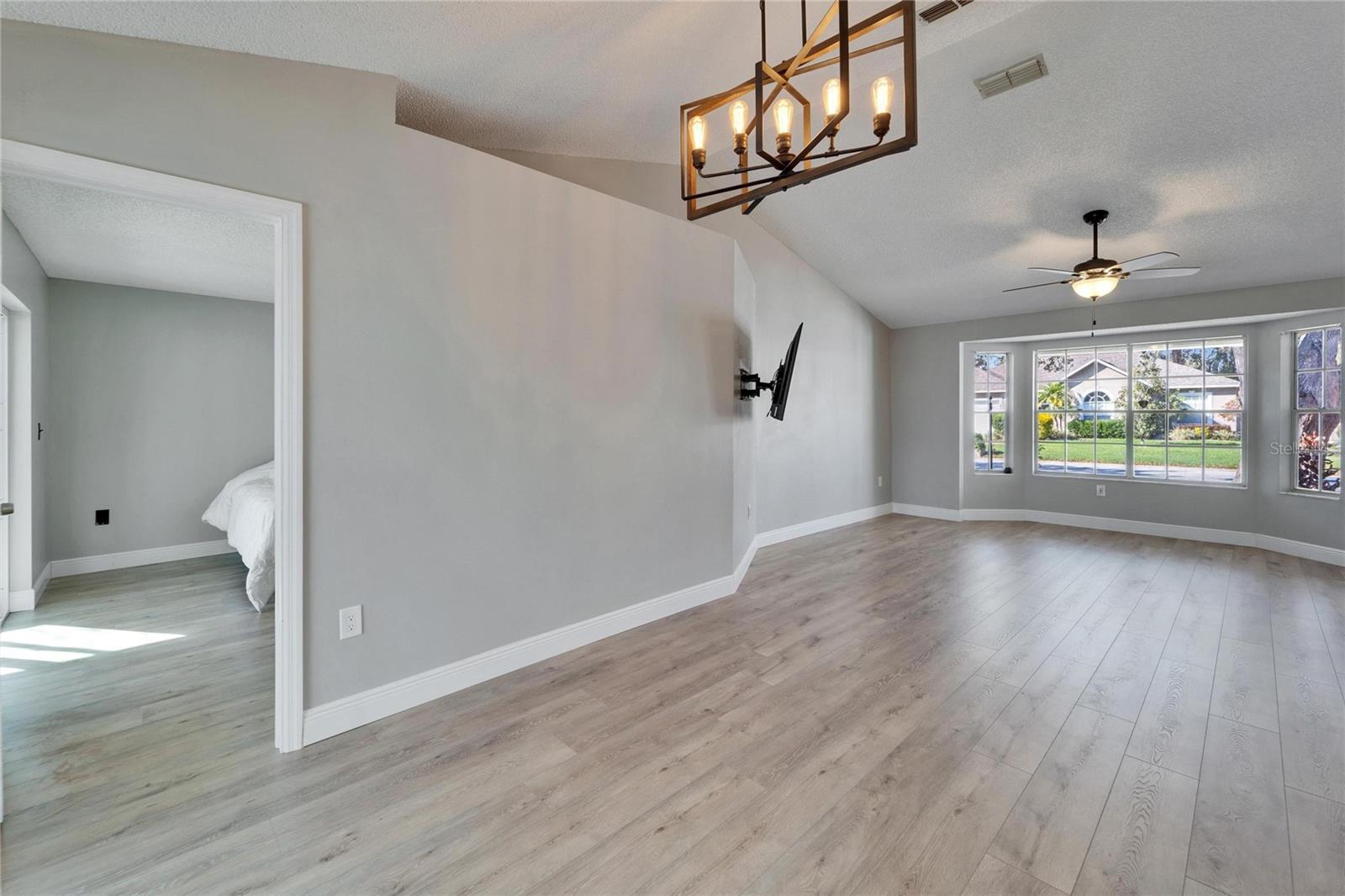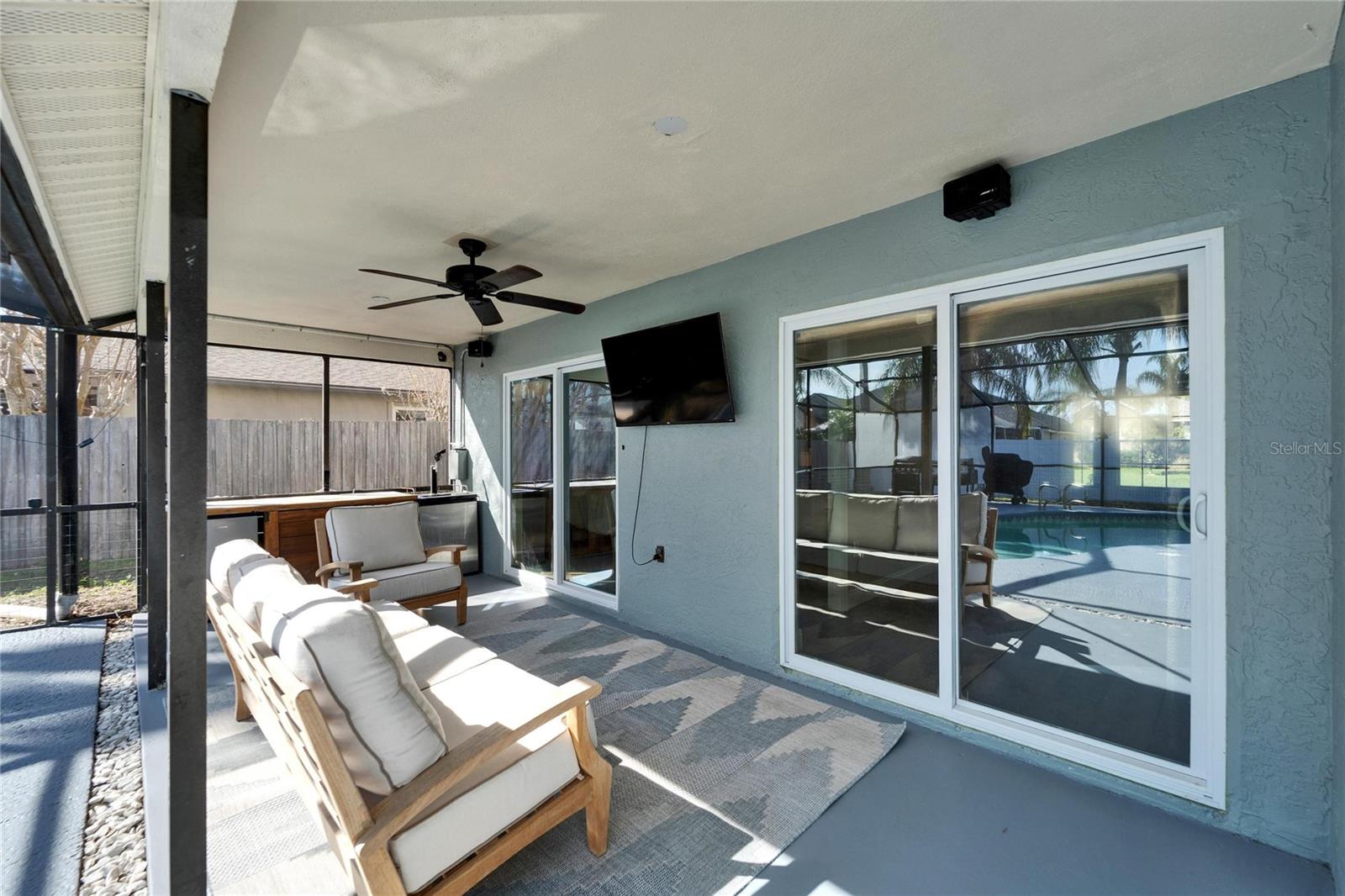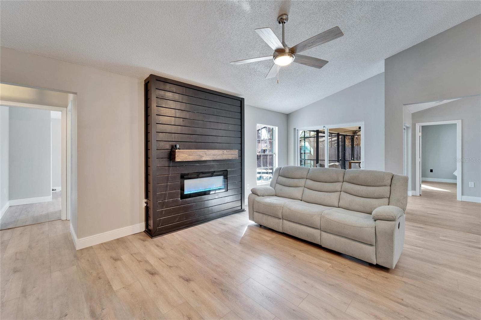 Welcome to this stunning 4-bedroom, 2-bathroom pool home in the heart of Bloomingdale! As you step inside, you'll be greeted by a spacious, open-concept living room and kitchen combo perfect for entertaining. The beautifully designed kitchen boasts crisp white cabinets, sleek granite countertops, a large island with bar seating, stainless steel appliances, and a modern backsplash. Throughout the home, enjoy brand-new laminate flooring and baseboards that add a fresh, contemporary touch to every room. The screened-in, covered saltwater pool is the perfect place to unwind, and the freshly painted pool deck includes a mini refrigerator and ample space for outdoor entertaining. All mounted TV's are included for the new owner. The oversized backyard is your private retreat, featuring a peaceful waterfall pond and a cozy sitting area ready for a fire pit. Inside, the home is freshly painted, and with a new AC system (2022) and a roof that's only 5 years old, you can move in with peace of mind. Located in an A-rated school zone, this home offers the convenience of an optional HOA and no CDD fees. Don’t miss your chance to own this beautiful property!