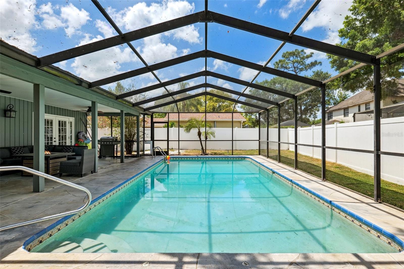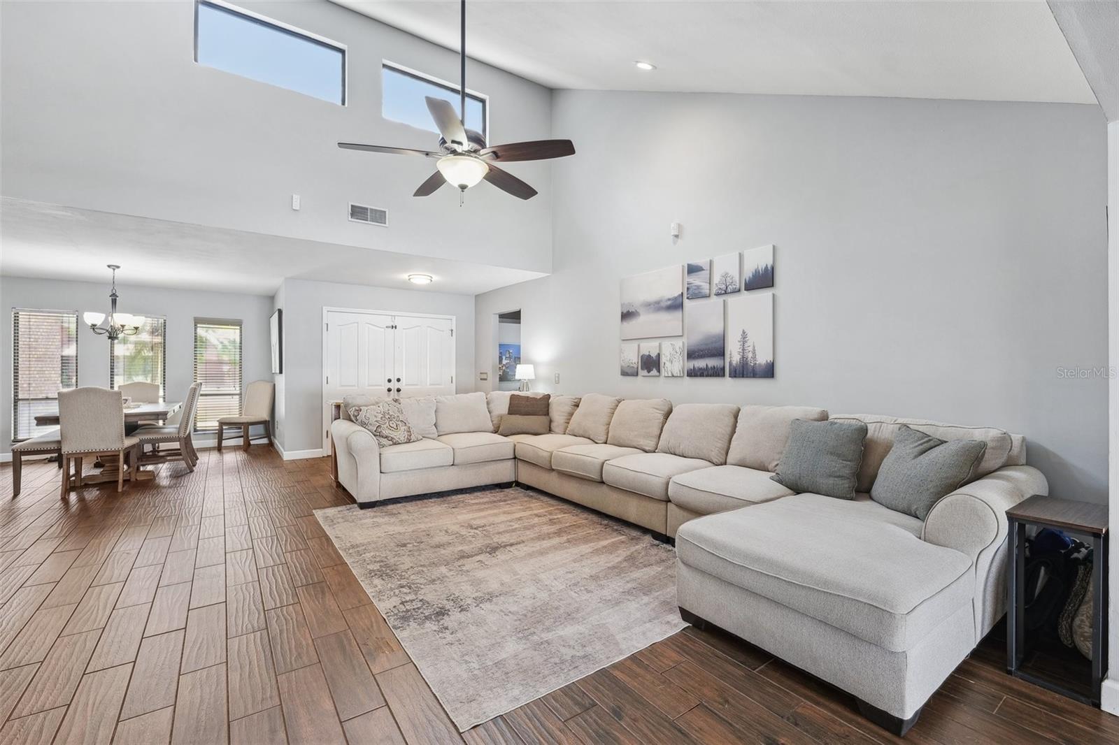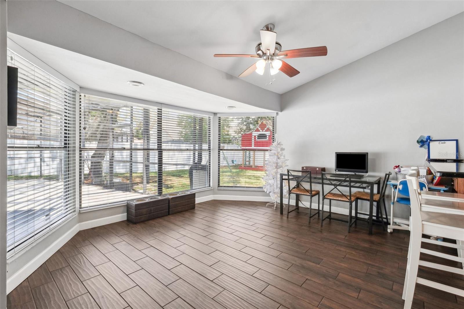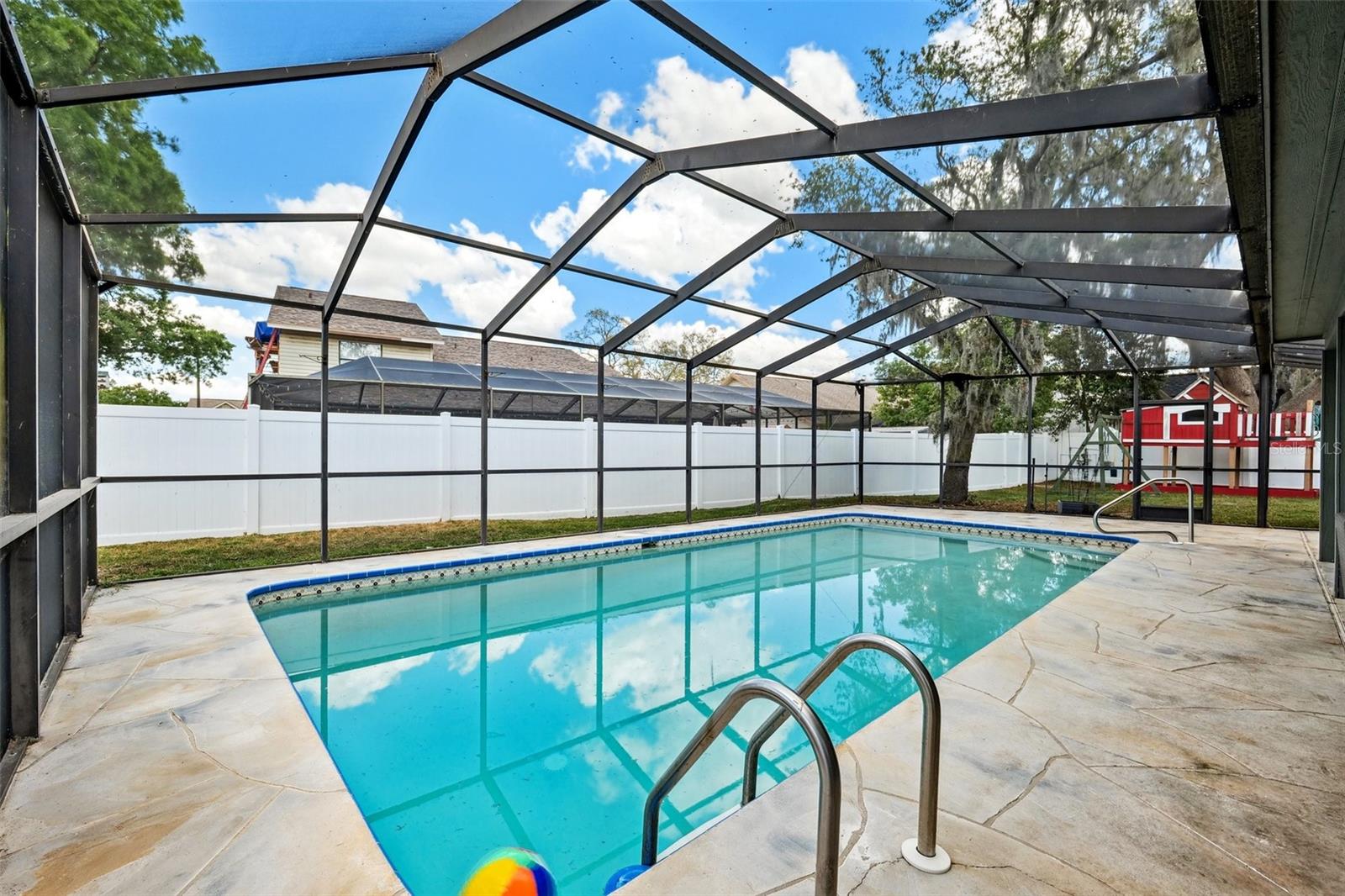 Your Dream Home Awaits in Bloomingdale East! This beautifully updated 3-bedroom, 2-bathroom home with an office and 2,396 sq. ft. of living space is a rare find in the highly desirable Bloomingdale East community! Nestled among mature oak trees on a large fenced lot, this home offers privacy, space, and modern upgrades throughout. Step inside to find vaulted ceilings and plank tile flooring, creating a bright and airy atmosphere. The remodeled primary bath is a true retreat, featuring a large walk-in shower and custom closet. Outside, the sparkling pool and spacious backyard provide the perfect setting for entertaining or relaxing. A new roof (2024) adds peace of mind, making this home move-in ready! Enjoy all the benefits of living in a well-established neighborhood with no HOA or CDD, including parks, tennis courts, and scenic walking trails. Conveniently located near top-rated schools, shopping, dining, and major roadways, this home truly has it all. Don't miss your chance—schedule your private showing today!