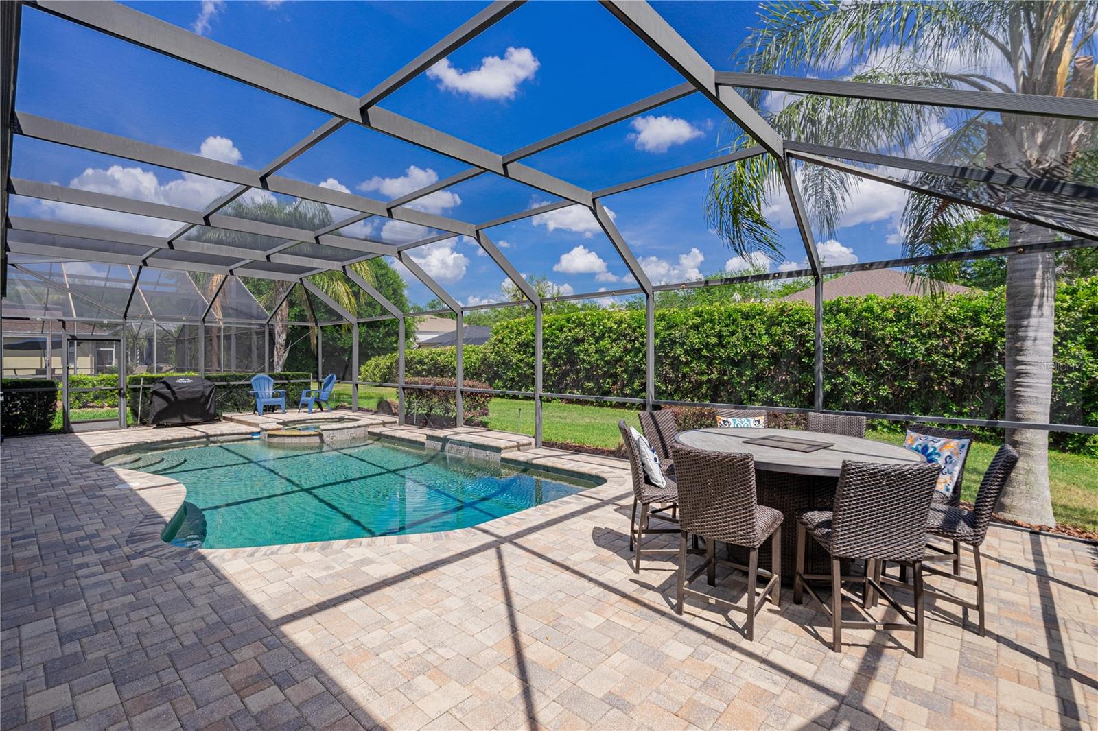 !Beautiful home in the desirable, gated community of River Hills. This home has 4 bedrooms, 3 baths and an office All floors have been updated and all bathrooms have been recently renovated. The principal bedroom features two walk-in closets and direct access to the pool. The large bonus room upstairs has a private bathroom. The entire house has been freshly painted inside and out. The roof was replaced in 2015, AC units were replaced in 2016, water heater in 2019 and a water softener was added in 2021. The kitchen has new stainless steel appliances added in 2020 as well. French doors open to a tranquil pool with brick pavers on a large lanai. The pool is heated with both energy saving solar heating panels and a gas heater for the hot tub on chilly winter days. 10 foot privacy hedges define the large backyard and help to create the peaceful scene in the pool area. Enjoy everything River Hills has to offer; golf, tennis, pickle ball, and a newly refurbished gym and clubhouse/restaurant. Miles of hiking trails down to the Alafia river are only steps away from the front door. Make an appointment and check this one out!