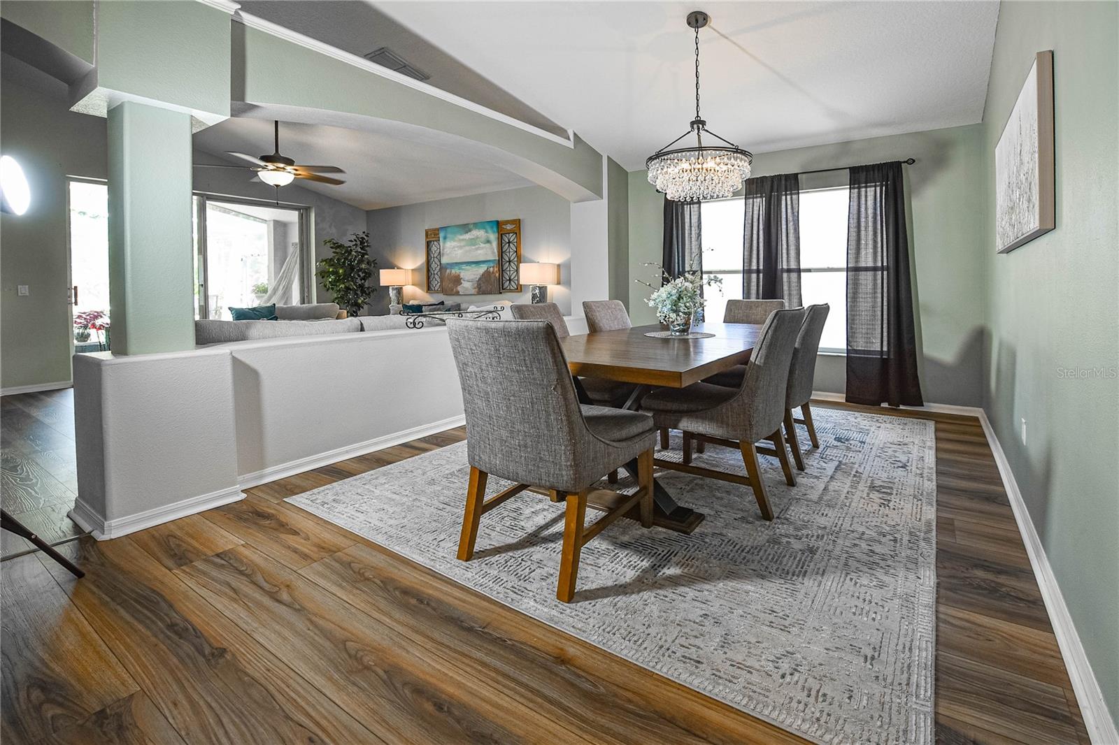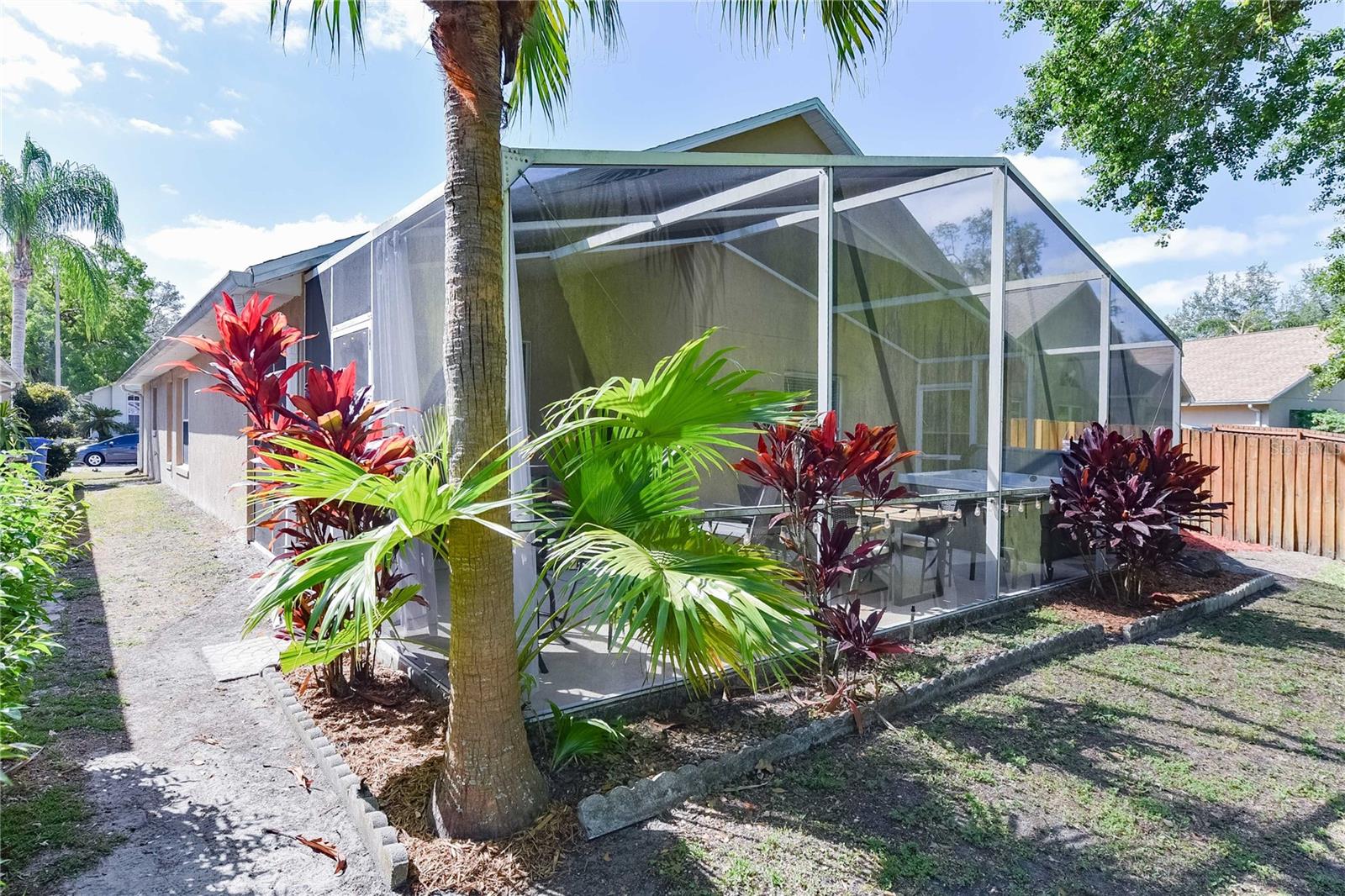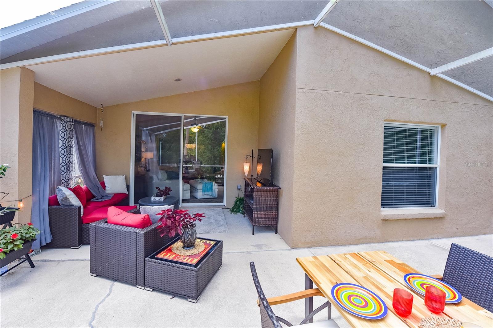 Nestled in a tranquil cul-de-sac within the sought-after Heritage Park of Bloomingdale Community, this newly updated 3-bedroom, 2-bathroom home with a large versatile vaulted office/4th bedroom overlooking conservation view. This home offers new and modern upgrades. Situated on a premium lot bordering conservation land, enjoy the serenity of nature with no current or future rear neighbors. Modern Upgrades: Brand new water heater in 2025, permitted roof was installed in 2021, and the air conditioner system installed in 2018 is still under warranty. Experience the elegance of high-end luxury vinyl plank flooring, complemented by upgraded carpet and plush padding in the bedrooms for added comfort. Freshly and professionally painted interiors that exude a clean and contemporary feel. The open-concept design boasts elevated ceilings, creating an airy and inviting atmosphere throughout the home. Generous Kitchen: The kitchen is equipped with a built-in microwave, smooth glass top range, dishwasher, twin stainless steel sinks, and ample cabinetry. Breakfast nook and breakfast bar perfect for families or entertaining. Large indoor Laundry Room off of the kitchen keeps you enjoying family time. Enjoy added privacy with a split floor plan that places the Master Suite and Office/4th Bedroom at the rear of the home, offering serene views of the peaceful conservation area. A spacious master bedroom suite features a large open floor space showered with Florida sunshine from two large windows. Oversized master bathroom offers a new water closet, garden tub, separate stand-alone shower, twin sinks and a get lost in the den sized walk in closet. The separate and equally generous Office/4th Bedroom can serve as a fourth bedroom, home office, or creative space, catering to your lifestyle needs. The homes' raised ceilings impress throughout, especially so in the cozy Office/4th Bedroom finished with wide wooden French doors. Outdoor Oasis: Step onto the expansive screened-in back patio, complete with a 2024 Dr. Wellness X-3 Spa, with 51 stainless steel jets, upgraded to include cooling or heating controls, waterfall, integrated programmable LED lights with multiple colors, Bluetooth audio system, and 6-month supply spa chemicals. Host guests in a spacious area designed for entertaining, featuring a large-screen TV, bar, pub table, six-person dining space, and a full sectional sofa with views of the yard, sunning “beach,” and lush tropical trees. Ample Storage: The oversized two-car garage comes with wall-attached shelving, providing plenty of storage solutions. Community Perks: Enjoy the low HOA fees with no lease or pet restrictions, access to top-rated local schools, and proximity to shopping, dining, Tampa's international airport and recreational facilities.