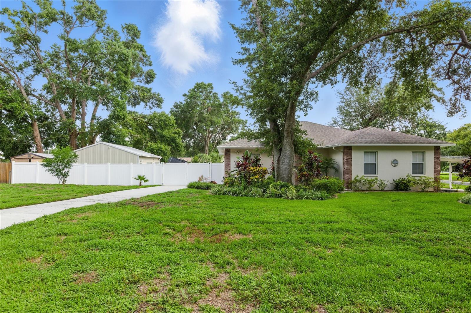 One or more photo(s) has been virtually staged. Welcome to Your Own Personal Oasis Where every day feels like a staycation! Step into your backyard paradise featuring a heated, saltwater pool with a full screened enclosure (new in 2022!). Whether you're swimming, sunbathing, or unwinding under the stars, this space is made for year-round enjoyment—without the bugs. Set on a generous corner lot just under ½ acre (with fruit trees ... Orange, Lime and Banana!), this home offers the perfect mix of privacy and green space, even with the pool and bonus structures. You'll love the attached 2-car garage and covered carport, ideal for extra parking, boats, or shade. But the standout feature? A freestanding 2-car garage/workshop (30' x 24' / 720 sq ft) with its own private driveway and entrance—perfect for hobbyists, car lovers, or anyone needing a versatile space to create, build, or store. Inside, you'll find thoughtful updates throughout, including luxury vinyl plank and tile flooring, refreshed kitchen and bathroom cabinetry and countertops, walk in tub and full shower in the master, newer ceiling fans, and a newer hot water heater. Move-in ready comfort with style to match! Located in peaceful Valrico, you’ll enjoy a laid-back suburban lifestyle while being just 30–40 minutes from Tampa’s big-city excitement—think pro sports, concerts, nightlife, and world-class shopping. Plus, outdoor lovers will appreciate proximity to local favorites like Lithia Springs Park, Alderman’s Ford Nature Preserve, and Alafia River State Park—perfect for hiking, kayaking, or family picnics. And here's a bonus: the home is located in low-risk Flood Zone X for extra peace of mind.