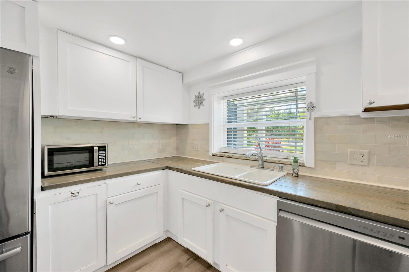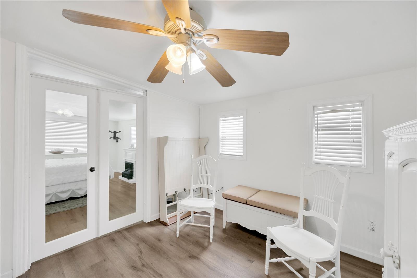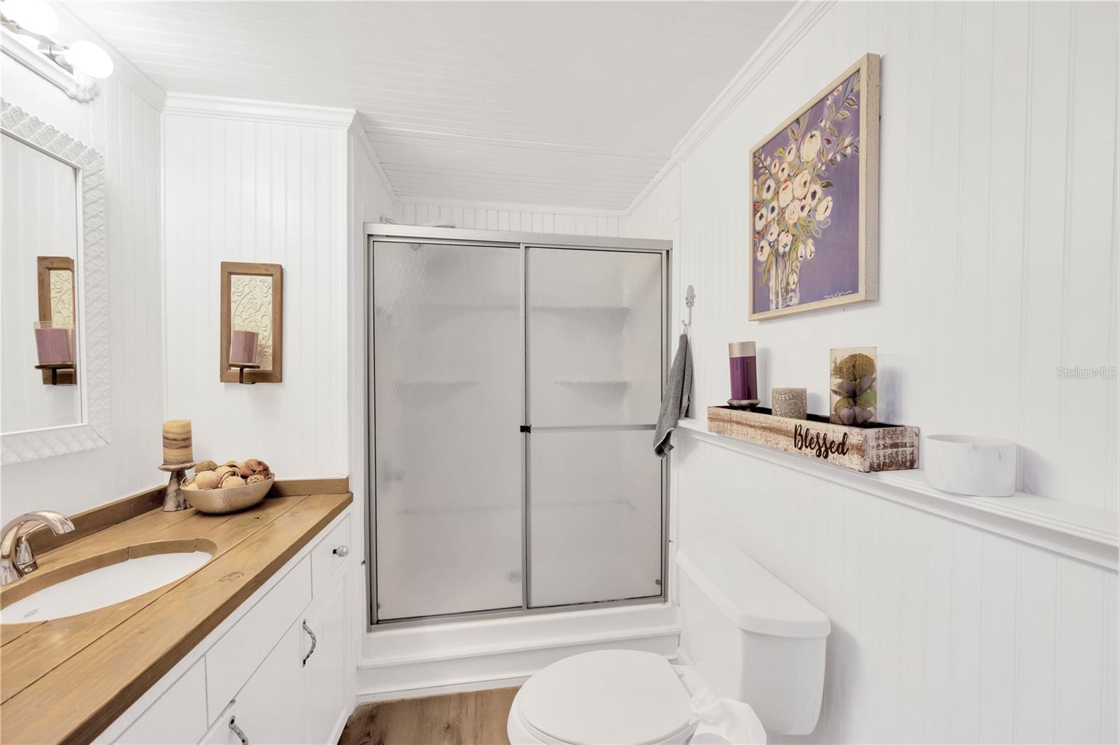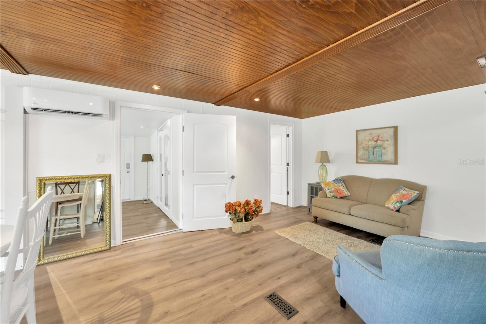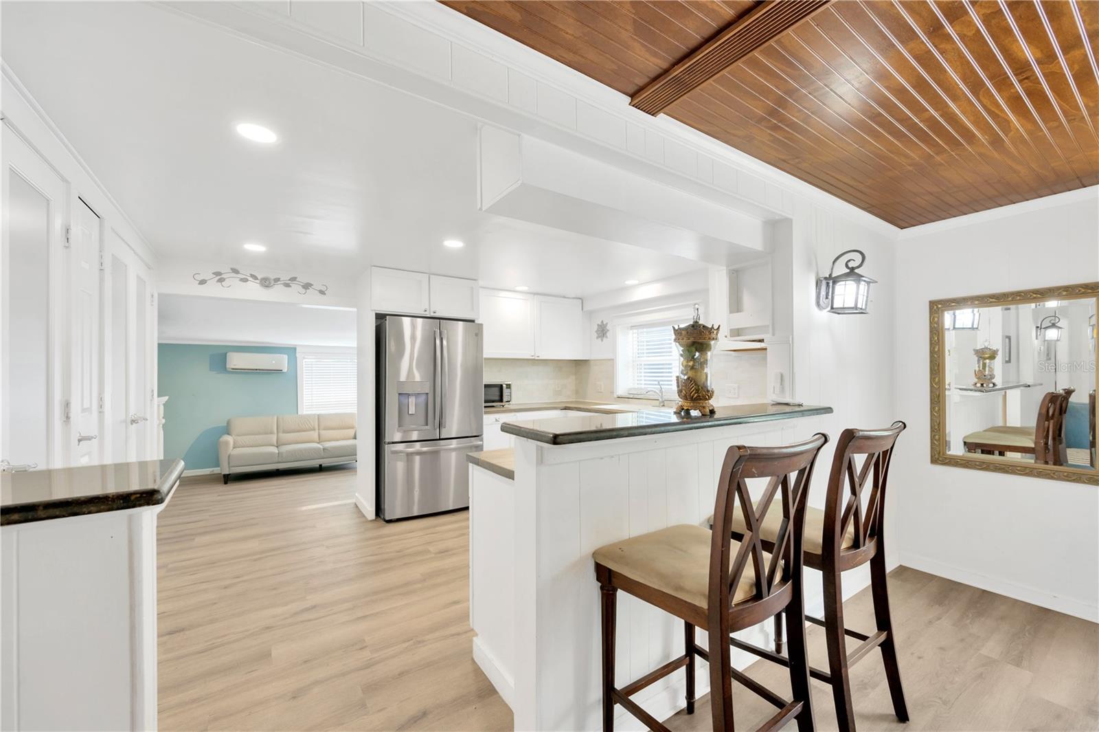Tucked away on a quiet, dead-end drive off Durant Road lies a hidden gem —No Lot fees, No CDD Fees, No HOA fees, and city water. This peaceful enclave is meticulously maintained manufactured homes, each nestled on spacious, manicured lots. This particular home radiates French Country charm and must be seen to be fully appreciated. Florida-friendly landscaping and a durable composite deck pathway welcome you to the inviting front porch and leaded glass entry door. Step inside to a warm and welcoming 12' x 23' family room, featuring NuCore cork-backed waterproof flooring, a stylish light fixture, shiplap accent wall, and a convenient exterior door that opens to a serene side garden. The kitchen is a true highlight — generously sized and thoughtfully designed with GE Profile stainless steel appliances, durable pine countertops, solid wood white cabinetry and a stunning cast iron porcelain farmhouse sink. Two custom-built pantries and a central broom closet offer exceptional storage, while a granite breakfast bar provides extra seating and flows seamlessly into the spacious dining and living room. There is a stunning beadboard wood ceiling, crown molding and creamy white painted shiplap walls for added character throughout this home. The private primary suite is a retreat unto itself, complete with an impressive 12' x 14' walk-in closet, an en-suite bathroom, and private exterior access to the private backyard. The bathroom features a jacuzzi tub with hand shower, a generous vanity with ample storage, and a closet concealing a full-sized washer and dryer. A secondary bedroom (15' x 11') offers its own private exterior entrance — ideal for an adult child, roommate or even a home office. A flexible bonus room with a built-in closet is divided by elegant glass French doors, adding even more versatility to the floor plan. Exterior upgrades include durable Hardie board siding, 8" thick walls, and energy-efficient PGT EnergyVue vinyl windows with Low-E insulated glass (2019). The ductless mini-split AC/Heating system (2021) ensures year-round comfort, and the waterproof NuCore® flooring with hypoallergenic cork padding (installed in 2019) adds beauty, quiet, and durability throughout the home. The durable metal roof still has many years of life remaining, contributing to this home's truly low-maintenance appeal. Most of the furniture will be left there. NO FHA Financing allowed!