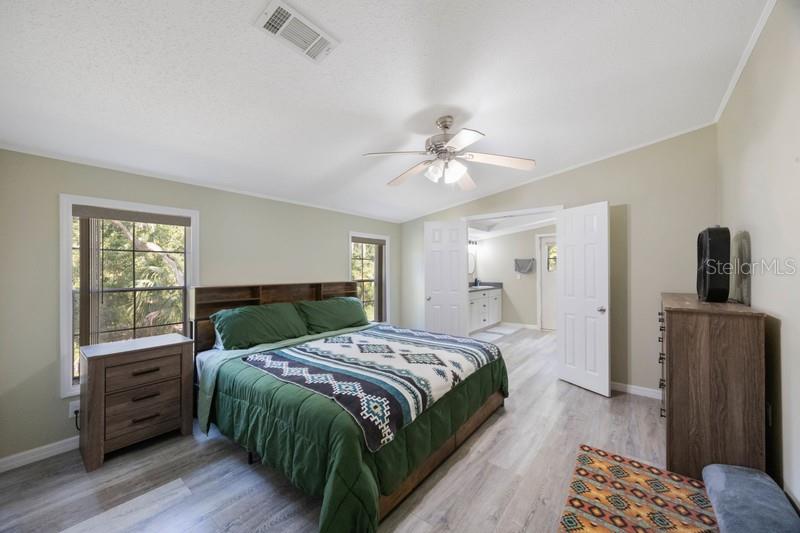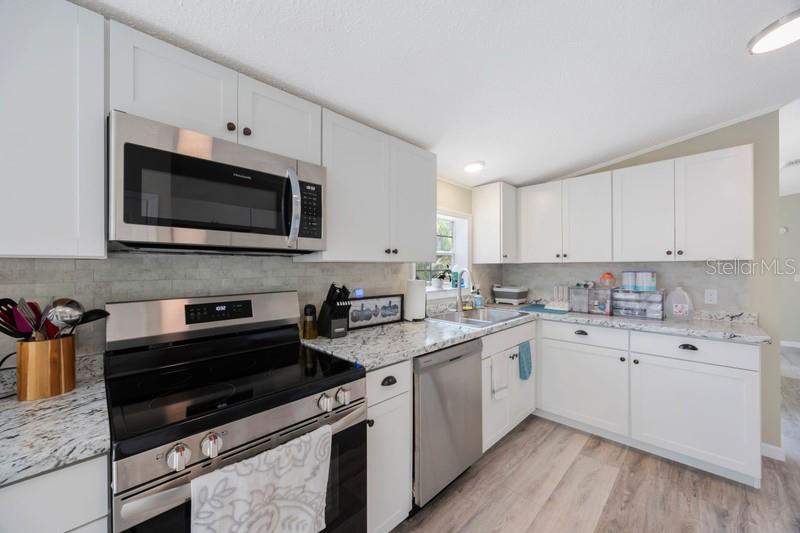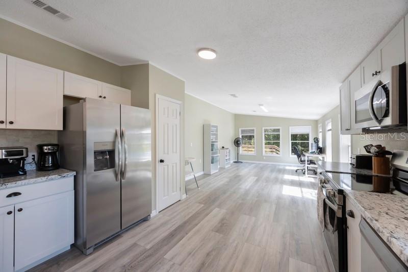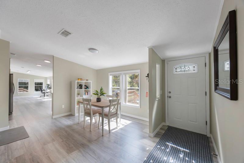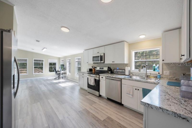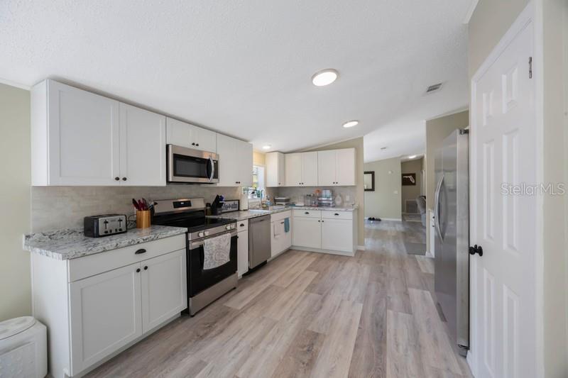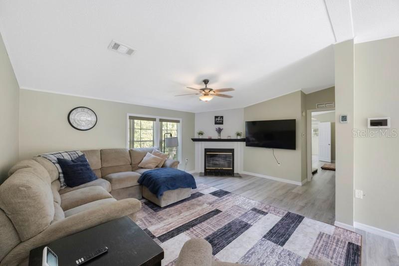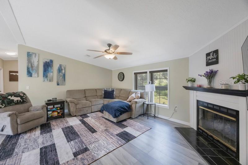 Secluded 1.75-Acre Retreat with Modern Comforts and Rustic Charm! Escape to peace and privacy on this stunning 1.75-acre wooded property—complete with walking trails and surrounded by nature, yet conveniently located close to everything. This beautifully updated home offers the best of both worlds: seclusion without sacrifice. Step inside to find brand-new plank vinyl flooring throughout and a spacious living room with vaulted ceilings and a cozy wood-burning fireplace. The huge kitchen opens to a versatile bonus space—perfect as a large dining area, family room, or even a home office. The primary suite is a true retreat, featuring a generous walk-in closet, a luxurious en suite bathroom, and private access to a secluded patio. You'll love the oversized indoor laundry room with ample storage space. Additional features include a new well and water softener system, updated A/C ductwork, a sturdy metal roof (only 5 years old), and a powered shed for workshop or storage use.This property offers the space, tranquility, and flexibility you've been dreaming of—get away from it all without getting away from it all.