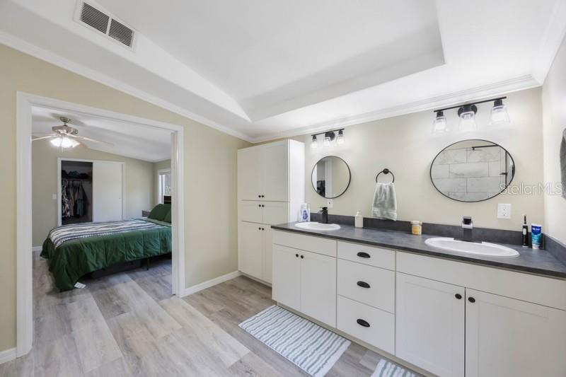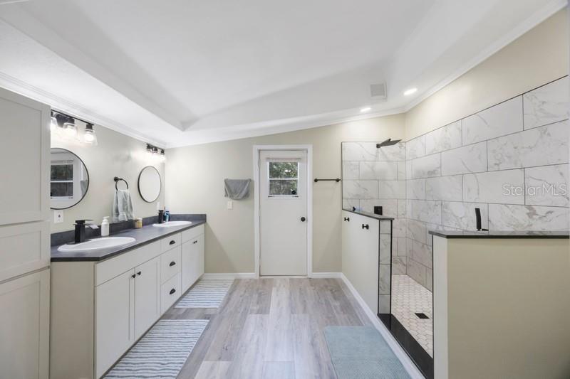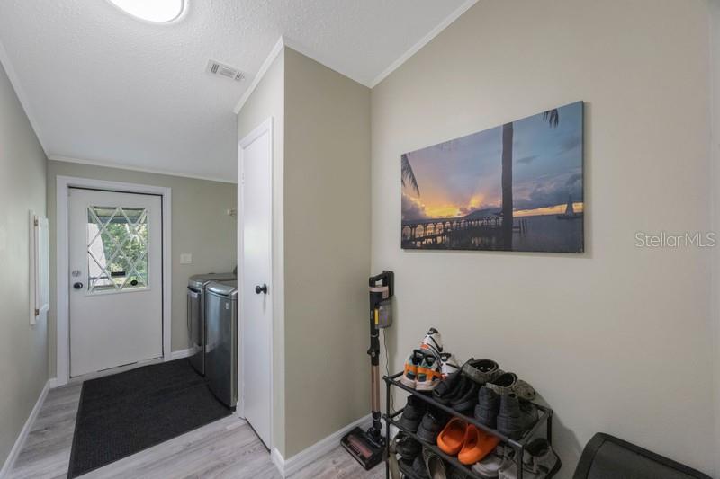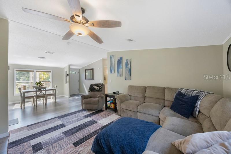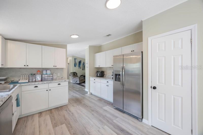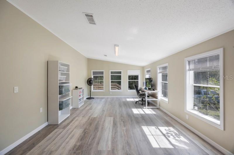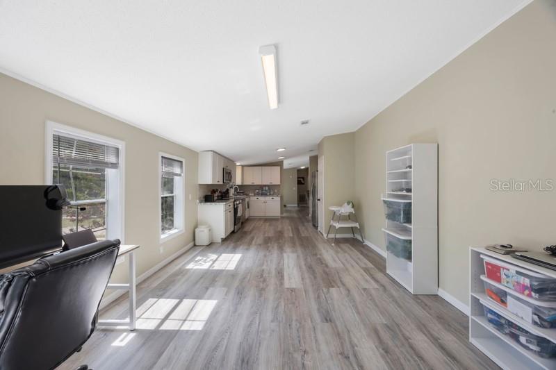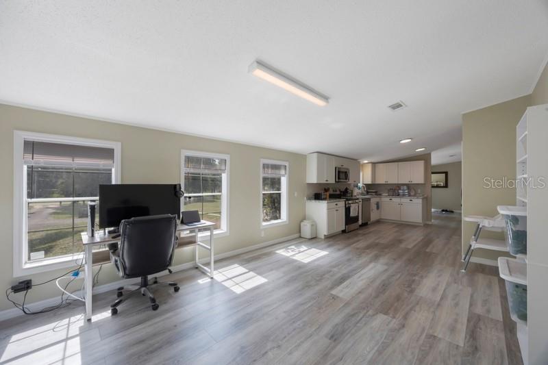 Secluded 1.75-Acre Retreat with Modern Comforts and Rustic Charm! Escape to peace and privacy on this stunning 1.75-acre wooded property—complete with walking trails and surrounded by nature, yet conveniently located close to everything. This beautifully updated home offers the best of both worlds: seclusion without sacrifice. Step inside to find brand-new plank vinyl flooring throughout and a spacious living room with vaulted ceilings and a cozy wood-burning fireplace. The huge kitchen opens to a versatile bonus space—perfect as a large dining area, family room, or even a home office. The primary suite is a true retreat, featuring a generous walk-in closet, a luxurious en suite bathroom, and private access to a secluded patio. You'll love the oversized indoor laundry room with ample storage space. Additional features include a new well and water softener system, updated A/C ductwork, a sturdy metal roof (only 5 years old), and a powered shed for workshop or storage use.This property offers the space, tranquility, and flexibility you've been dreaming of—get away from it all without getting away from it all.