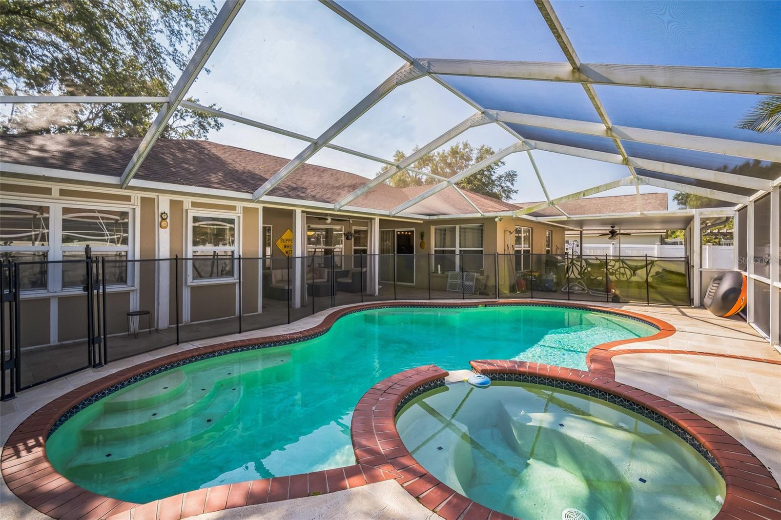 Welcome to your dream retreat in the desirable Buckhorn community! This spacious 4-bedroom, 2-bathroom home is situated on a premium corner lot—offering privacy and exceptional outdoor living. Step into a light-filled open layout with over 2,000 sq ft of living space, featuring formal and informal living areas, elegant hardwood and tile floors, and a thoughtfully designed floor plan perfect for family living and entertaining. Private Pool & Spa – Fully screened lanai enclosure, relaxing spa, and an outdoor shower for added convenience. Custom Firepit –Enjoy cool Florida evenings gathered around your professionally designed firepit in the fully fenced backyard. New AC Unit (2025) – Just installed for modern efficiency and comfort. Expansive Lanai – Covered and screened outdoor space perfect for grilling, lounging, or dining year-round. Outdoor shower– Rinse off after a swim with this unique and refreshing feature. Child Safety Features – Peace of mind with pool safety fencing for families with young children. Optional HOA & Golf Lifestyle – Low optional HOA (only $31/year) with Buckhorn Golf Club right next door to join if you desire. Additional upgrades include a whole-house water softener serviced in 2025, stainless appliances. Located near top-rated schools, shopping, and dining, this home blends luxury, location, and lifestyle. Don’t miss your chance to own this Valrico gem with all the extras!