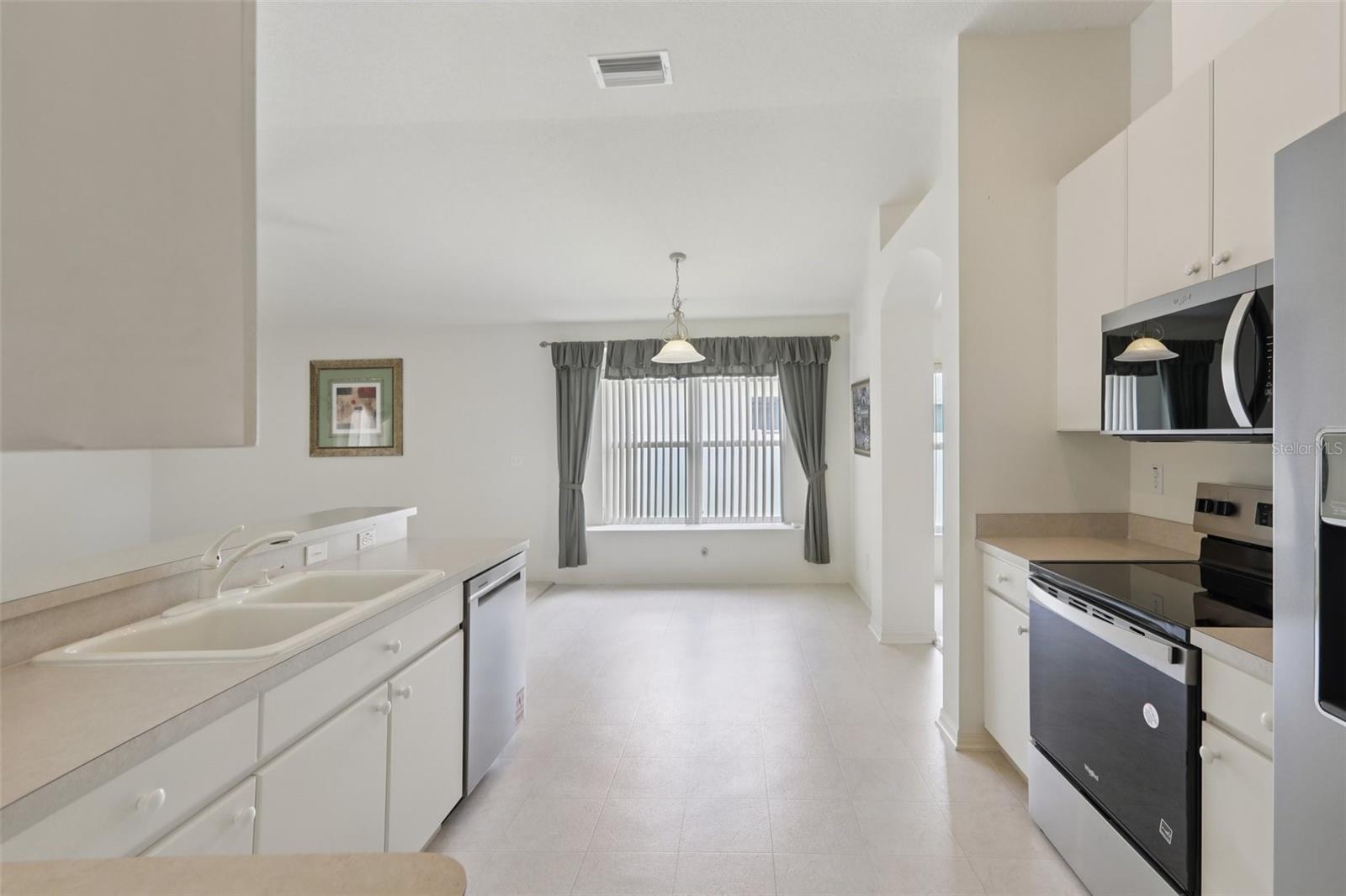 Welcome to this beautifully maintained 3-bedroom, 2-bathroom home with bonus room in the highly desirable Bloomingdale community! Thoughtfully updated and PRICED TO SELL, this home offers peace of mind with a NEW ROOF (2020), NEW A/C and NEW WATER HEATER (2024), along with a brand new appliance package for your convenience. Step inside to find soaring ceilings and abundant natural light in the formal dining area, creating a bright and open atmosphere. A versatile bonus room with double doors is perfect for a home office, den, or additional living space. The kitchen is spacious and functional, featuring ample cabinetry, expansive counters, and an adjacent casual dining nook, ideal for family meals or entertaining. Enjoy privacy in the split bedroom layout, with the primary suite tucked away and featuring a large walk-in closet and ensuite bath with soaking tub, dual sinks, and a separate tiled shower. Two additional bedrooms, a full bath, and a convenient laundry room are located on the opposite side of the home. The expansive great room opens to a covered, paved patio and a fully fenced backyard, offering the perfect space for relaxing or entertaining outdoors. With 1,936 sq ft of living space and a 2-car garage, this home delivers both comfort and functionality. Located in a deed restricted community with sidewalks and parks and a low annual HOA. Conveniently situated near top rated schools, shopping, dining, and major commuter routes, this home is a true gem. Don't miss out. Schedule your showing today!