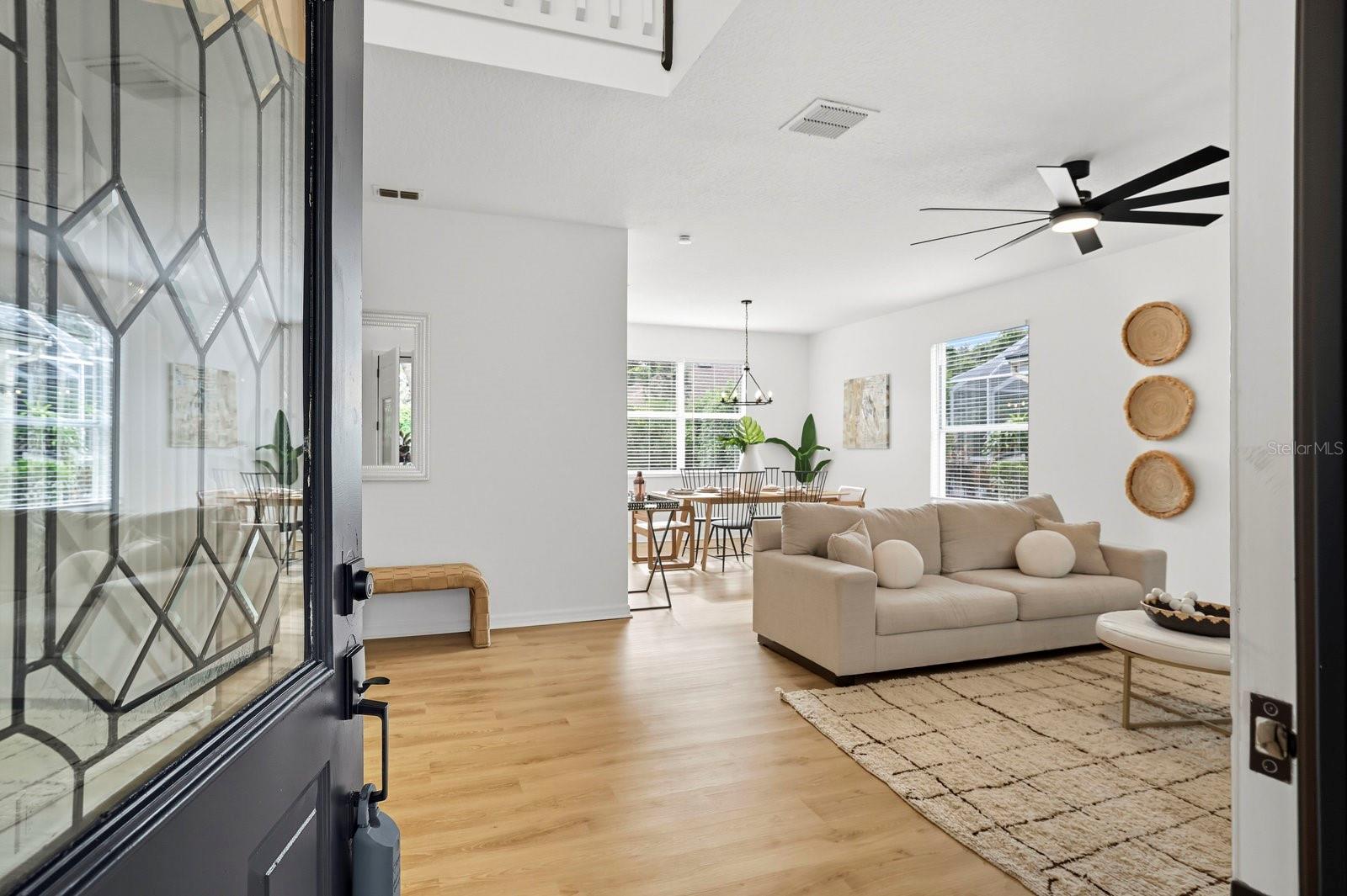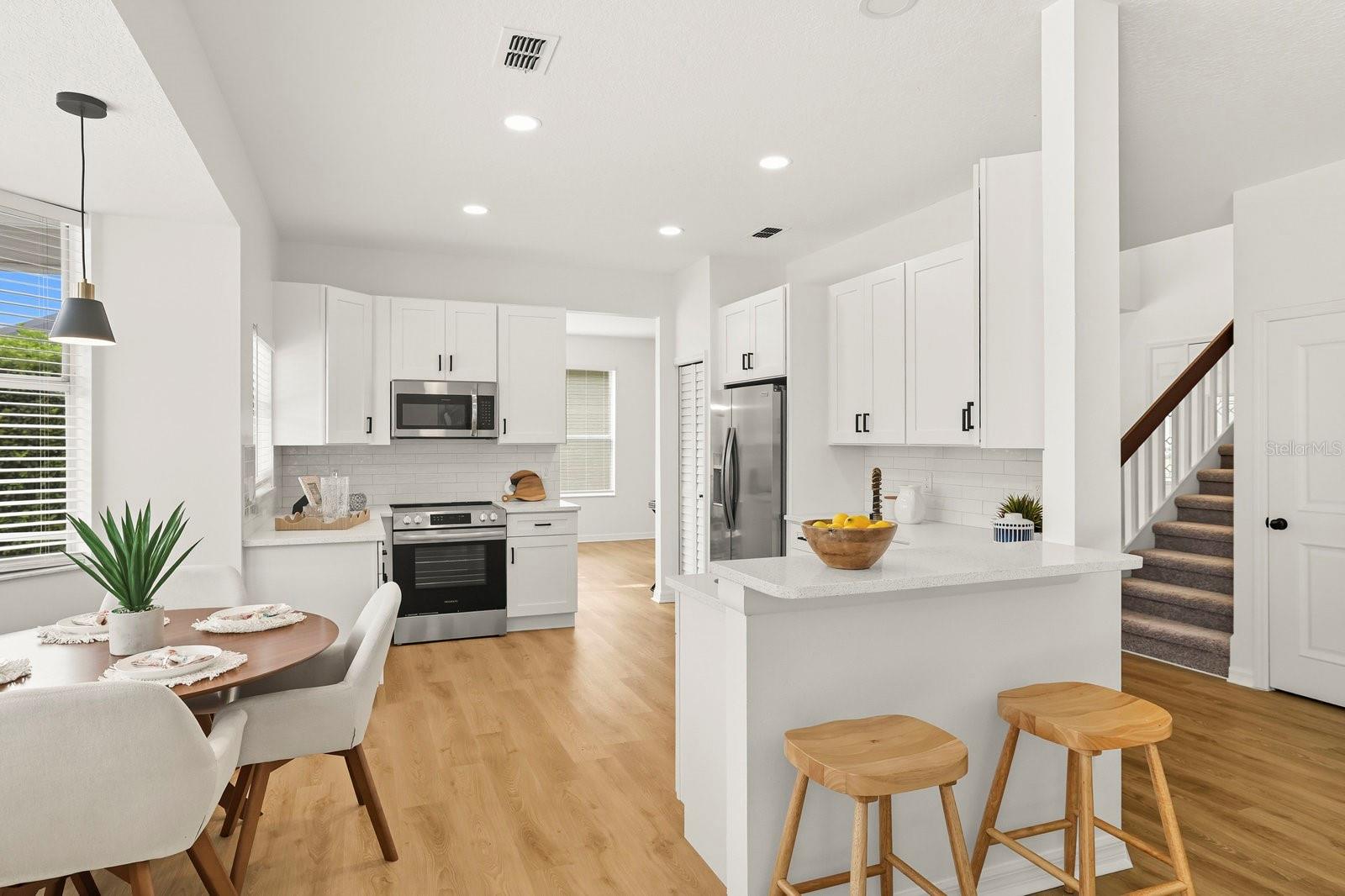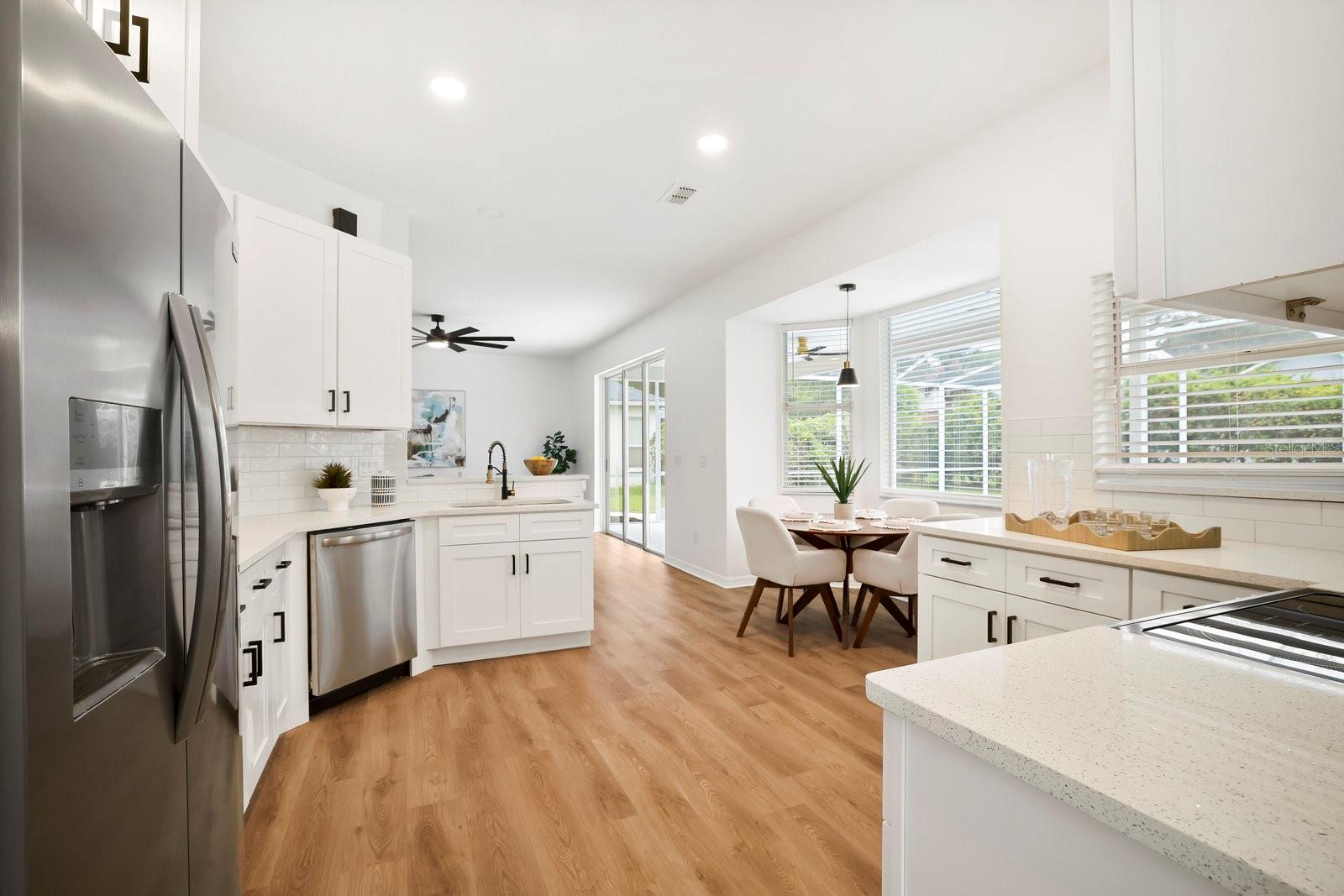 Come and see this fully renovated 5/3, 2.5 Garage POOL HOME SANCTUARY in River Hills! Open floor plan boasting over 2800 sf w/high ceilings greet you and quickly draws your eye to your private outdoor living space w/sparkling blue pool, covered patio within screened enclosure ~ a welcoming space to host family gatherings or unwind w/a cool drink after a stressful day. The main floor creates a smooth easy flow between the kitchen, Dining, formal living, family room & outdoor living space, perfect for entertaining! Admire the elegant and well-designed upgrades throughout creating a perfect blend of modern aesthetics and homey feelings! At the heart of this home lies a show-stopping kitchen, meticulously crafted with sleek modern cabinetry, luxurious quartz countertops, and premium stainless-steel appliances. Brand-new luxury vinyl flooring stretches seamlessly through the living areas, infusing the home with warmth and elegance. Large breakfast bar w/separate eat-in dinette area overlooks the family room, outdoor living space & pool. Retreat upstairs to the oversized Master Suite, with Sitting area and spa inspired en-suite bathroom with dual vanities and separate water closet. The secondary bedrooms are nicely sized with ample closet space. The 5th bedroom on the main level can also serve as an office, den, or workout room with adjoining full bathroom - the perfect flex space. Oversized two and a half car garage gives you extra room for storage or a golf cart. HOA dues give you luxury access to restaurants, pool, playgrounds, nature trails & other amenities. Golf and tennis enthusiast’s welcome! River Hills is conveniently located to restaurants, entertainment, "A-Rated" school systems and to our amazing Florida beaches & theme parks. Easy commute access to I4, I75 & Crosstown Expressway. Call today for your private showing & experience the Florida lifestyle!