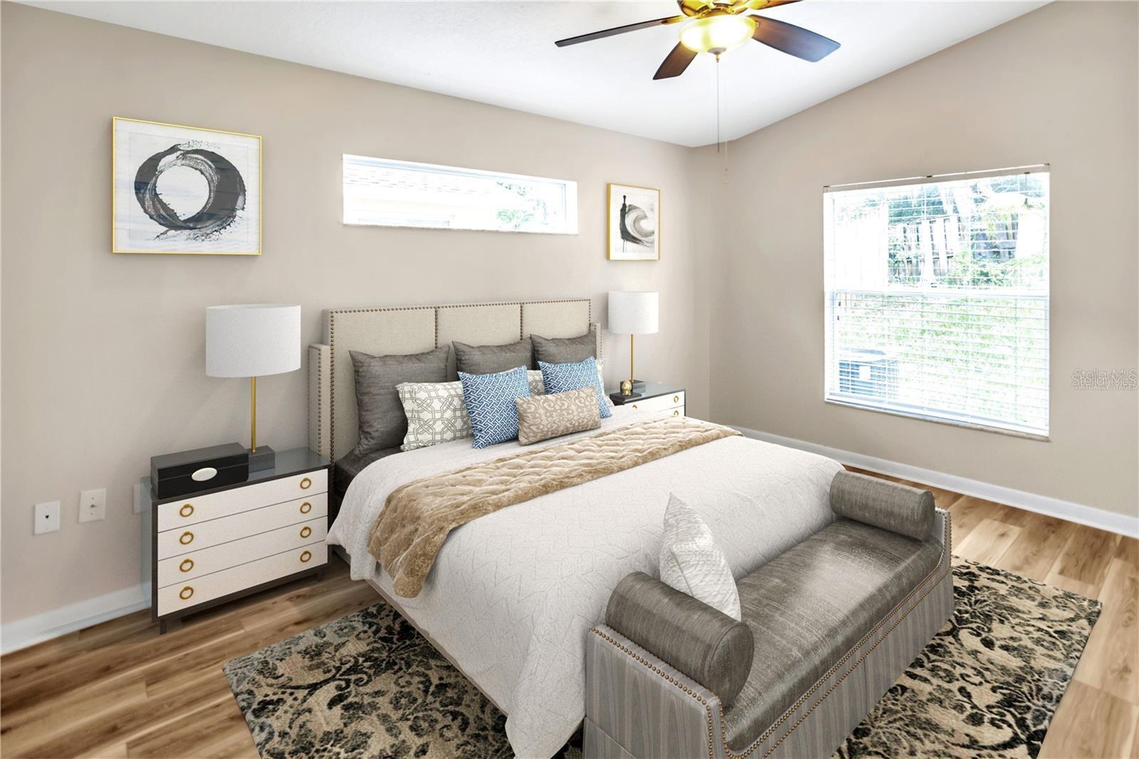 One or more photo(s) has been virtually staged. Nestled at the end of a tranquil cul-de-sac, this house is a hidden gem. This delightful single-story residence showcases a captivating open layout with a soaring cathedral ceiling. It includes three generously sized bedrooms with walk-in closets and two bathrooms. Start your day with a cup of coffee or unwind in the evening on the screened lanai, offering a serene backyard with no rear neighbors. This home boasts several featuers including a five-year-old roof, a tankless water heater, laminate flooring in all bedrooms and the one car garage floor has epoxy finish. The kitchen is adorned with granite countertops and stainless steel appliances. Additionally, this property comes with the benefit of low HOA fees and no CDD fees. The Valrico area is conveniently situated in Hillsborough County, providing easy access to major highways such as I-75, the Crosstown Expressway, and I-4. Shopping and dining options are just minutes away. Don't hesitate to schedule a viewing of this remarkable home, as it's sure to be in high demand and won't remain available for long!