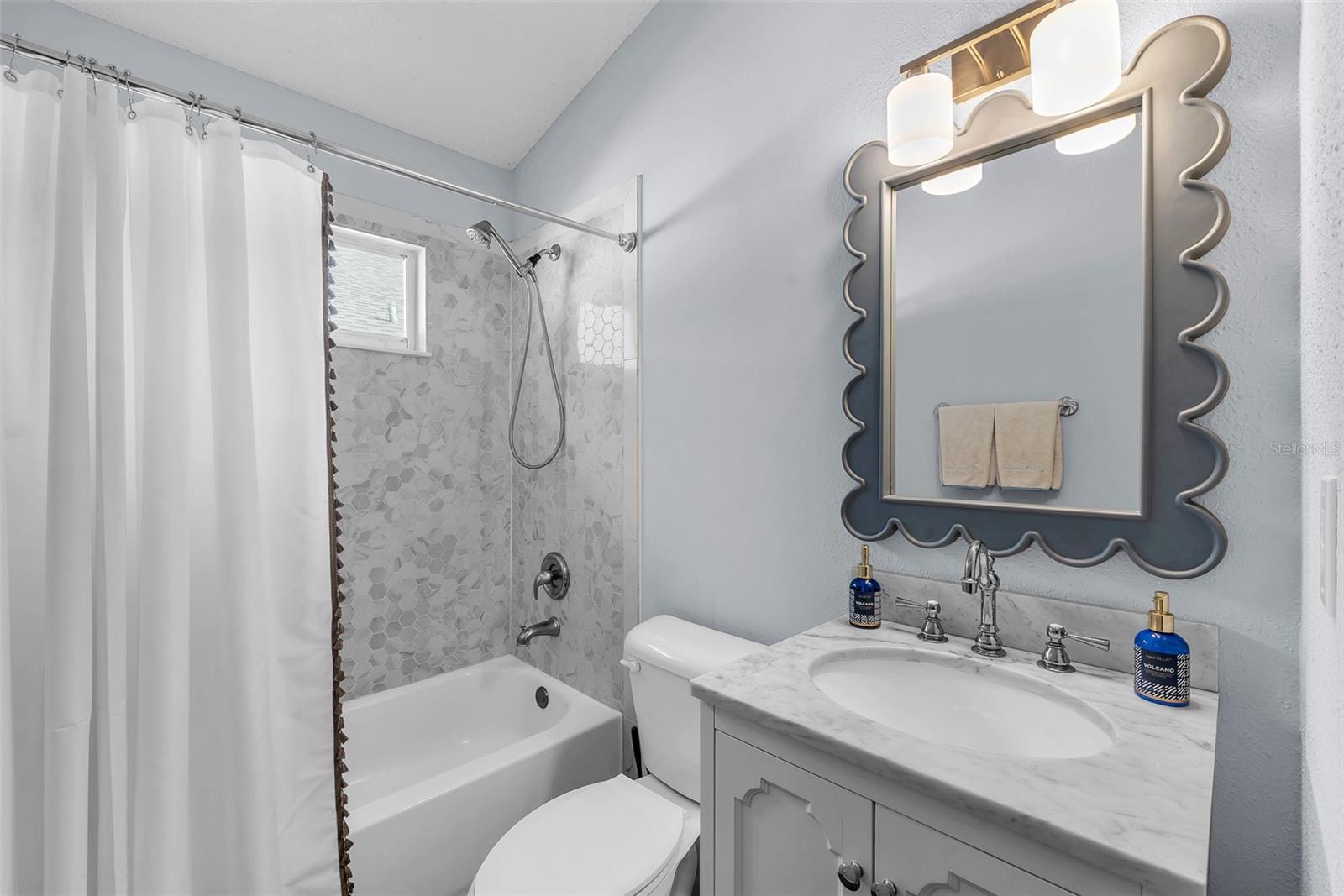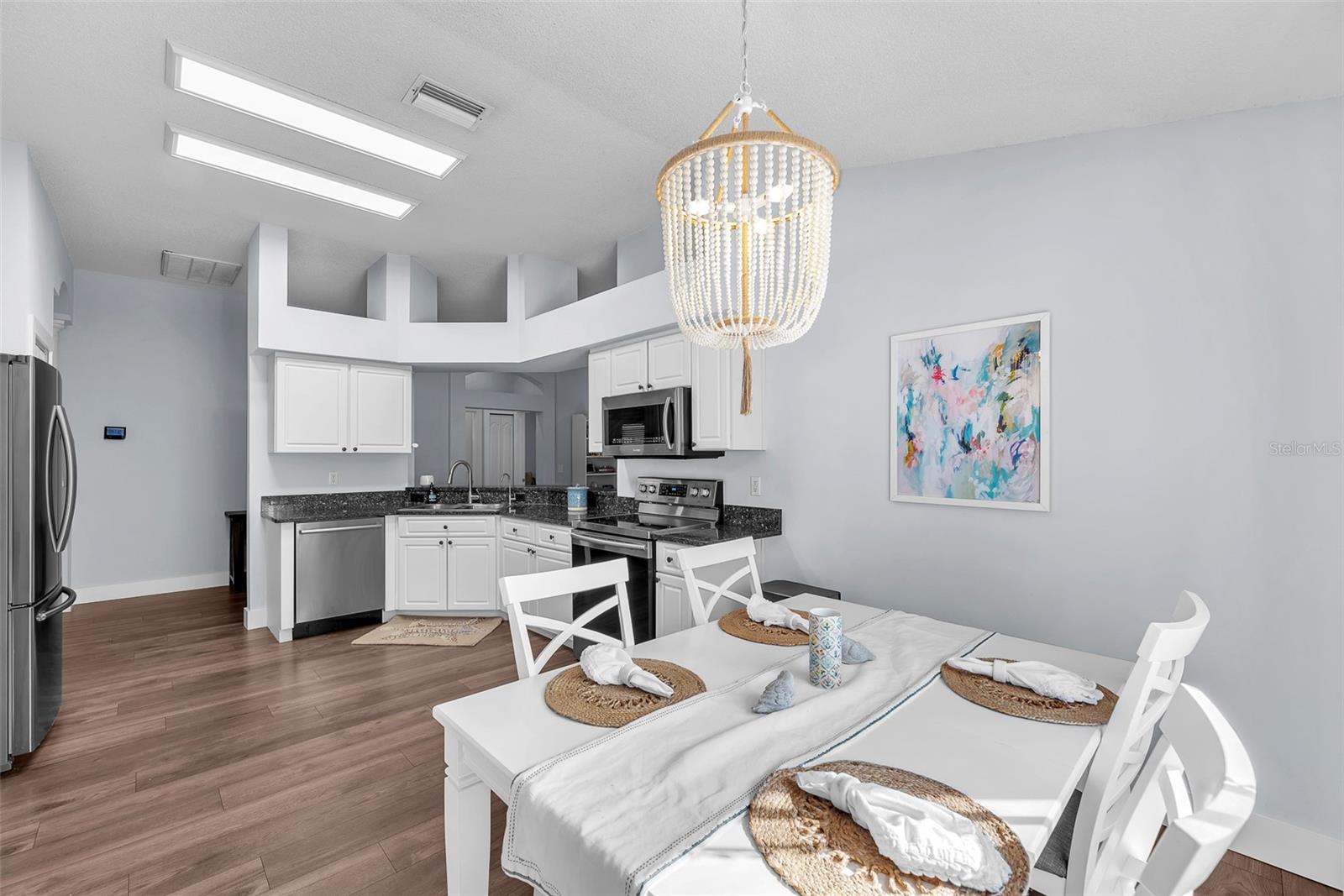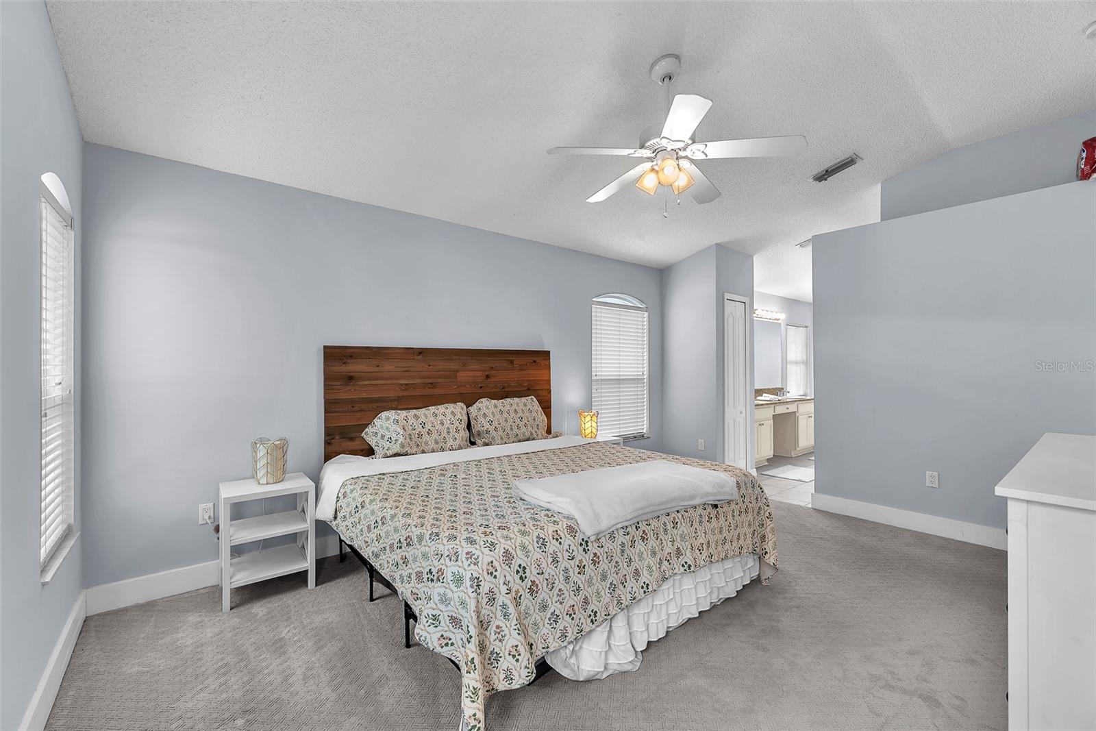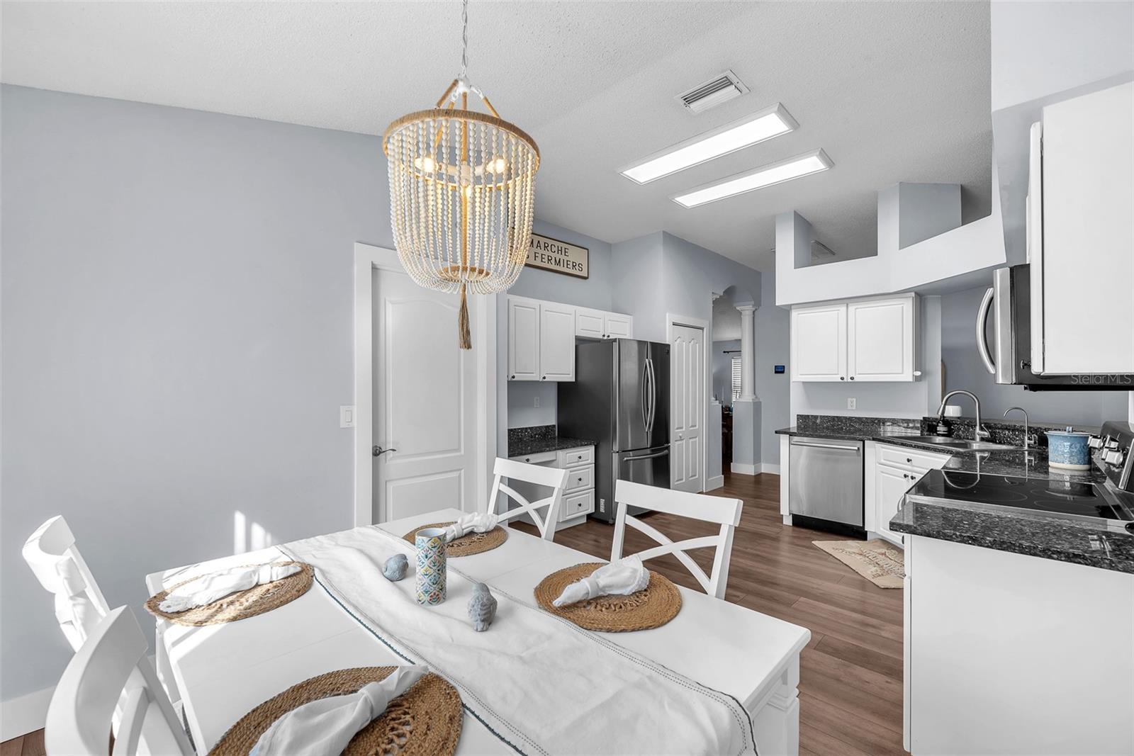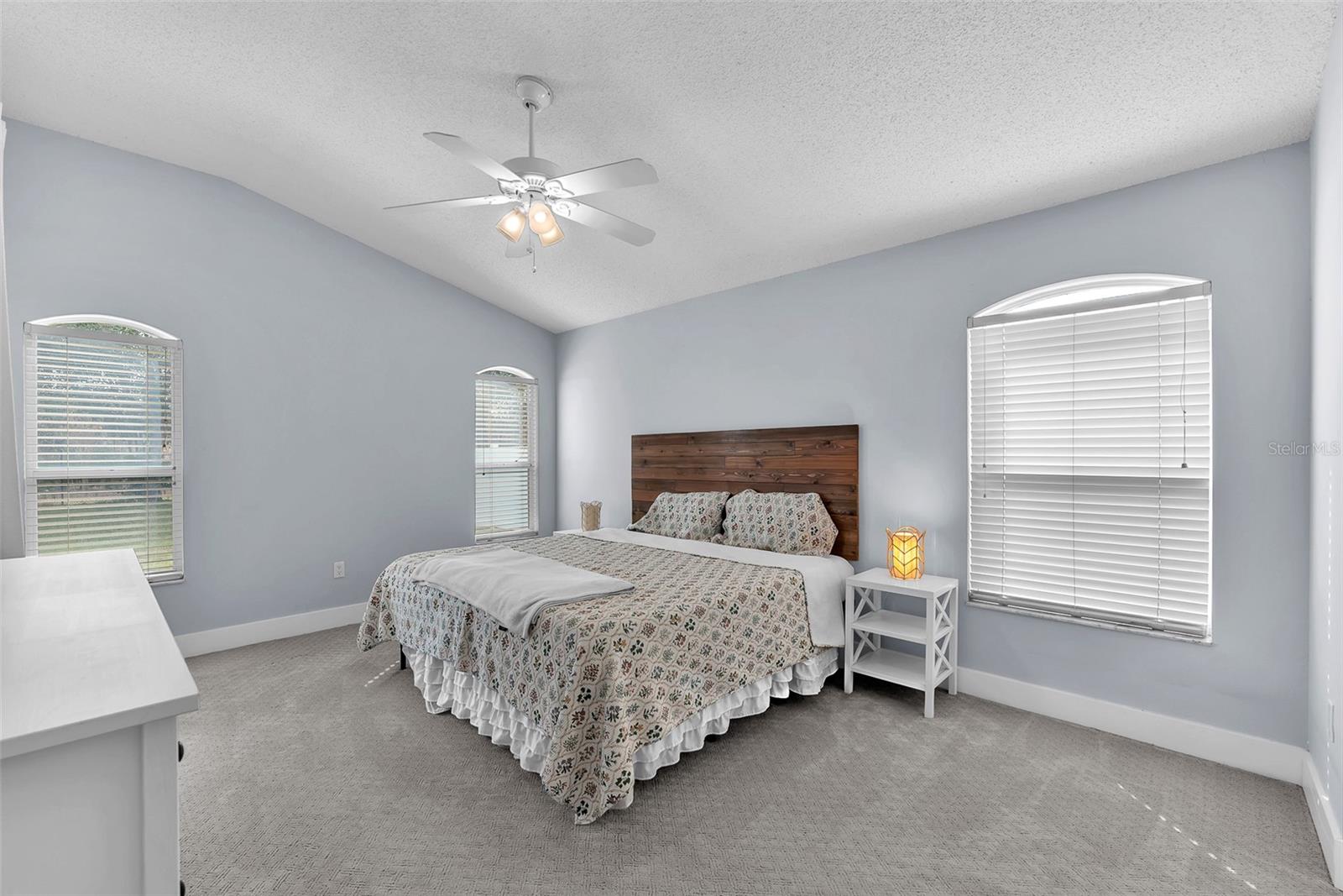 Welcome to your own private paradise in the heart of Twin Lakes. This beautifully maintained 4-bedroom, 2-bath home offers 2,082 square feet of comfortable living space and a spacious 2-car garage, perfect for golf-cart storage or weekend projects. Inside, the bright open-concept floorplan features tile flooring in the main living areas, vaulted ceilings, and a flowing layout designed for easy everyday living and effortless entertaining. The formal living room offers a cozy, classic touch with its vaulted ceiling, decorative archway, and lvp flooring. The sunny eat-in kitchen is the heart of the home, equipped with granite countertops, solid wood cabinetry, stainless steel appliances, a glass cooktop range, closet pantry, built-in planning desk, and a generous snack bar. A cheerful bay-window nook adds the perfect spot for morning coffee or a small desk setup. From both the kitchen and family room, large sliding glass doors provide peaceful views of the screened patio and spacious backyard, creating a relaxing retreat for outdoor lounging, cookouts, or gatherings. The primary suite is a true getaway with private patio access, vaulted ceilings, and a spa-inspired ensuite featuring a granite double-sink vanity, soaking tub, and frameless glass-enclosed shower. All secondary bedrooms offer vaulted ceilings and roomy closets, making them ideal for family, guests, or a home office. The laundry room includes custom cabinets for extra storage and organization. Located in the highly sought-after Twin Lakes community, residents enjoy top rated schools and fantastic amenities including a community pool, lakes, playground, basketball courts, and tennis courts. This home also offers unbeatable convenience to schools, shopping, great restaurants, I-75, and the Crosstown Expressway. Tampa International Airport and the Tampa Riverwalk are just 45 minutes away. Move-in ready, beautifully maintained, and perfectly positioned—this home truly has it all.