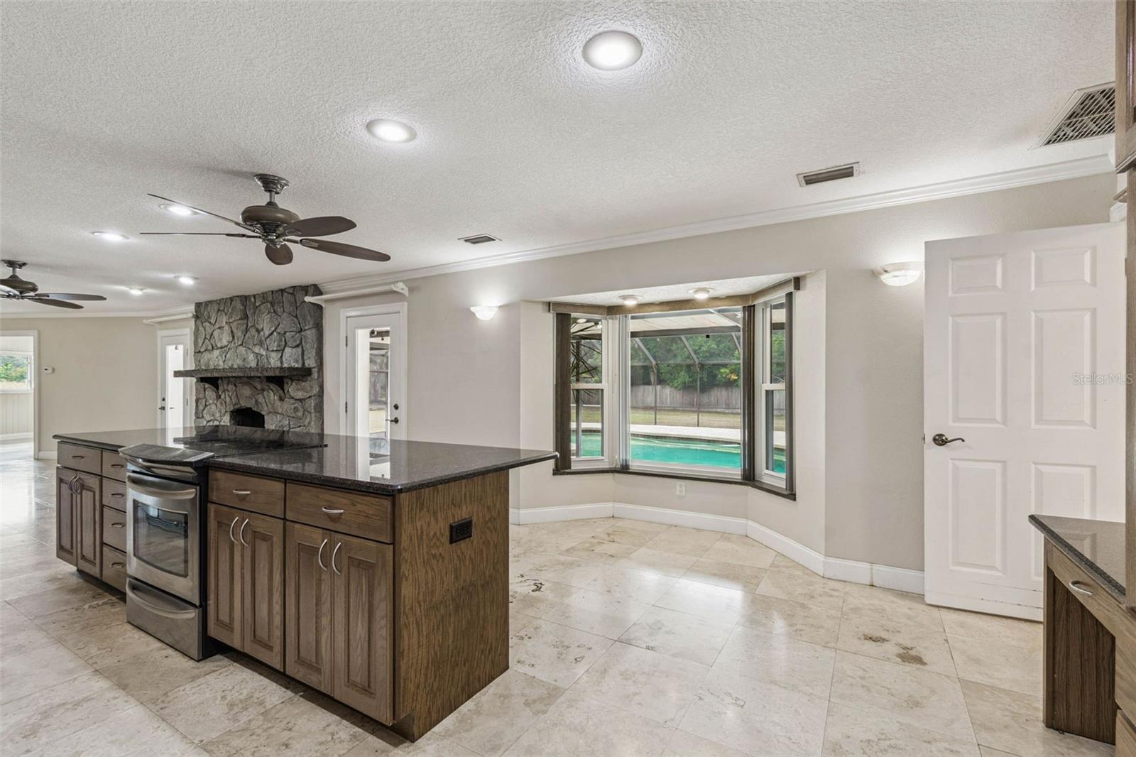 Welcome to your private slice of Valrico paradise. Tucked away at the end of a quiet cul-de-sac, this 3,187 sq. ft. estate sits on 4.12 acres with water views of the private waters of Valrico Lake—and lake access included. Properties like this rarely come available. The home is designed for comfort, gatherings, and effortless indoor–outdoor living. Step through double doors into a spacious foyer. The formal living room showcases charming bay windows, while the large formal dining room—complete with a bi-directional door to the kitchen—is perfect for hosting holidays and special occasions. The kitchen offers granite countertops, abundant cabinetry, stainless steel appliances, and its own bay window with peaceful views. It opens to a warm, inviting family room centered around a stone wood-burning fireplace, with multiple entryways leading to the lanai. A generous bonus/flex room also connects directly to the outdoor living space, making it ideal for game nights, hobbies, or a second gathering area. The primary suite is a true retreat, featuring a private sitting room and exclusive access to its own screened patio. The ensuite bathroom includes dual sinks, a large walk-in shower, and a spacious walk-in closet with built-in shelving. Two additional oversized bedrooms, 3.5 total bathrooms, and a large indoor laundry room provide plenty of room to spread out. The home also includes a wheelchair ramp that can stay or be easily removed, along with an extra storage room off the garage. Step outside to the massive screened lanai, highlighted by a sparkling 12-foot-deep in-ground pool and an extended paver patio—an entertainer’s dream. Whether you're hosting a summer BBQ, unwinding after a long day, or watching wildlife near the lake, this space is meant to be lived in. The entire property is fully fenced, with an oversized driveway offering ample parking for guests, trailers, equipment, or all of the above. Two impressive barns—both powered with electric—expand the possibilities even further. Barn 1 (approx. 50’ x 20’) features garage doors on both ends, and an attached extension perfect for a greenhouse or additional storage. Barn 2 (approx. 58’ x 36’) includes built-in shelving and generous space ideal for workshops, business operations, hobbies, or agricultural use. The property is zoned agricultural, offering flexibility you simply don’t find in a typical residential setting. A gated rear entrance at the back of the property provides convenient access to Front St., especially for larger vehicles and equipment. With well and septic, a water softener, private lake access, two powered barns, and 4.12 acres of usable land, this estate blends privacy, space, and endless opportunity—all in a highly desirable Valrico location. Bring your vision. Bring your toys. Bring your business. NO HOA or CDD! This property is ready for whatever you dream next. Only 3 miles from State Road 60, where you’ll find every convenience you will need- shopping and dining, close to the hospital, near major interstates for easy commuting, and only about 16 miles from Downtown Tampa.