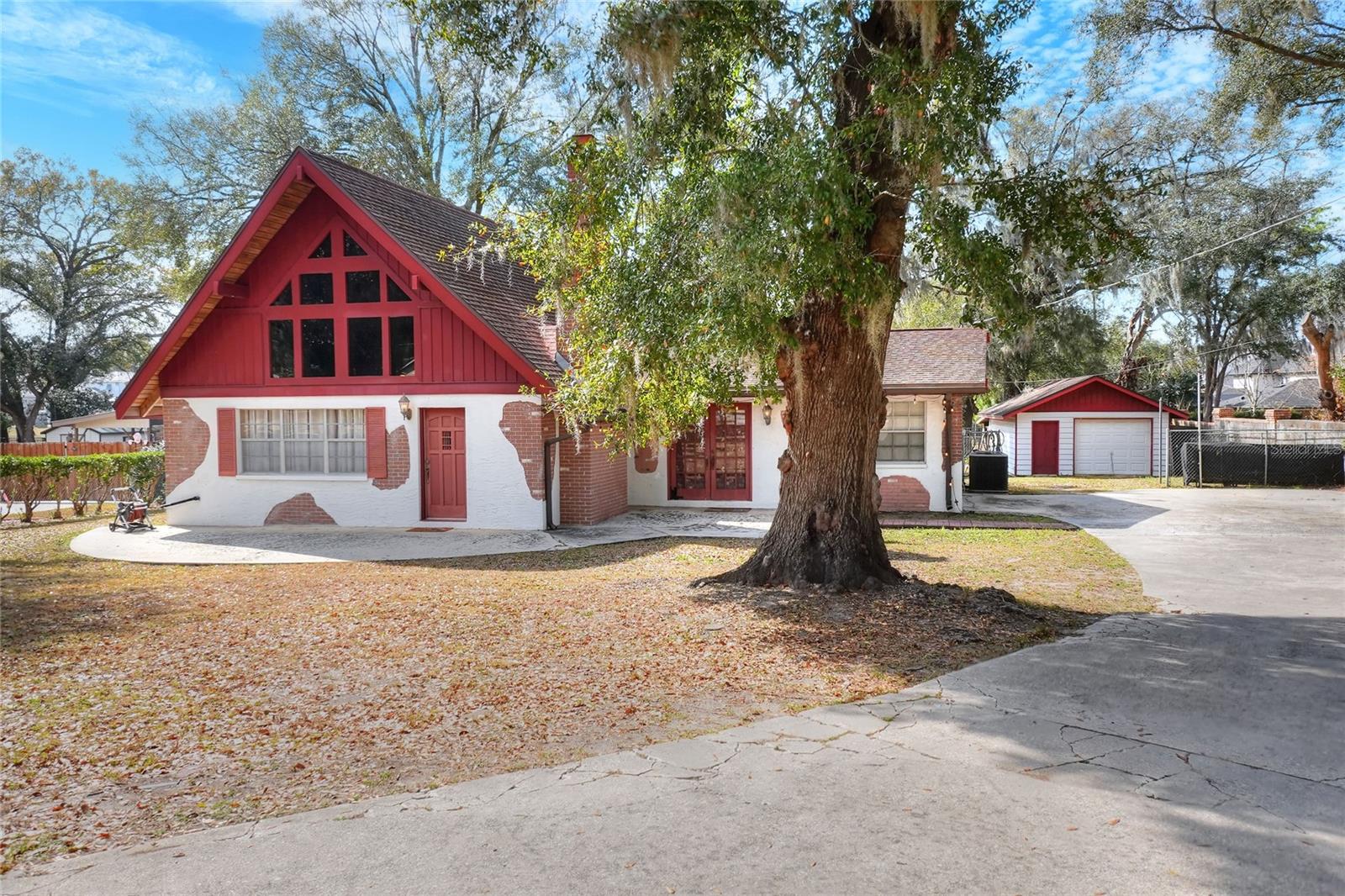 ATTENTION INVESTORS - CASH ONLY - This LOVELY HOME is nestled in over a 1/2 ACRE beautiful lot, completely fenced, in a HIGHLY DESIRED LOCATION! NO HOA! Such a beautiful property surrounded by gorgeous established neighborhoods, beautiful estates, and recent new builds. This cozy unique A-Frame design is completely fenced, 3 bedrooms, 2 baths, with potential for 3 baths with an Owner's suite upstairs (2nd level bath has been gutted, plumbed, and ready to finish). Featuring beautiful HARDWOOD floors, with tile in the wet areas. You will love the stained wood TNG cathedral ceilings upstairs and down. The backyard is relaxing and peaceful featuring a large deck for entertaining. Includes a detached One car garage and workshop at the rear of property. SCHEDULE YOUR SHOWING TODAY.