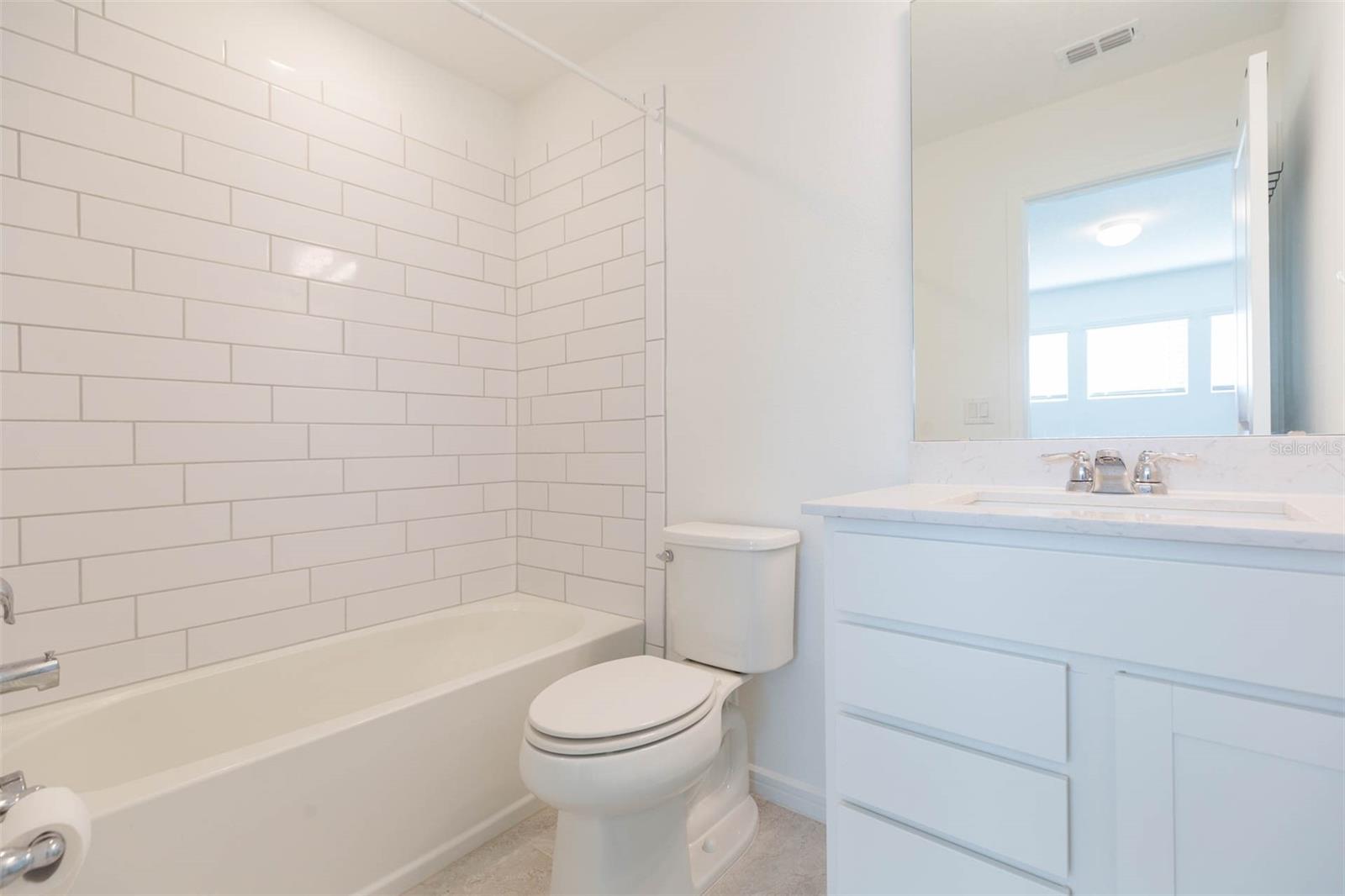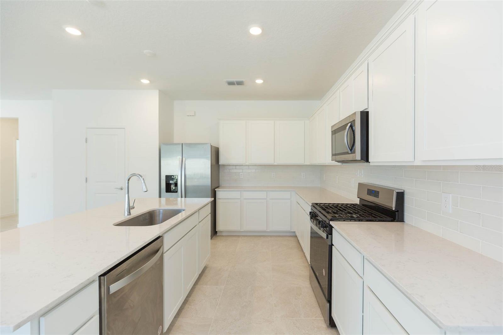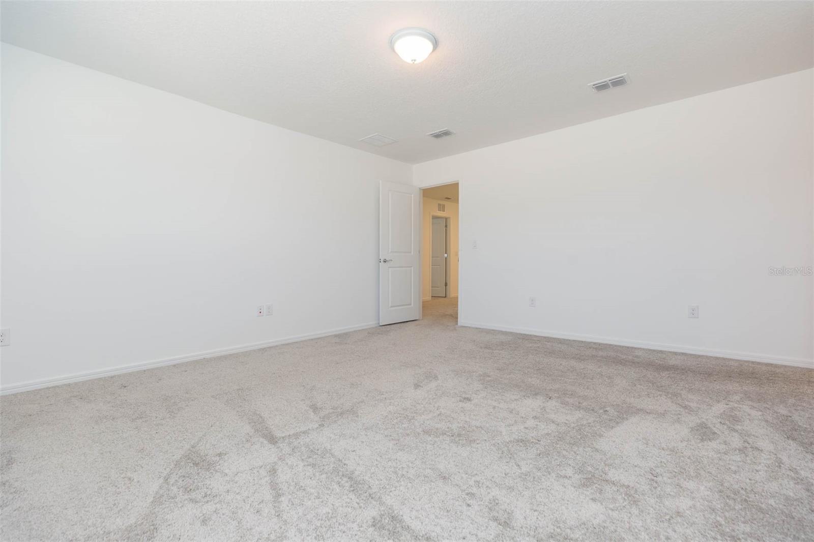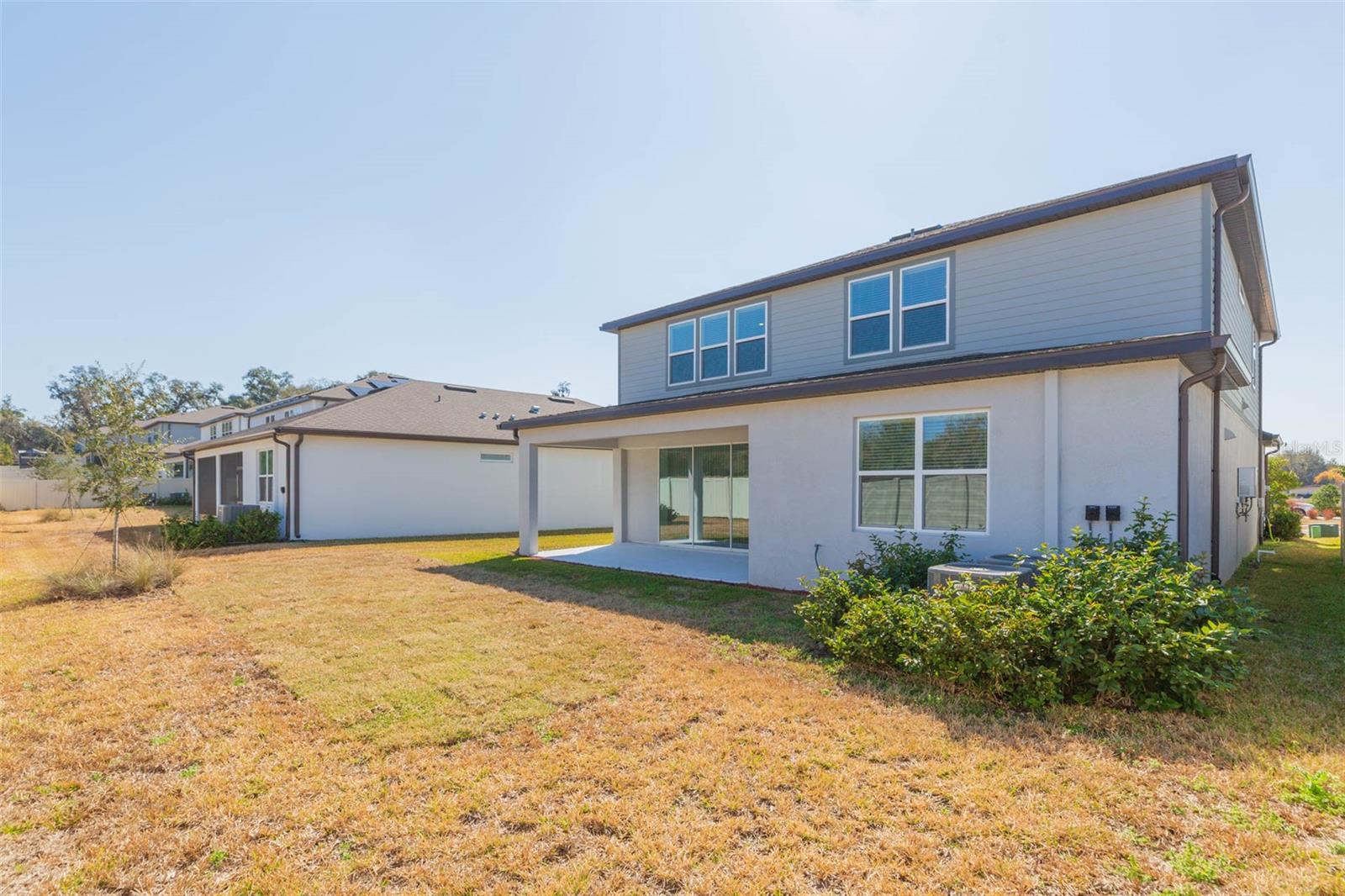 Welcome to Valri Forest, a boutique community built by Pulte Homes. This popular "Yellowstone" floor plan will exceed your expectations, boasting 5 bedrooms + office, 4.5 baths, a tandem 3-car garage, and NO rear neighbors, providing extra privacy. The split bedroom floorplan is ideal for multi-generational living or guests as there is a 1st-floor bedroom with an ensuite and walk-in closet. The double door entry to the office makes it the perfect place to work from home and the open layout between the kitchen, living room, and dining area is made for everyday living. The kitchen showcases quartz countertops with complementary 3"x11" tiled backsplash, large center island, walk-in pantry, and stainless steel appliances. From both the kitchen and living room, upgraded pocket sliding glass doors lead out onto the covered lanai. A conveniently located half bath completes the main level. Upstairs opens to an oversized bonus room which is a great flex space. The primary retreat has a large walk-in closet, separate linen closet and ensuite with dual vanity sinks and walk-in shower with built-in bench seating. Bedrooms 3 and 4 share a full bath while bedroom 5 has its own ensuite. All bathrooms throughout have matching cabinetry and quartz countertops for a clean and cohesive look. There is no lack of storage as 4 of the 5 bedrooms have walk-in closets, there is under-staircase storage space, and an additional 10’-6” x 18’-0” in the garage (if not using for extra parking). Upgrades include blinds throughout, epoxy garage flooring, LED downlights, upgraded door hardware, 21”x21” floor tile in the main living areas, baths, and laundry room, and stain-resistant carpet in the bedrooms/bonus room, and a Smart Home technology package with a video doorbell. Enjoy no CDD and low monthly HOA fees that include internet and cable!