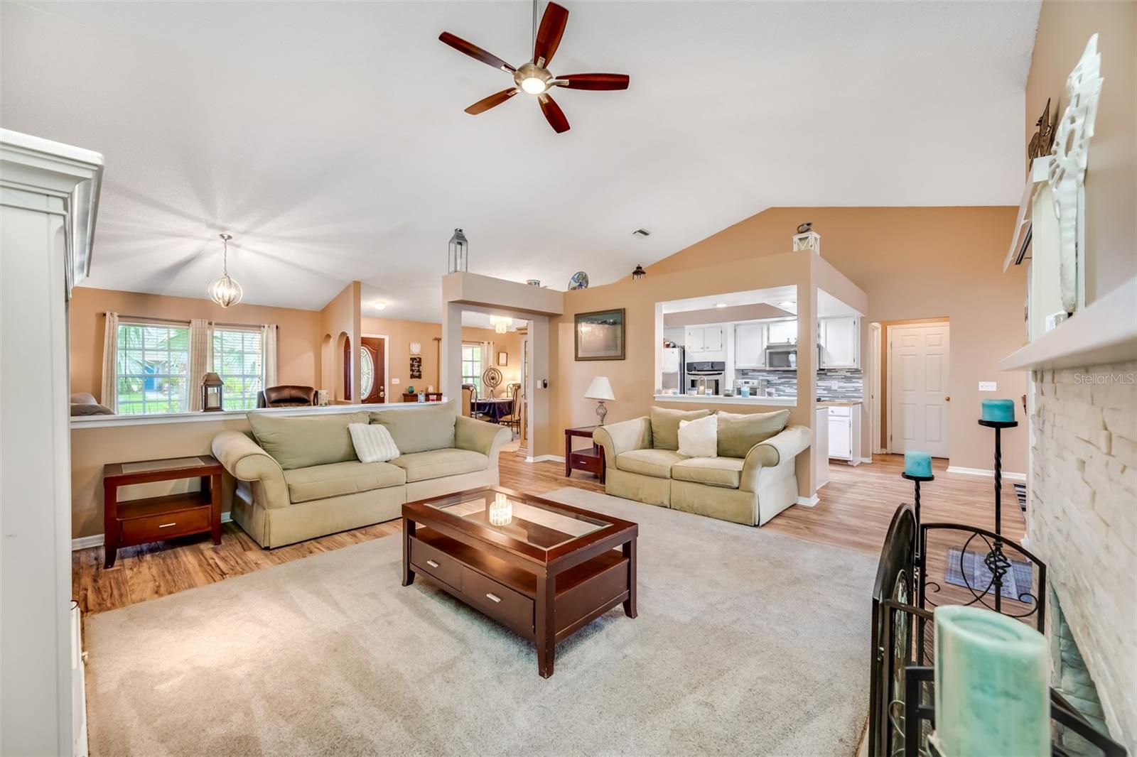 Welcome Home! This charming 4-bedroom, 2-bathroom home is nestled in the desirable Buckhorn golf community, offering convenience to dining, shopping, and major highways. Meticulously maintained, it boasts a welcoming atmosphere with great curb appeal. It features a covered front and back porch and of course a pool to cool down on a hot summer day. There is a wood burning fireplace to warm up in those cold Florida winters. The vaulted ceilings give this home an open and spacious feel. There is lots to love about this home. The dining room is attached to the updated kitchen with all new stainless-steel appliances and has plenty of room for everyone to enjoy. This home has a huge backyard for plenty of entertainment. There is a shed in the backyard for extra storage. In 2021 a new A/C was installed, and the pool was resurfaced. A new roof was added in 2022. This home is perfect for everyone and located near excellent schools. Whether you're drawn to the serene poolside atmosphere, the cozy indoor fireplace, or the spacious backyard, this home offers a blend of comfort and functionality in a prime location.